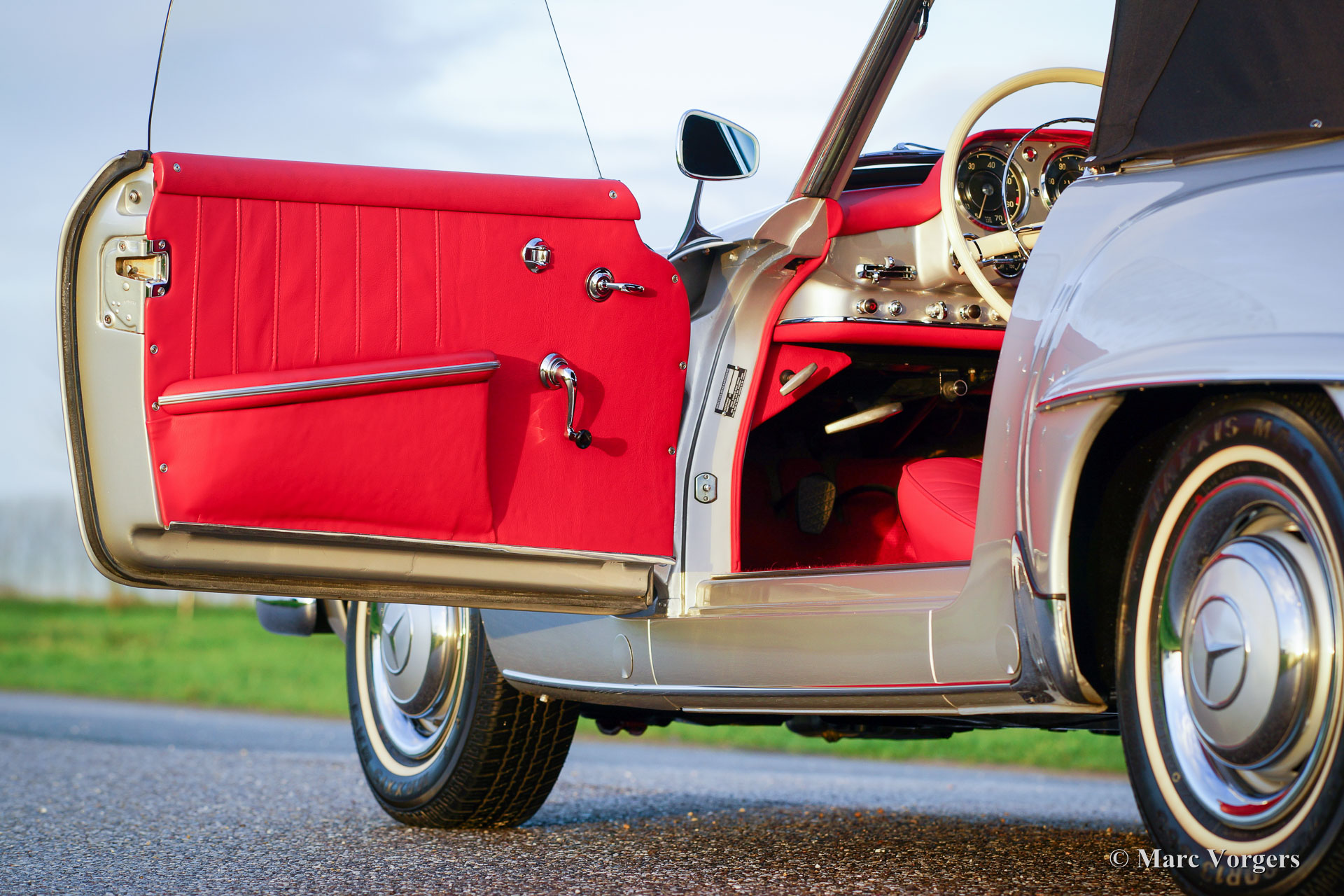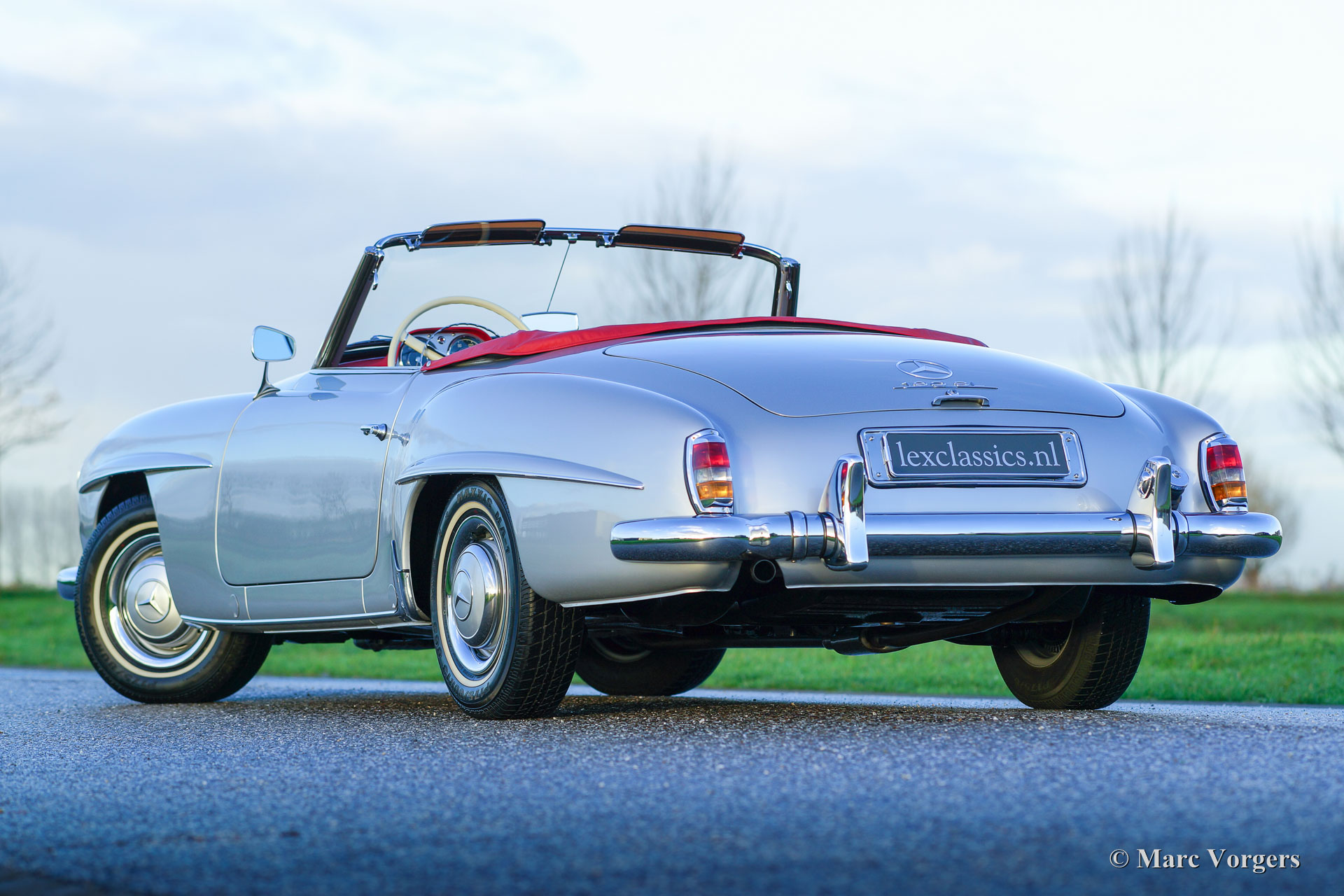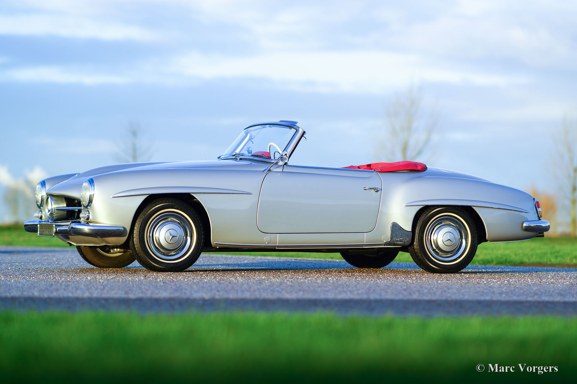 Mercedes-Benz 190 SL, year 1961. Colour silver metallic with a red leather interior. This beautiful Mercedes 190 SL was extensively and perfectly restored in the past. The bodywork shows-off a crisp panel fit and all original details are present. This 190 SL is in superb top condition! A photo reportage of the restoration is present. A Mercedes-Benz ‘heritage document’ is present confirming that this car has ‘matching numbers’. A top specimen!