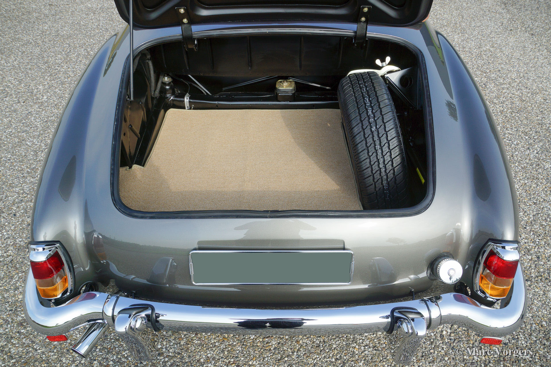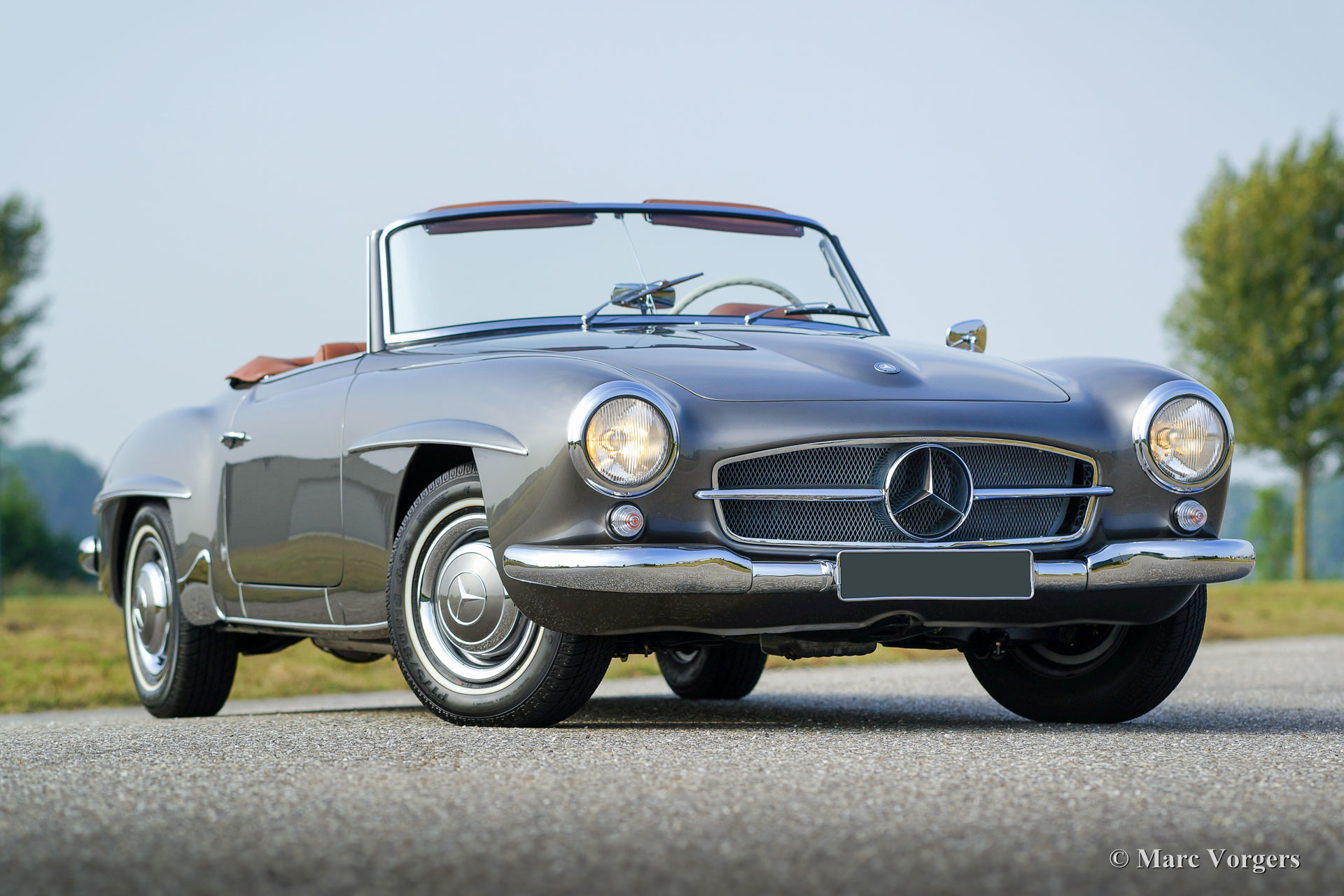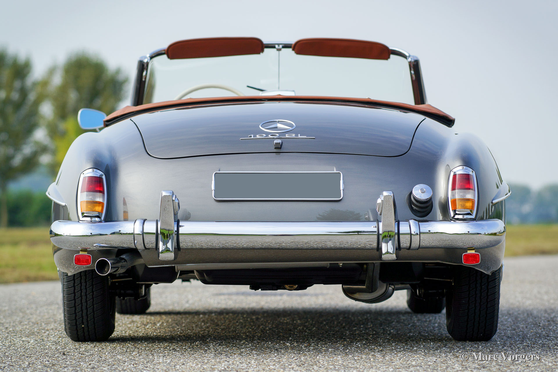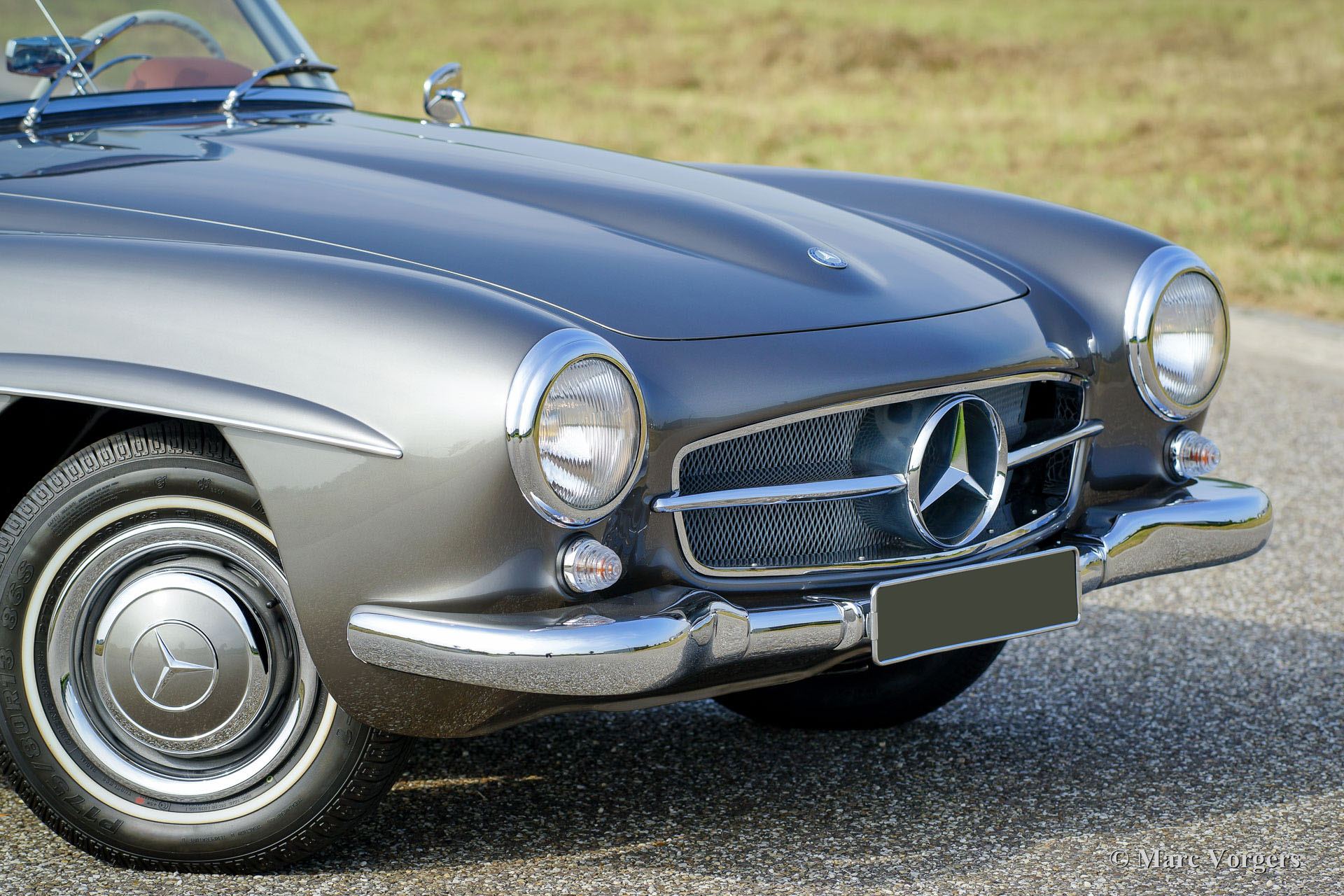 Mercedes-Benz 190 SL (W121), year 1962. Colour dark grey metallic with a cognac-brown leather interior and beige carpet. Dark brown mohair hood and a cognac-brown hood-cover. This gorgeous Mercedes 190 SL was extensively and superbly restored in the years 2015 – 2017! During this top-class restoration, many new original Mercedes parts were used. Everything was restored and overhauled; the engine, gearbox, carburettors, even all the dashboard gauges. The windscreen and side windows were renewed and a new wiring loom was installed. All the bright work was rechromed perfectly. This is a TOP specimen in concourse condition! The car has matching numbers, a Mercedes-Benz ‘Datenkarte’ is present to confirm this.