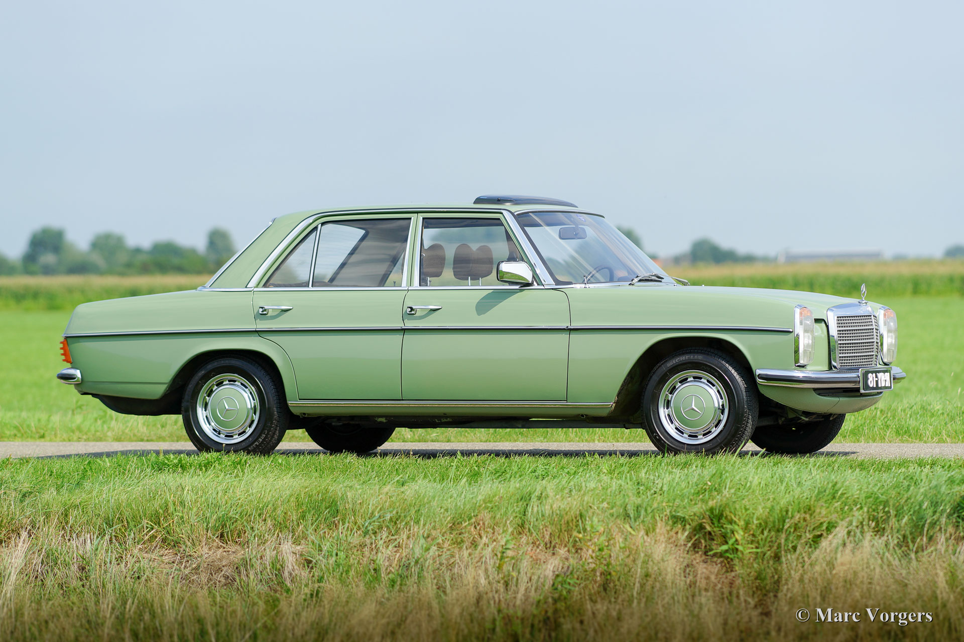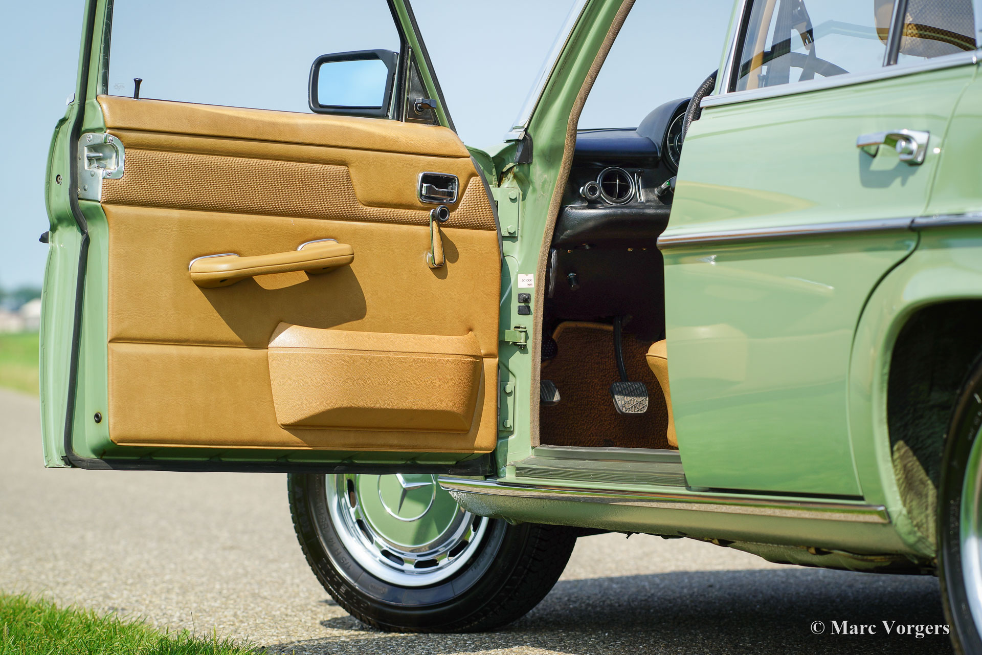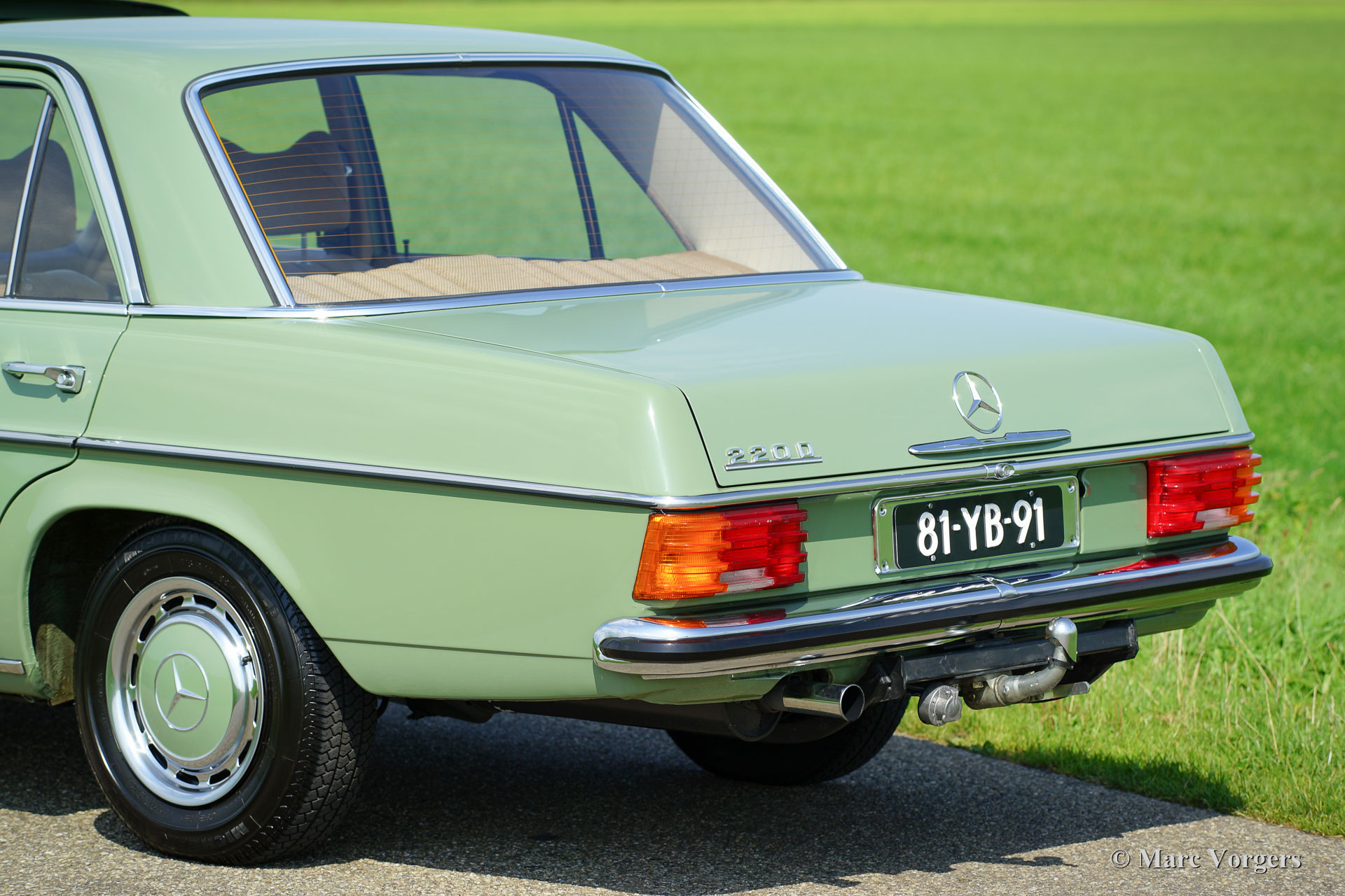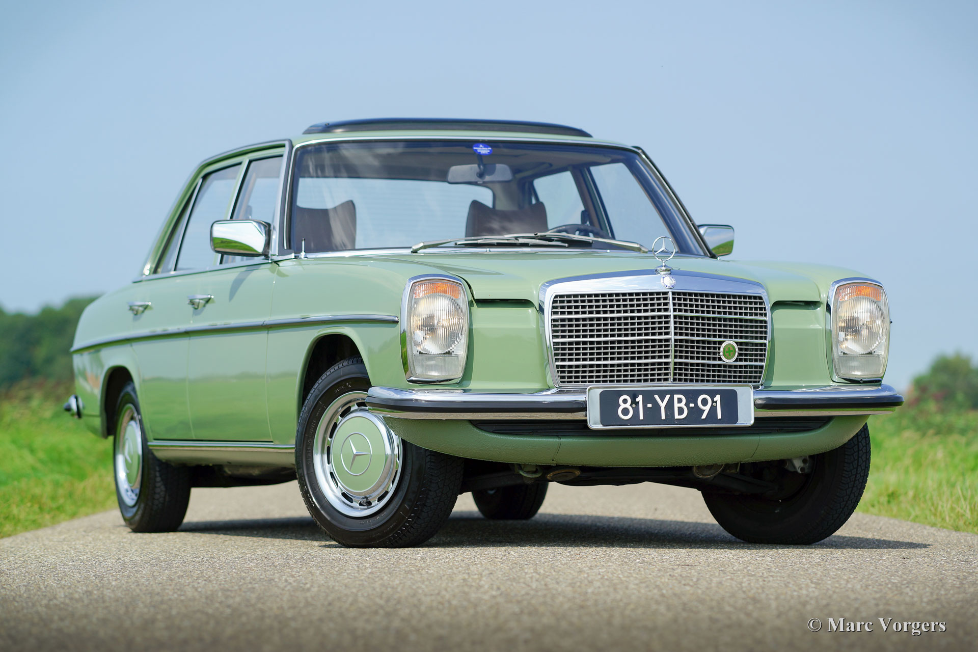 Mercedes-Benz 220 D (type W115), year 1974. Colour light green with a beige half leather interior. This wonderful Mercedes 220 Diesel is in a remarkable original top-condition; concours! From new the car knew two owners who drove only 57.364 kilometres with the car! This is unique for a W115 Diesel because most of them have hundred thousands of miles on the odometer! This very well preserved automobile features an original sliding roof, heated rear window, central arm-rest, right side rear view mirror, original tow bar and a beautiful Becker radio. The original tool set is present as are all the original booklets! This is a unique and super original Mercedes-Benz 220 Diesel with a very low mileage. A second specimen in this condition can probably only be found in the Mercedes-Benz museum collection.