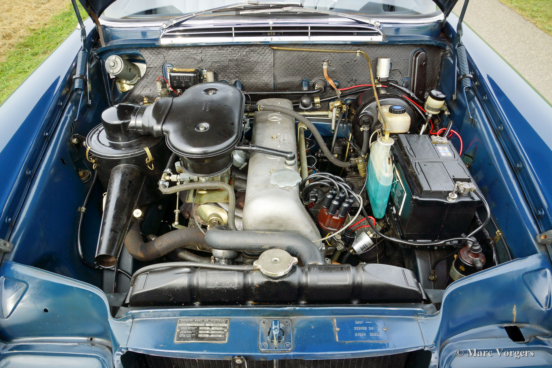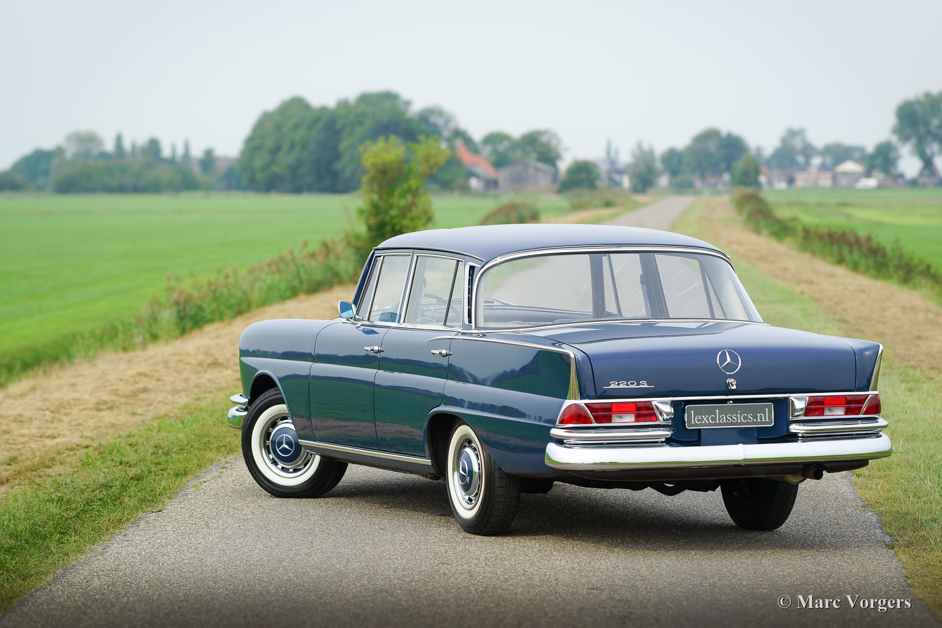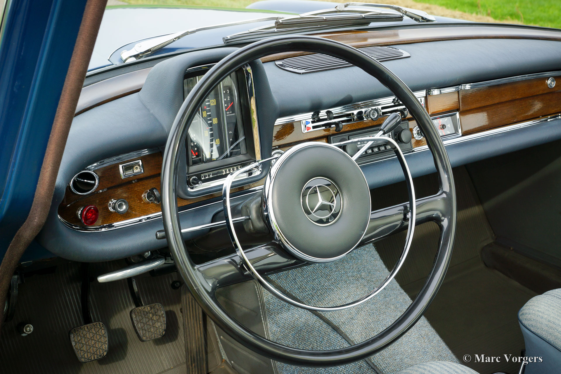 Mercedes-Benz 220 S (W111), year 1964. Colour blue with a grey cloth interior. This magnificent Mercedes-Benz 220 S is in unique original concourse condition! The 220 S was sold new in Germany, in the year 1998 the car was added to a classic car collection in the Netherlands. From new the car has driven only 34.490 kilometres and the car has known only two owners! (Odometer km reading in 1965: 15.152 km, in 1967: 21.513 km, in 1970: 29.198 km, in 1979: 31.894 km). This Mercedes 220 S is a true time-machine; everything is original and in pristine condition! Even the paint is perfect and original! After a long period of inactivity, the second owner had the engine overhauled in the year 2013. An invoice with description of this engine rebuild is present. Very special I sthat all the original booklets are still with the car, and neatly presented in the original plastic Mercedes-Benz file-folder. This tremendous Mercedes 220 S shows all the original details, is powered by the delightful in-line six-cylinder engine, and it sports a factory original sliding roof! The second owner had electric power steering fitted to improve the driving experience even further. This is a museum quality TOP specimen!