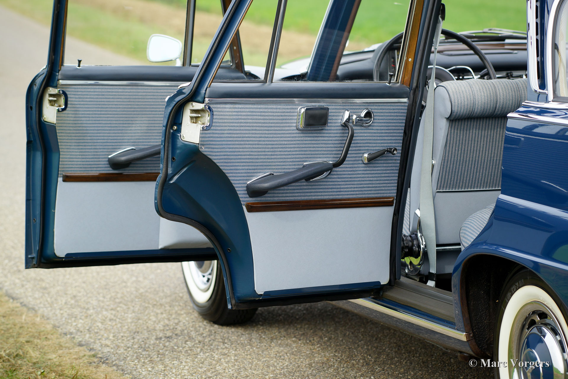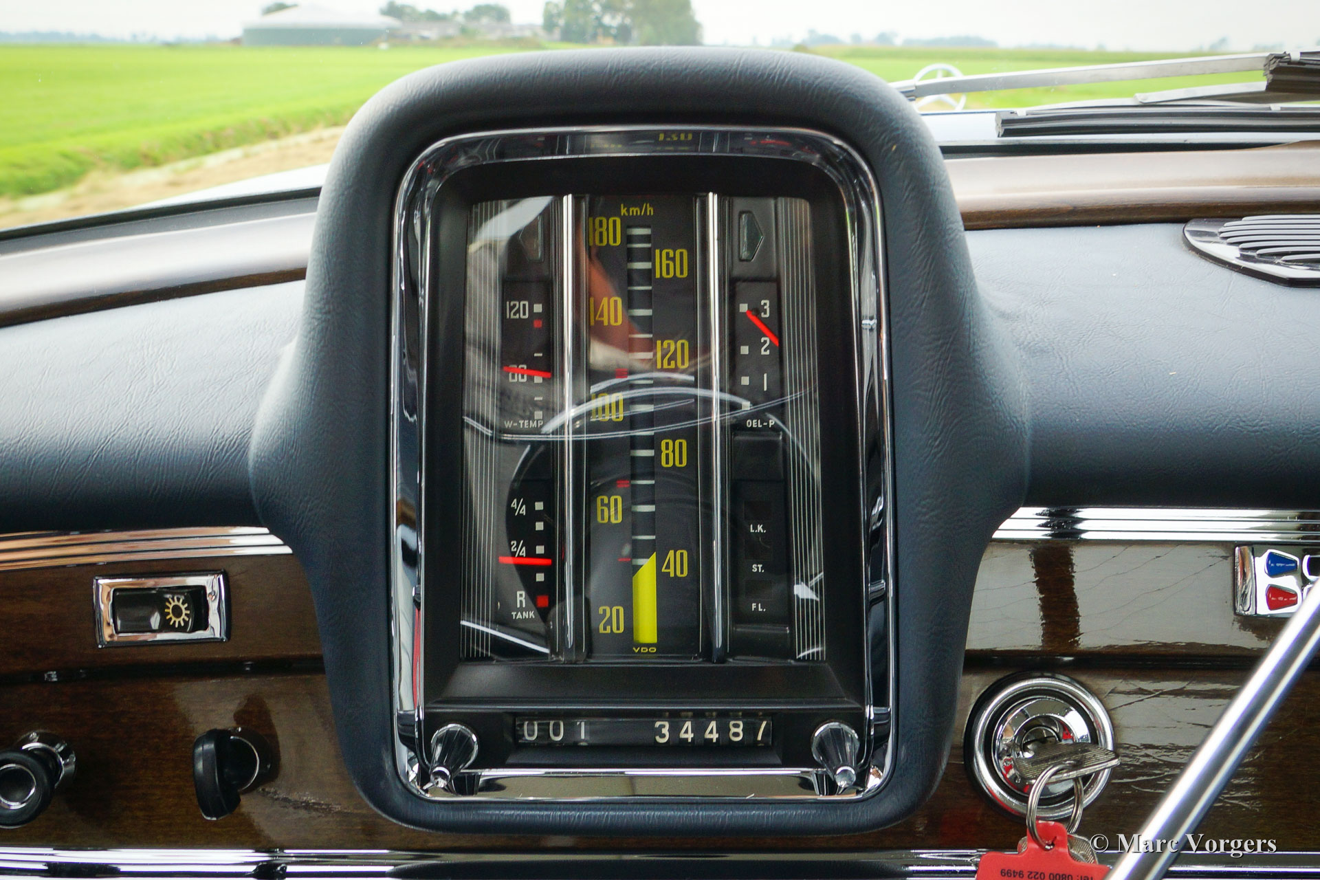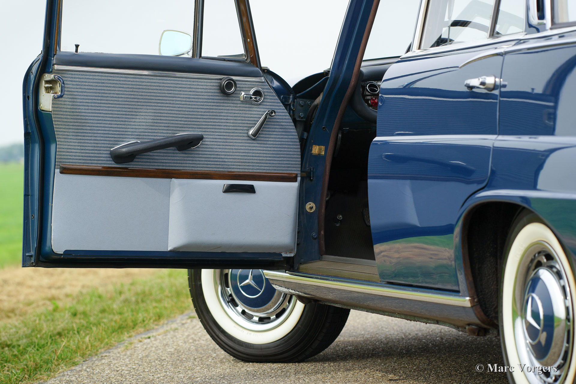 Mercedes-Benz 220 S (W111), year 1964. Colour blue with a grey cloth interior. This magnificent Mercedes-Benz 220 S is in unique original concourse condition! The 220 S was sold new in Germany, in the year 1998 the car was added to a classic car collection in the Netherlands. From new the car has driven only 34.490 kilometres and the car has known only two owners! (Odometer km reading in 1965: 15.152 km, in 1967: 21.513 km, in 1970: 29.198 km, in 1979: 31.894 km). This Mercedes 220 S is a true time-machine; everything is original and in pristine condition! Even the paint is perfect and original! After a long period of inactivity, the second owner had the engine overhauled in the year 2013. An invoice with description of this engine rebuild is present. Very special I sthat all the original booklets are still with the car, and neatly presented in the original plastic Mercedes-Benz file-folder. This tremendous Mercedes 220 S shows all the original details, is powered by the delightful in-line six-cylinder engine, and it sports a factory original sliding roof! The second owner had electric power steering fitted to improve the driving experience even further. This is a museum quality TOP specimen!