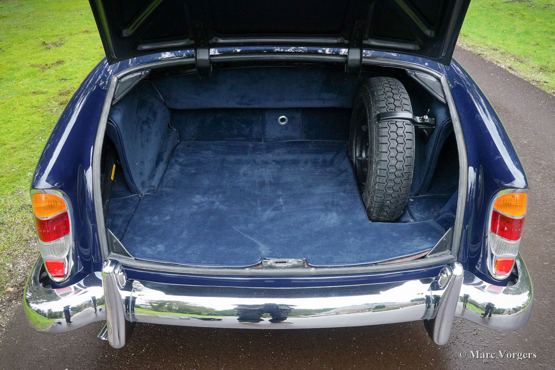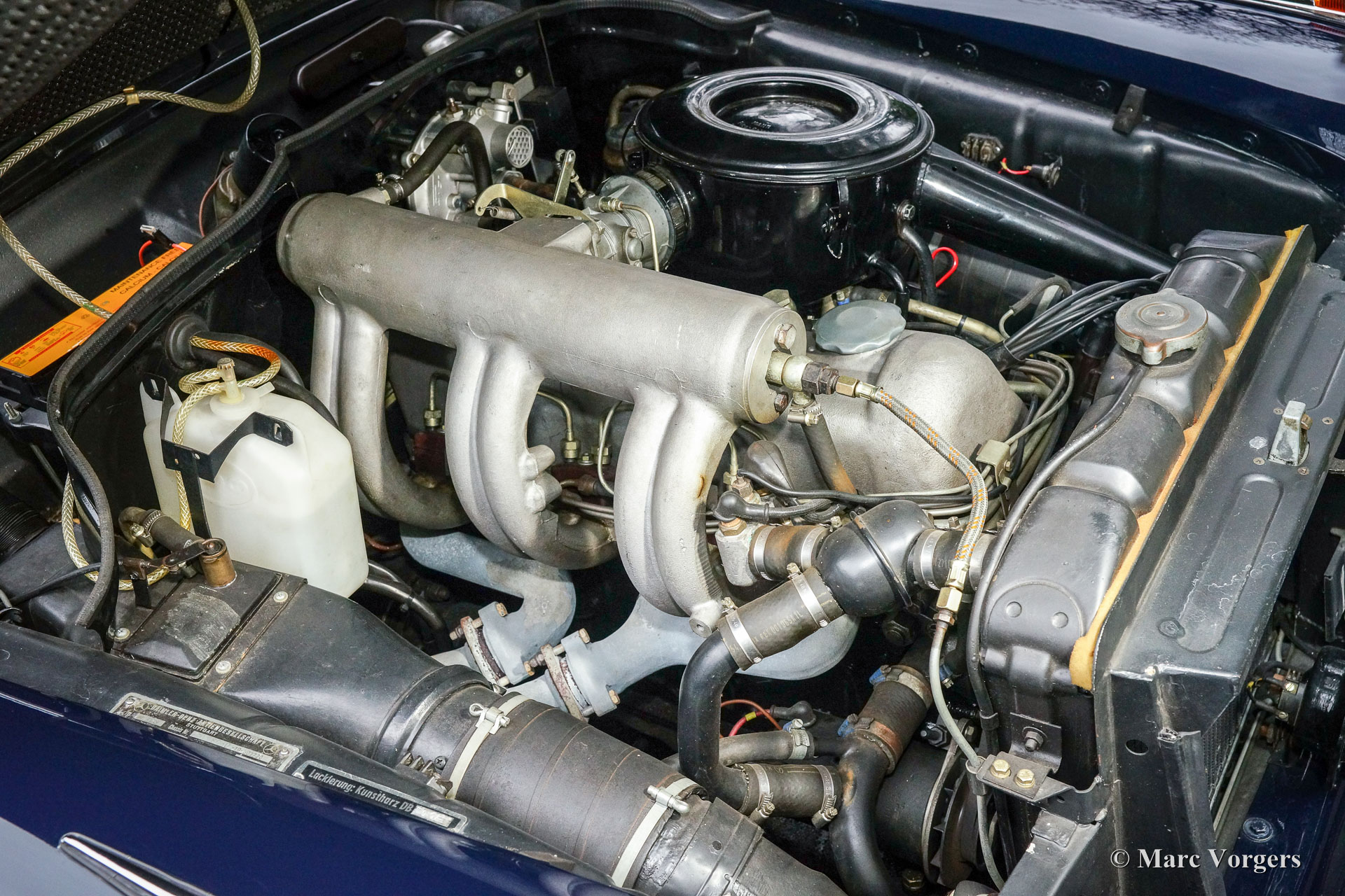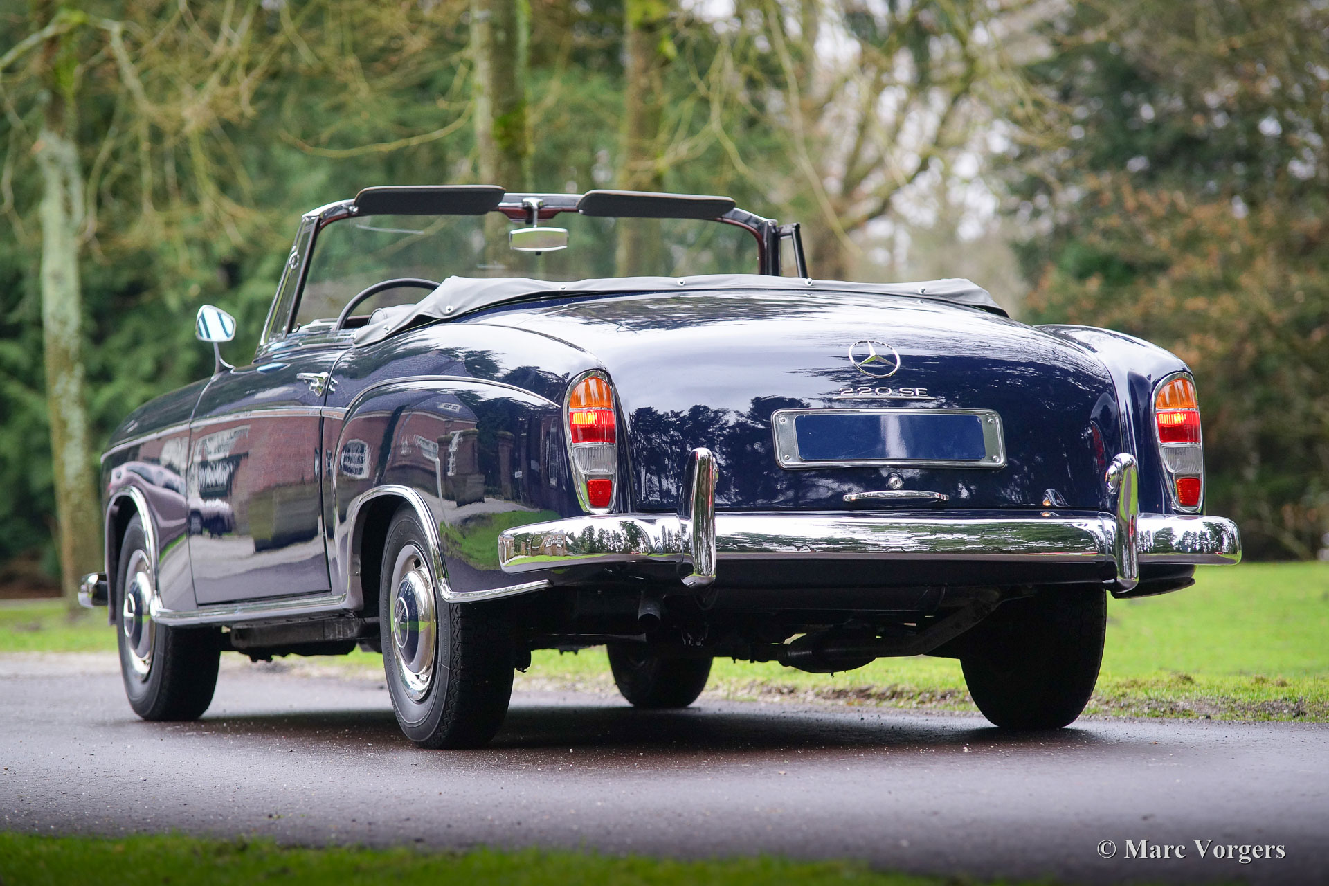 Mercedes-Benz 220 SE cabriolet (W128), year 1961. Colour dark blue with a grey leather interior. Blue carpet and matching trim in the boot. Blue mohair hood and grey leather hood cover. This beautiful Mercedes-Benz was sold new in the Netherlands. In recent years the car has been restored to a very high level of perfection by a German Mercedes-Benz specialist. The automobile is in superb top condition! This is one of the last W128 cabriolet models and factory fitted with fuel injection. This is a top specimen and a solid investment.