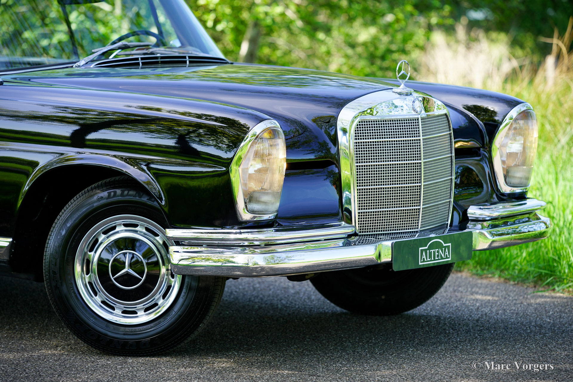The Mercedes-Benz W111 series was introduced to the market in the year 1959. At first the four-door saloon models 220 and 220 S were presented, this saloon model is also known under the German nickname "Heckflossen modell". In the year 1961 the coupe and convertible models saw the light of day. These very beautiful models were technically identical to the saloon model. The bodywork was entirely different except for the design of the front side. The 220 SE was succeeded, in the year 1965, by the 250 SE which was equipped with a new engine. The new six cylinder engine engine had seven main bearings and a larger cylinder capacity. In the year 1968 the engine became a larger cylinder capacity resulting in the introduction of the 280 SE. These W111 series coupe and convertible models were produced in the same time period as the 250 SL and 280 SL "Pagoda" and shared the same engine. The 220 SE/ 250 SE and 280 SE coupe and convertible models were quite pricey those days but very popular amongst the happy few who could afford them. The cars were, and are, beautiful to look at and to cruise with and were very well built to high quality standards.