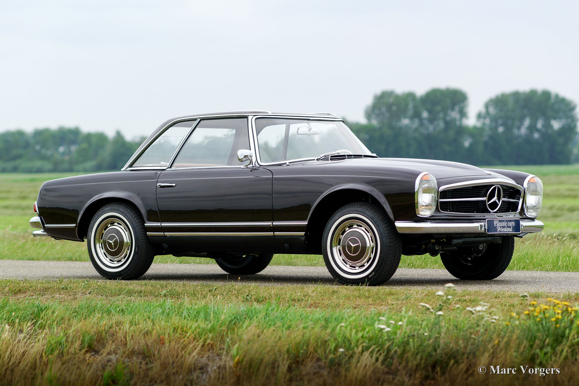 Mercedes-Benz 250 SL ‘Pagode’, year 1969. Colour Dark Maroon (MB colour-code 460) with a cognac leather interior and beige carpet. Original hard-top in Mocca colour. This magnificent and rare Mercedes-Benz 250 SL features a manually operated gearbox and the automobile is in perfect concourse condition! This fine SL was fully restored in the years 2015 – 2017 and about 2000 hours of work were needed to achieve perfection. A complete photo reportage of the restoration is present. Where ever you look you will only see perfection. All the original spot-welds are present, the bodywork shows perfect panel-fit, the paint is glass like and the newly chromed bright-work is stunning. Everything on this 250 SL has been restored, overhauled and/ or renewed; from the suspension, drive-train up to the last gauge in the interior! The automobile features power-steering, Bilstein shock dampers, Michelin tyres, the fully restored original hard-top and a beautiful period Becker radio! This is a TOP specimen in concourse condition!