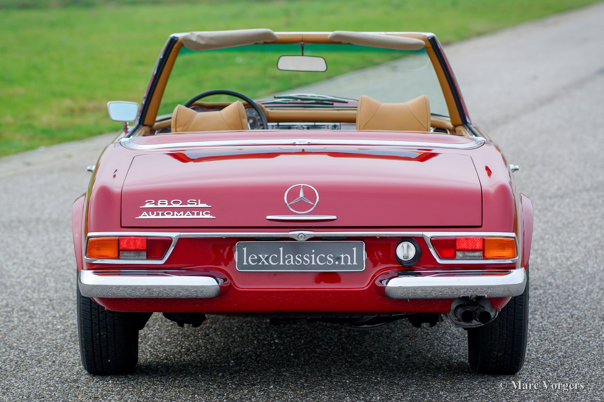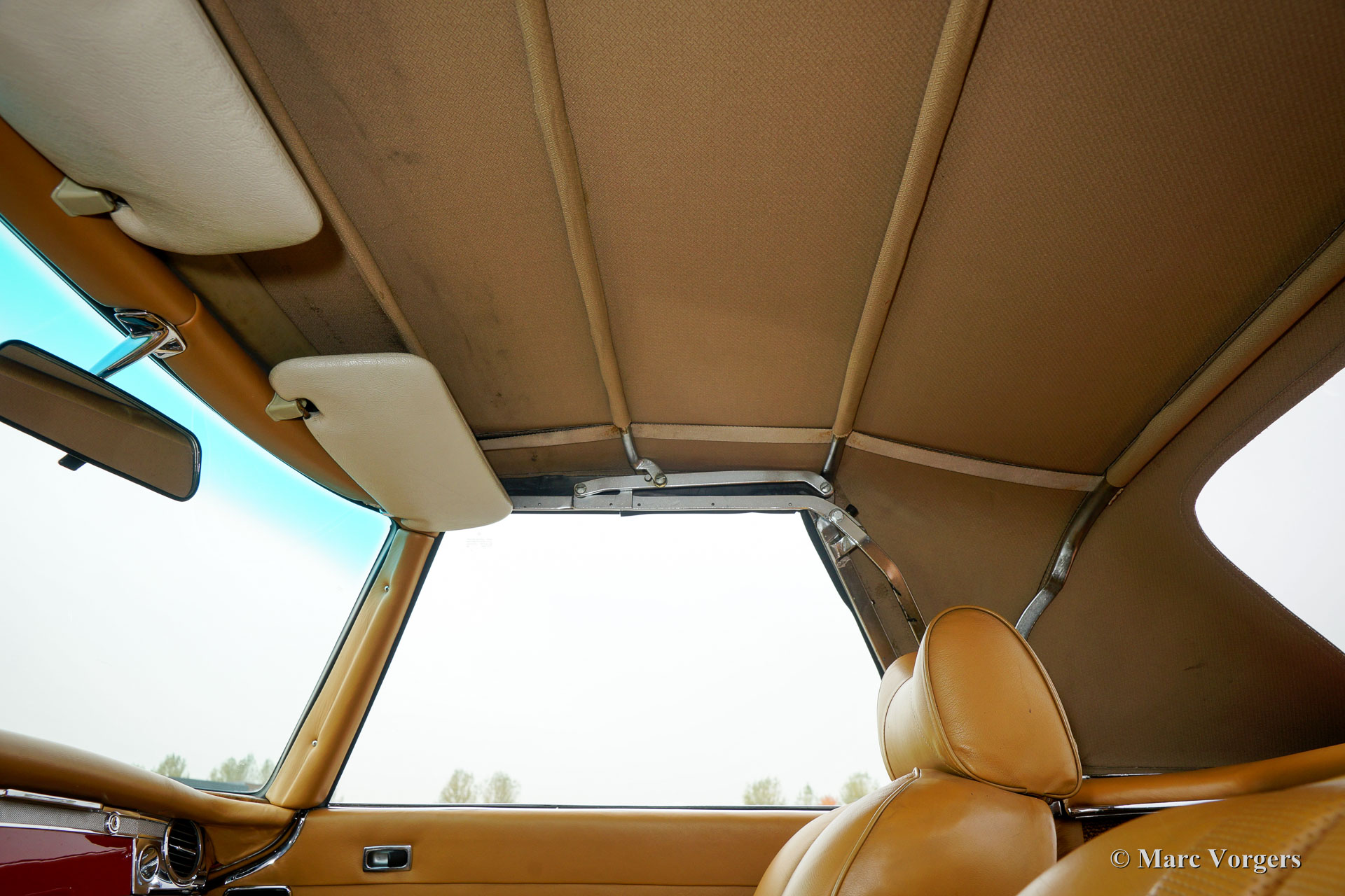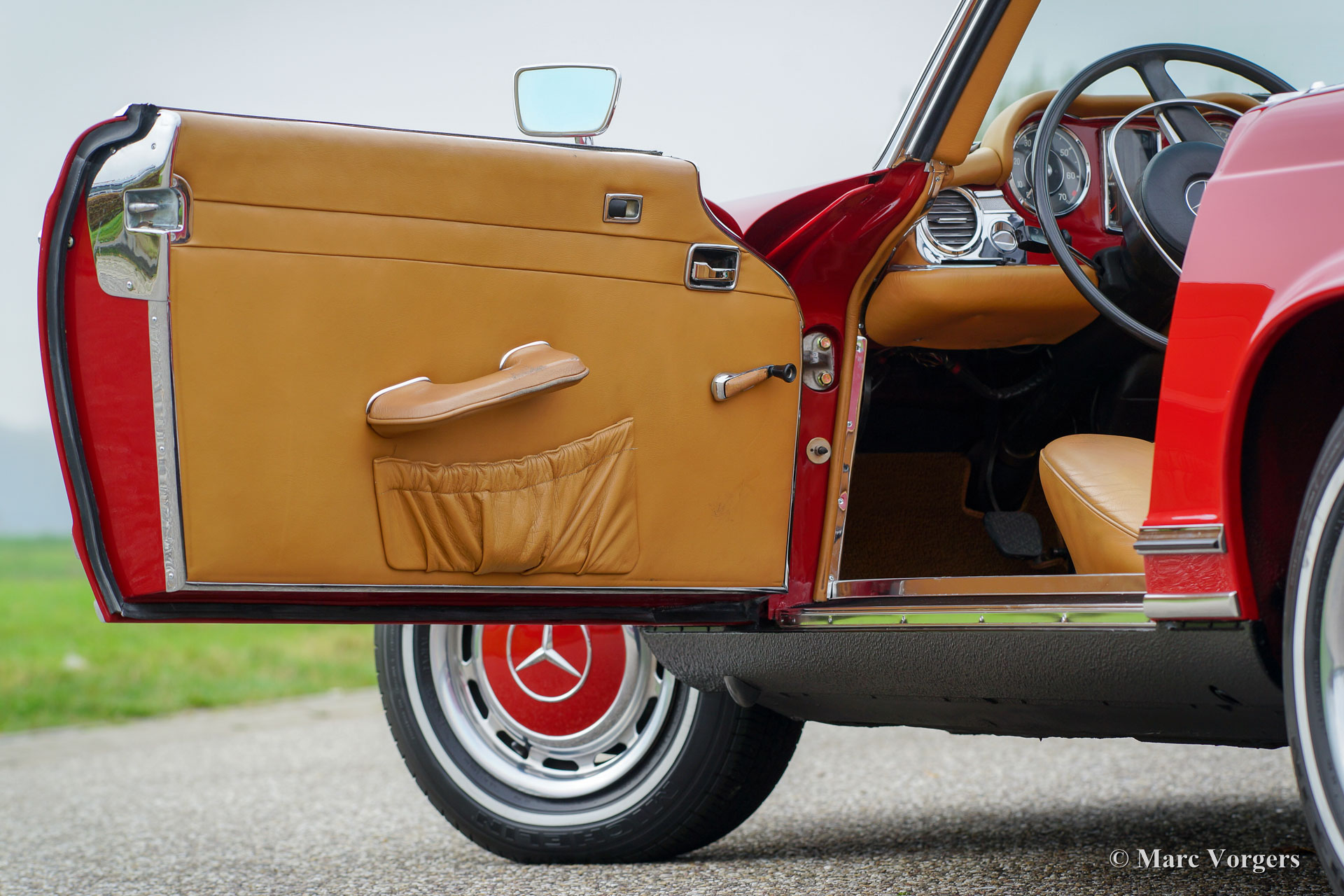 Mercedes-Benz 280 SL ‘Pagoda’, year 1968. Colour red with a beige leather interior and carpet to match. Brown mohair soft-top. This beautiful Mercedes 280 SL was restored in the past; the automobile is in very good condition and the car drives perfectly! You will only find some traces of use in the interior. The car sports a perfectly shifting automatic four-speed gearbox which beautifully handles the 170 bhp generated by the smooth six-cylinder in-line engine. The car is fitted with a beautiful Becker Mexico radio.