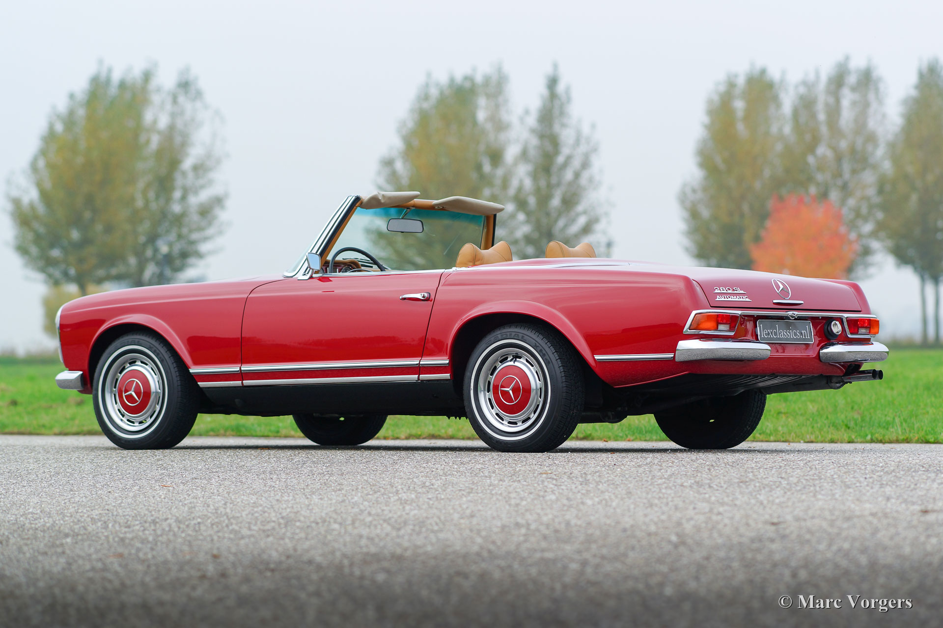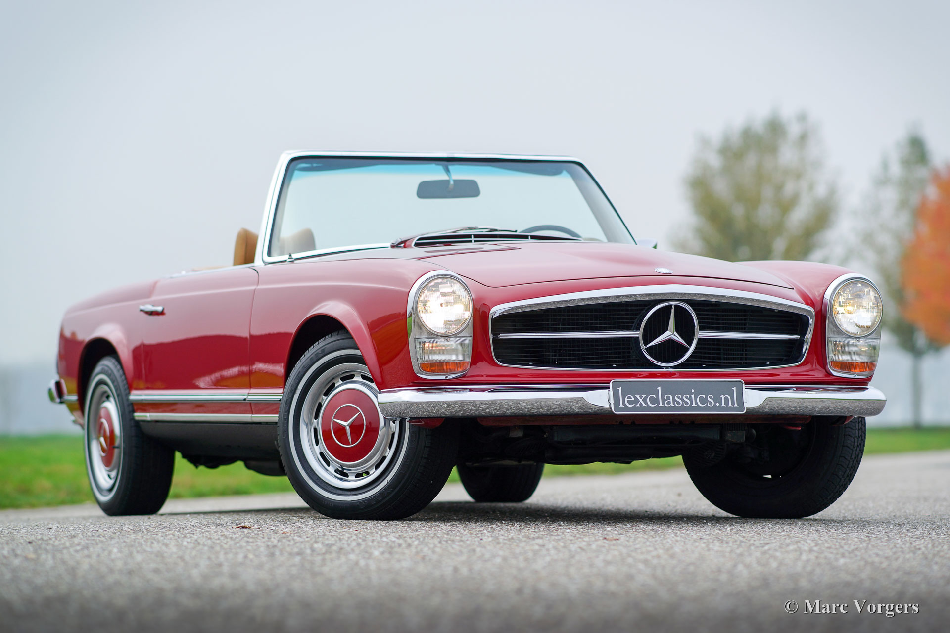 The Mercedes 250 SL was produced alongside the 230 SL from 1966 until 1968. The timeless, austere design that was first seen in the Mercedes 300 SE sedan in 1961, was continued in the 230 SL, the 250 SL and thereafter the 280 SL: many see these versions as the most beautiful Mercedes-Benz creations since the 1960s. The 250 SL is characterized by its refined, lively handling and by its very high constructive and technical quality. The car also offers much space, many comforts and practical conveniences. The open two-person roadster is also available with a hardtop, which changes the car into a closed coupe. The Mercedes-Benz 230 SL/250 SL/280 SL carried the nickname of 'Pagoda' because of the design of the hardtop.