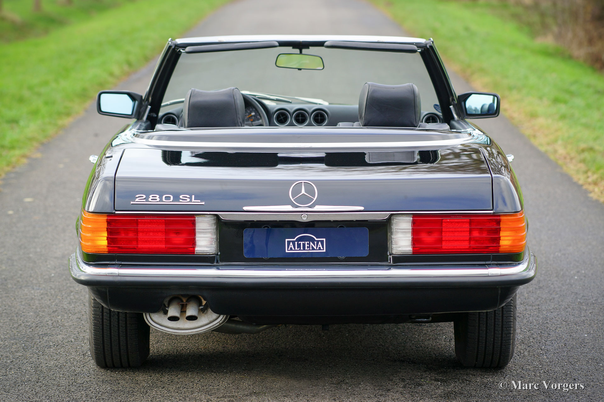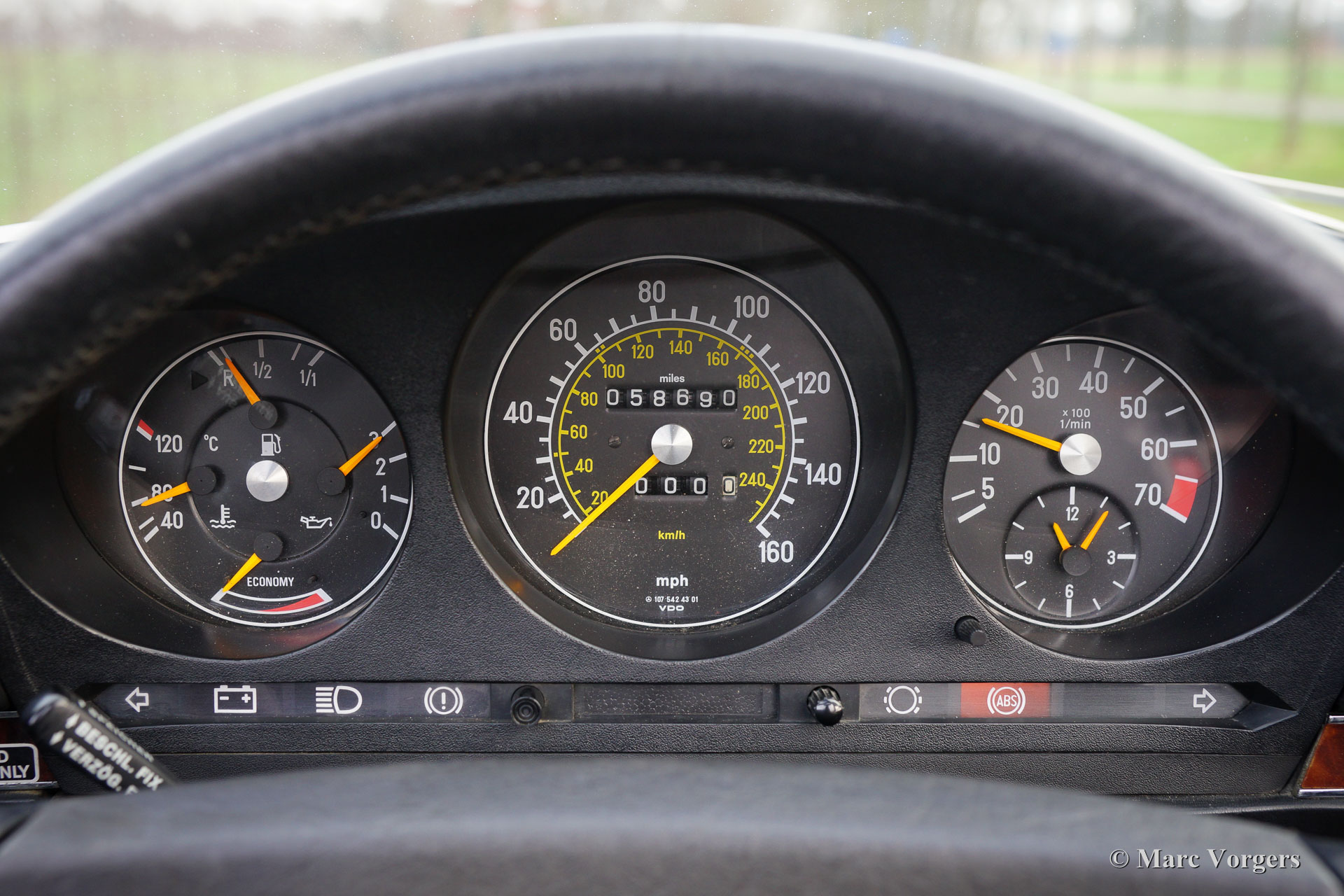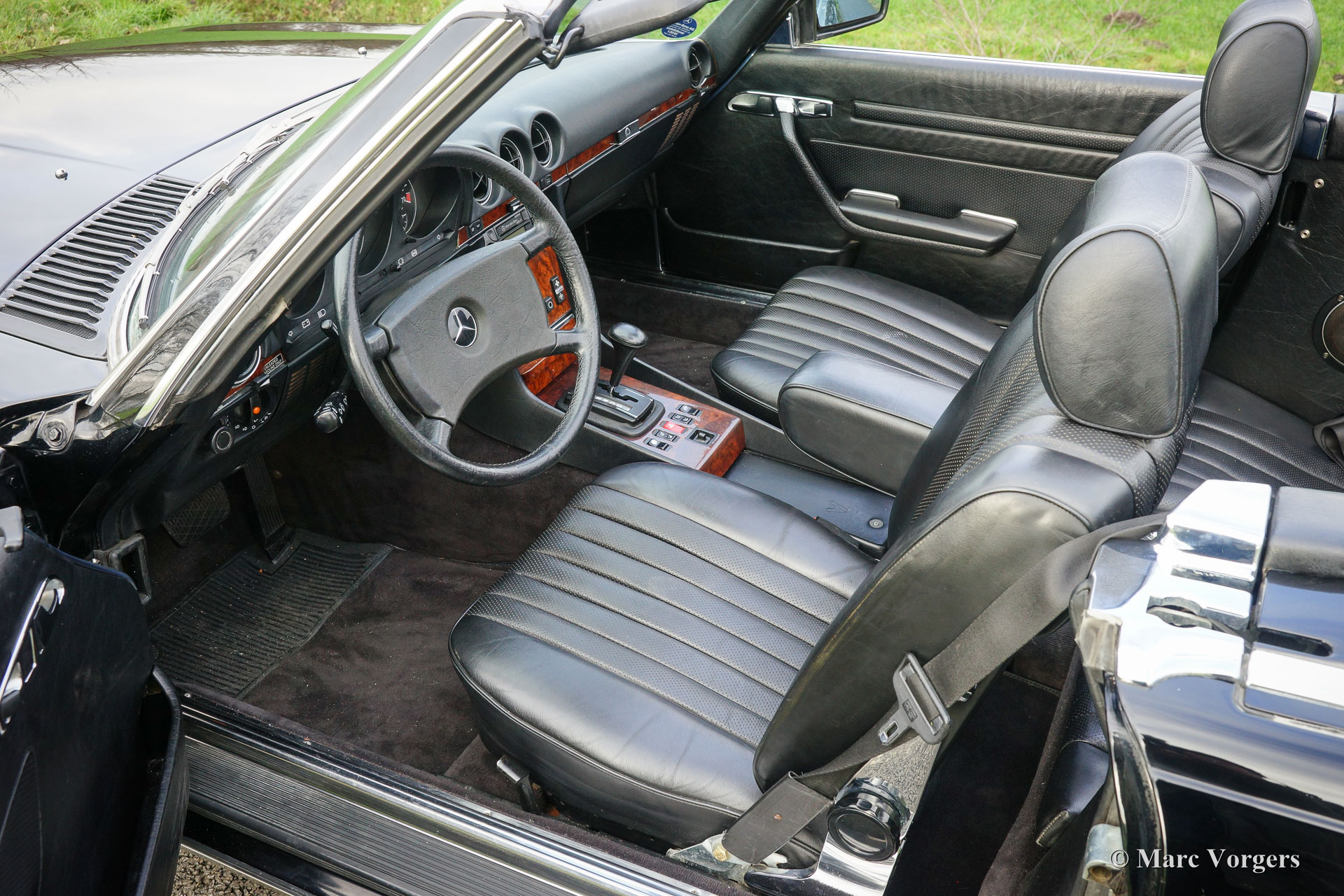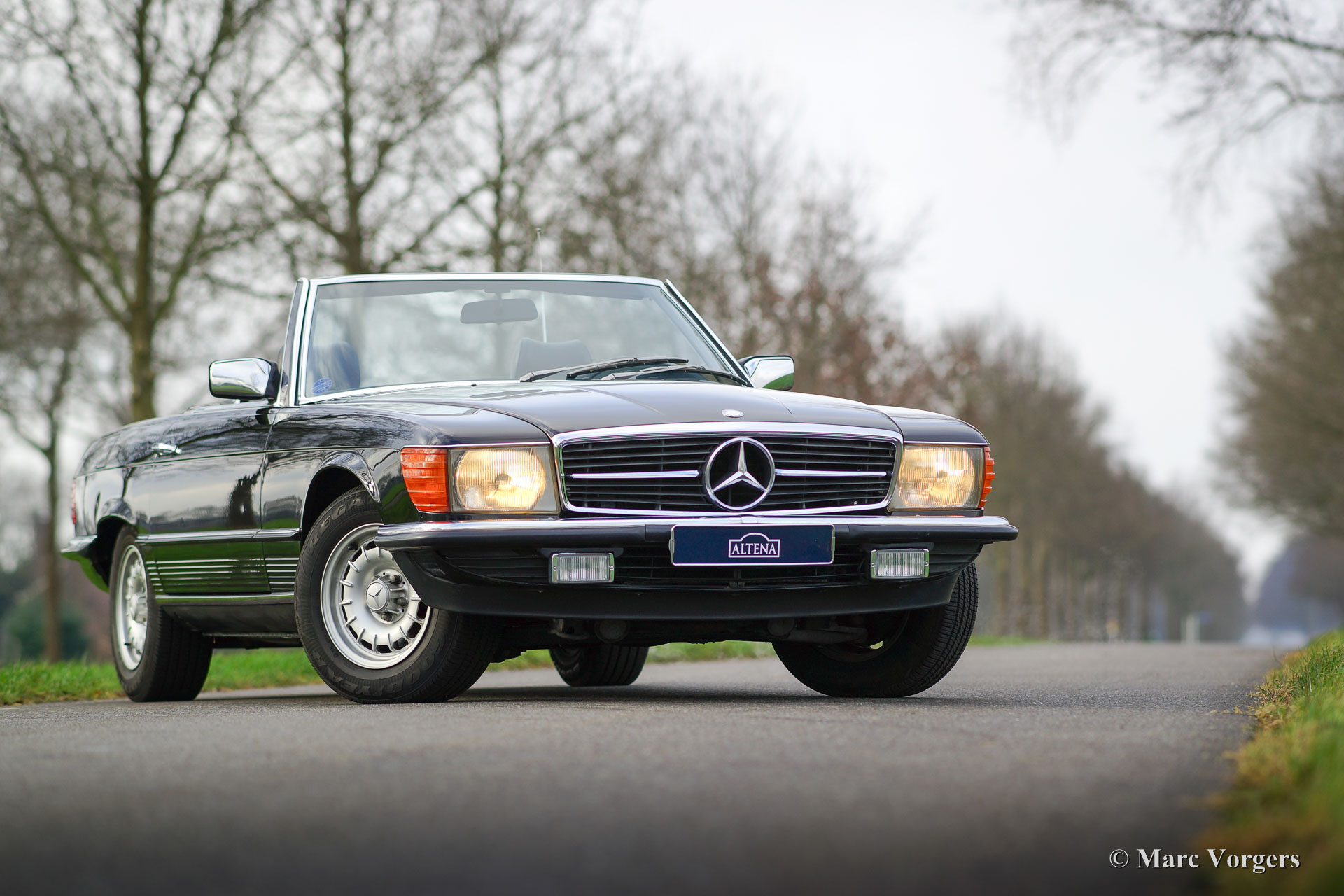 Mercedes-Benz 280 SL (type R107), year 1985. Colour black with a black leather interior. Black soft-top. Chassis number WDB1070421A02837128XXX. This gorgeous Mercedes 280 SL is in superb original condition! From new the car has driven 58.688 miles. In 1985 the car was purchased from the factory in Stuttgart. From there the car was driven, with a day-registration plate which is still present, to the harbour of Bremen to be shipped to the USA. To be approved for road use in the USA the KM odometer was replaced by one reading in miles. The original instrument read 1020 KM at that moment. The approval was carried out by Elite Auto conversions. From the year 1992 the car has been cherished in a car collection in Minnesota. The car has known two owners from new and is now available for sale in our showroom. A perfectly original example!