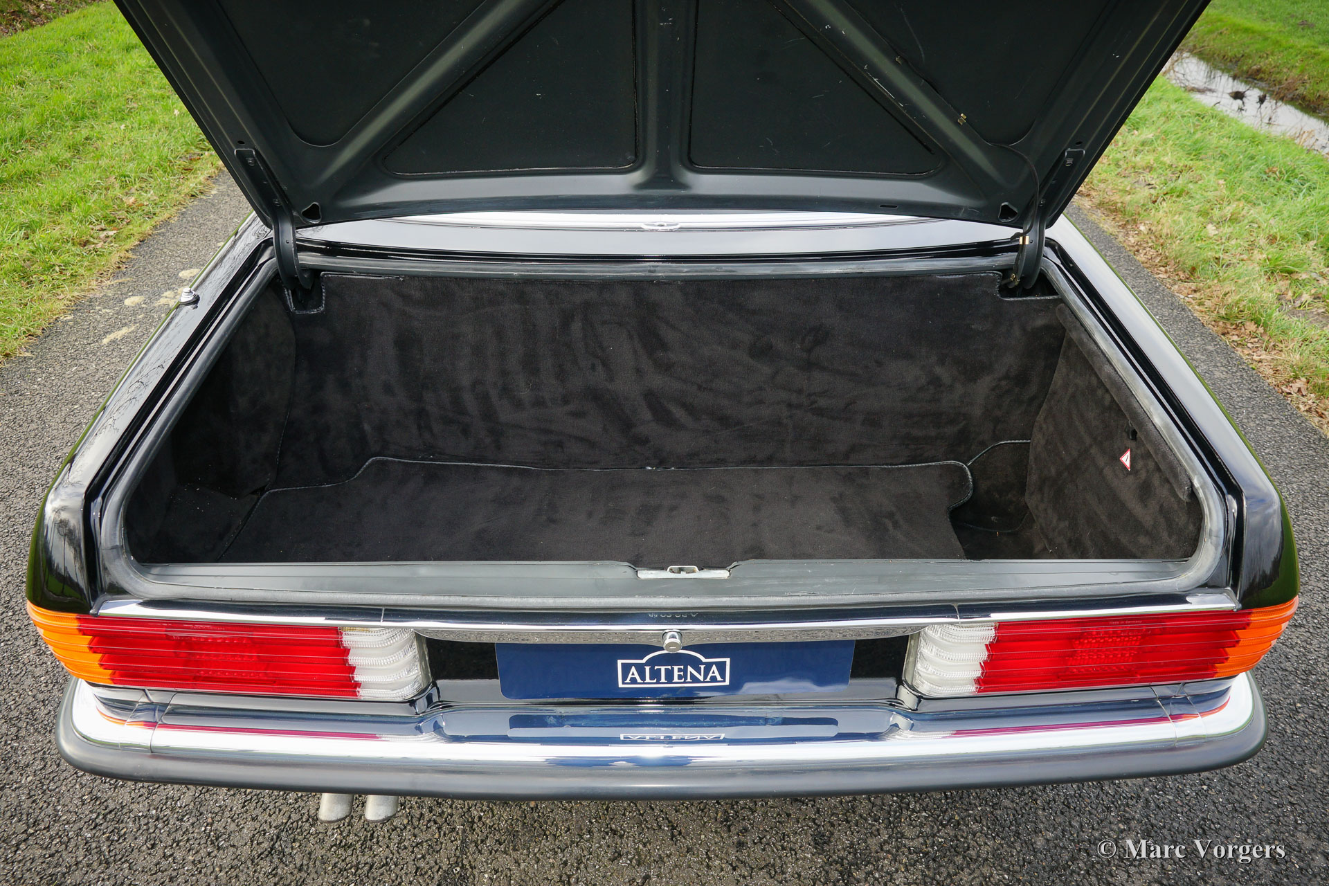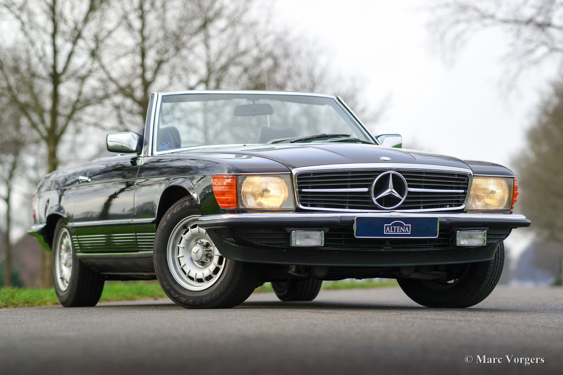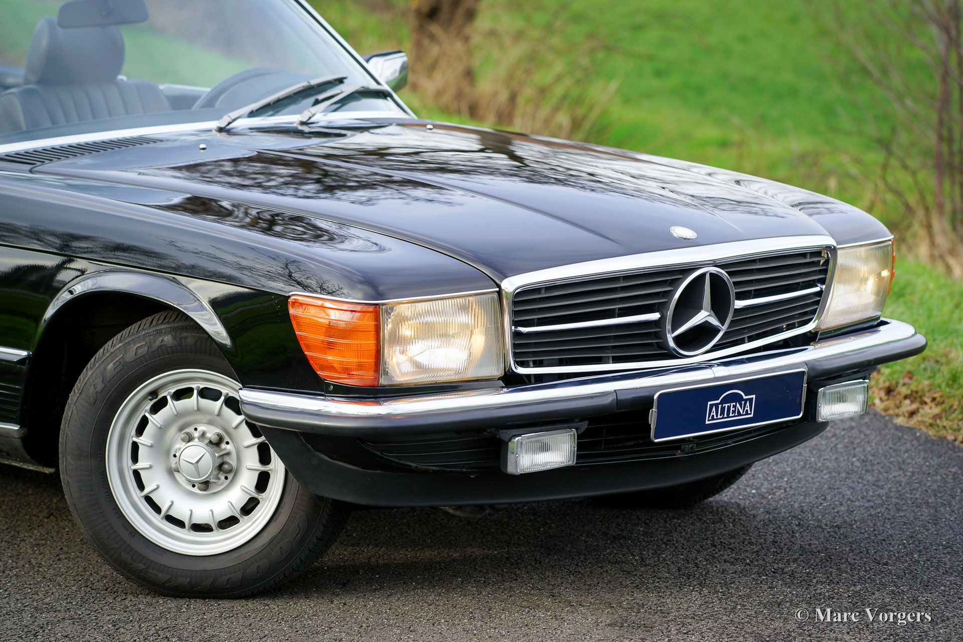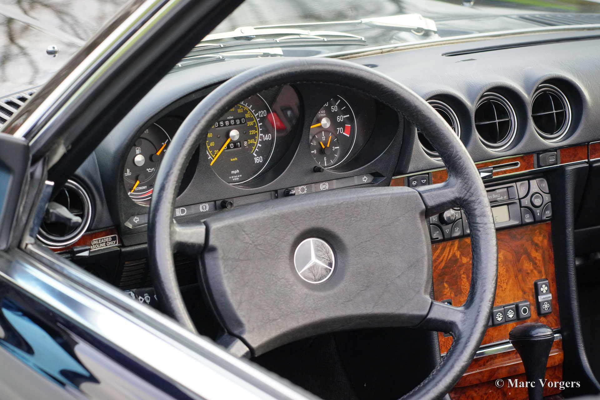 The Mercedes 280 SL, 350 SL and 450 SL are the successors of the 230 SL, 250 SL and 280 SL as we know under the nickname "Pagoda". The "Pagoda was built from the year 1963 until the year 1971, the year the new SL generation was presented to the market.  Again Mercedes-Benz achieved to create a timeless design with slick, proper lines. In this shape the SL was sold for over twenty years. The "new" generation Mercedes SL is bigger, wider and heavier than its predecessor but again it was a perfect car considering construction, road holding and driving-comfort. The Mercedes-Benz SL was built with several engines. the buyer had to choose between a V8 with 3.5 or 4.5 liter cylinder capacity or a six cylinder engine with a cylinder capacity of 2.8 liter. The SL was standard equipped with a soft-top which could neatly be stowed away under a lid fully integrated in the car. Optionally the SL could be fitted with a hard-top. The hardtop can easily be fitted to the car, in a couple of minutes, with the soft-top down in place.