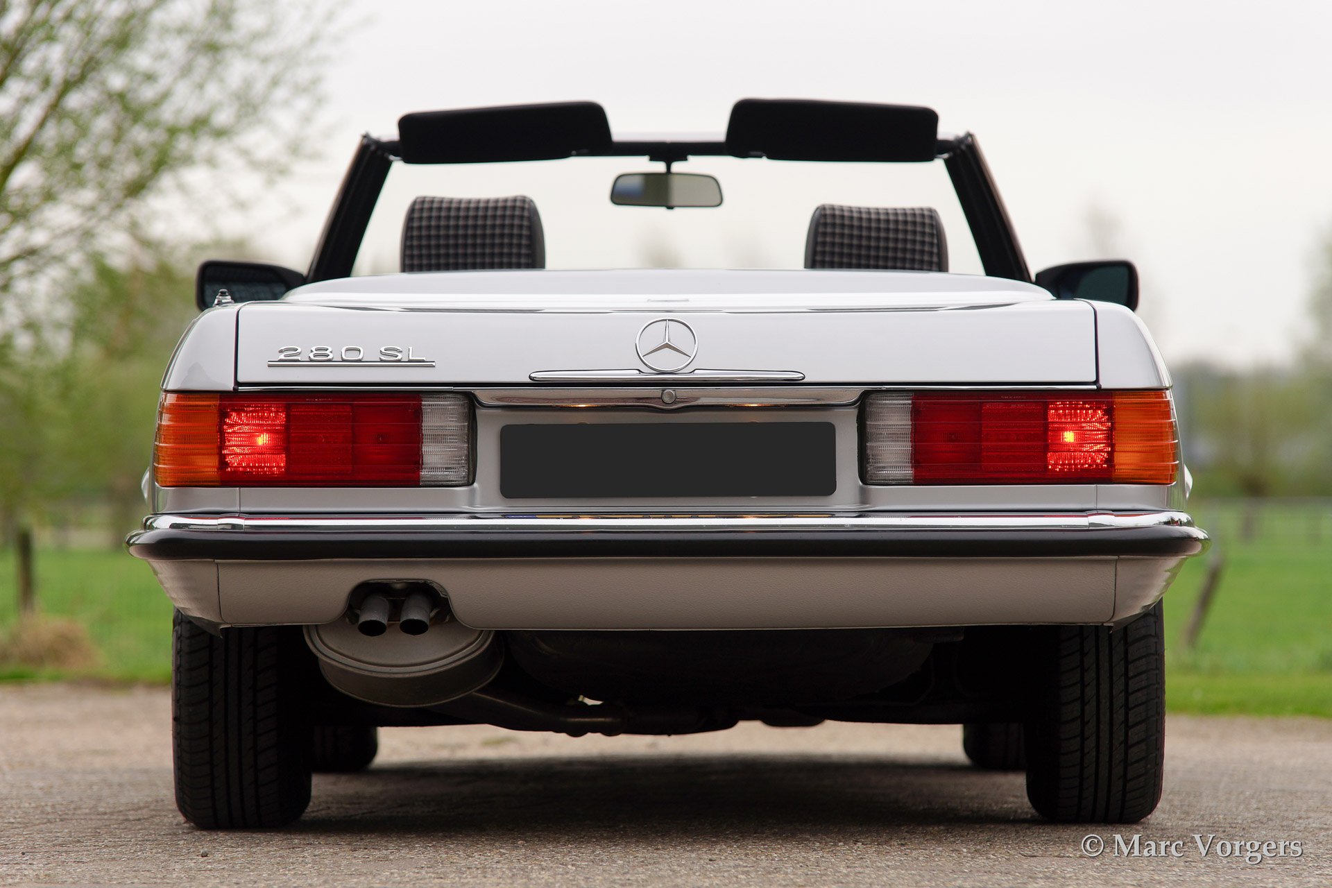 Mercedes-Benz 280 SL (R107), year 1982. Colour silver metallic with a black/grey interior. Seats with checkers motif. Original hard top in body colour. Original concours (show) condition. Where ever you look every detail is mint and pristine, the spare wheel still has it's original label attached. This 280 SL is complete with the original hard top and the car is fitted with an automatic gearbox, original alloy wheels and a period radio.