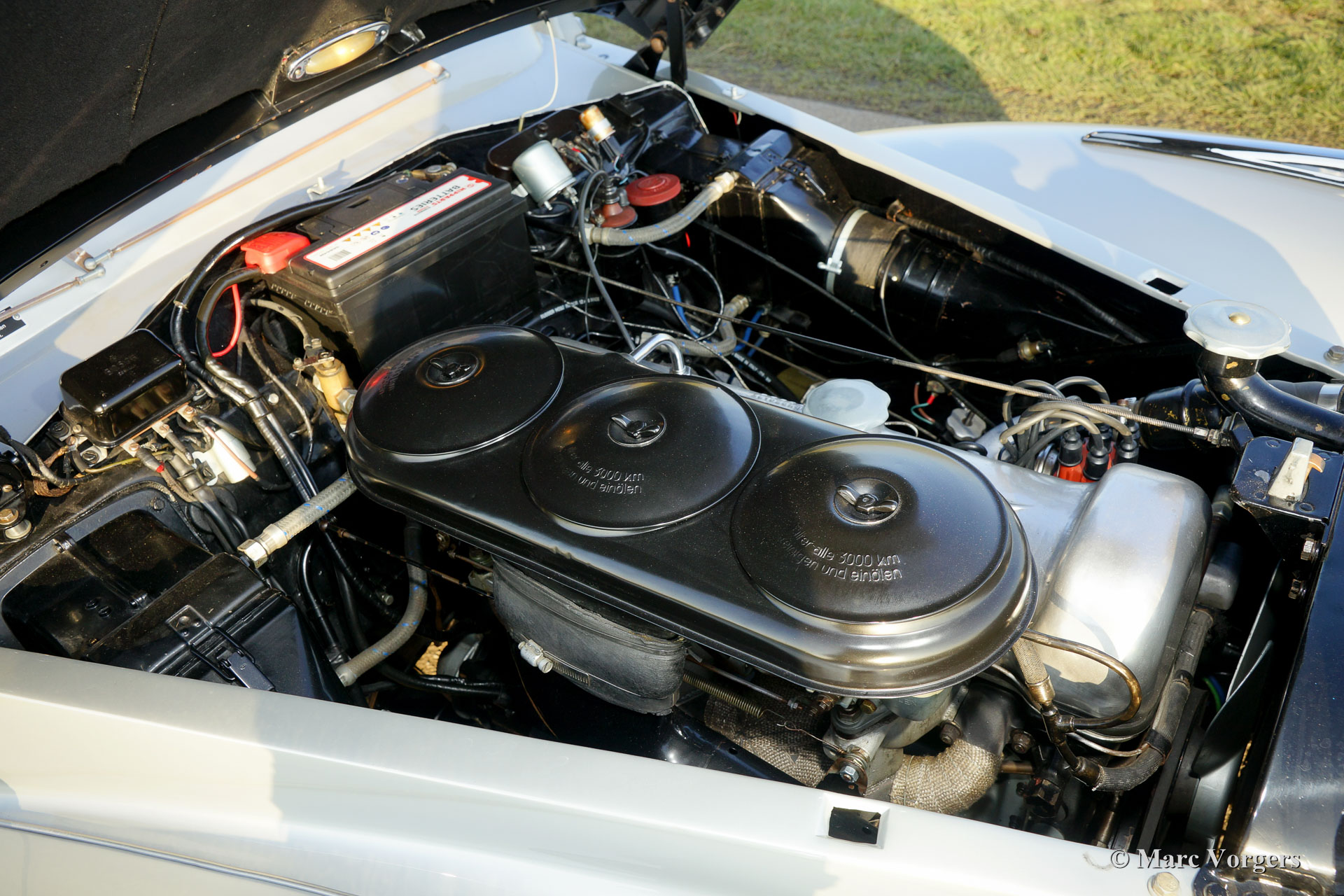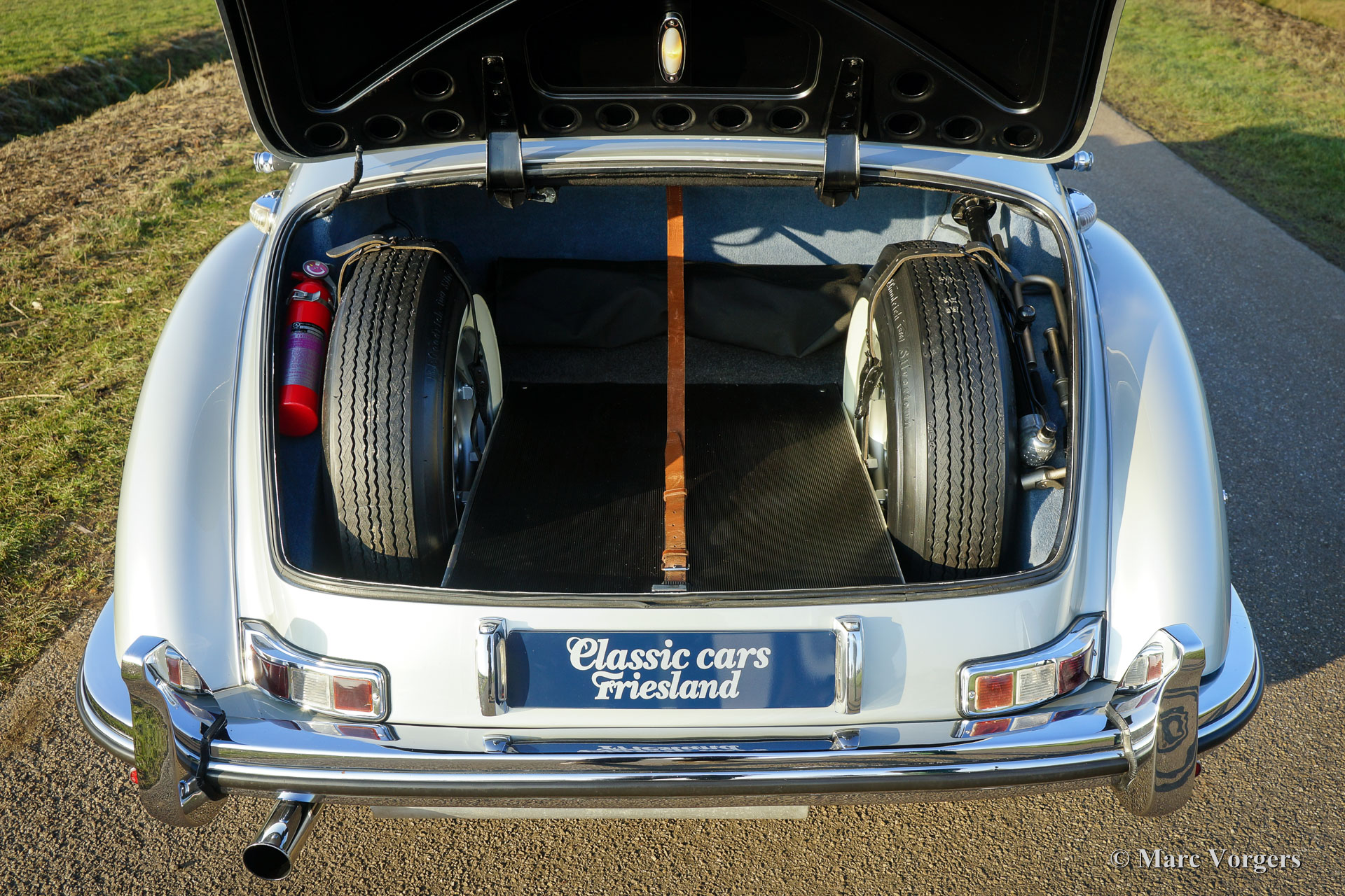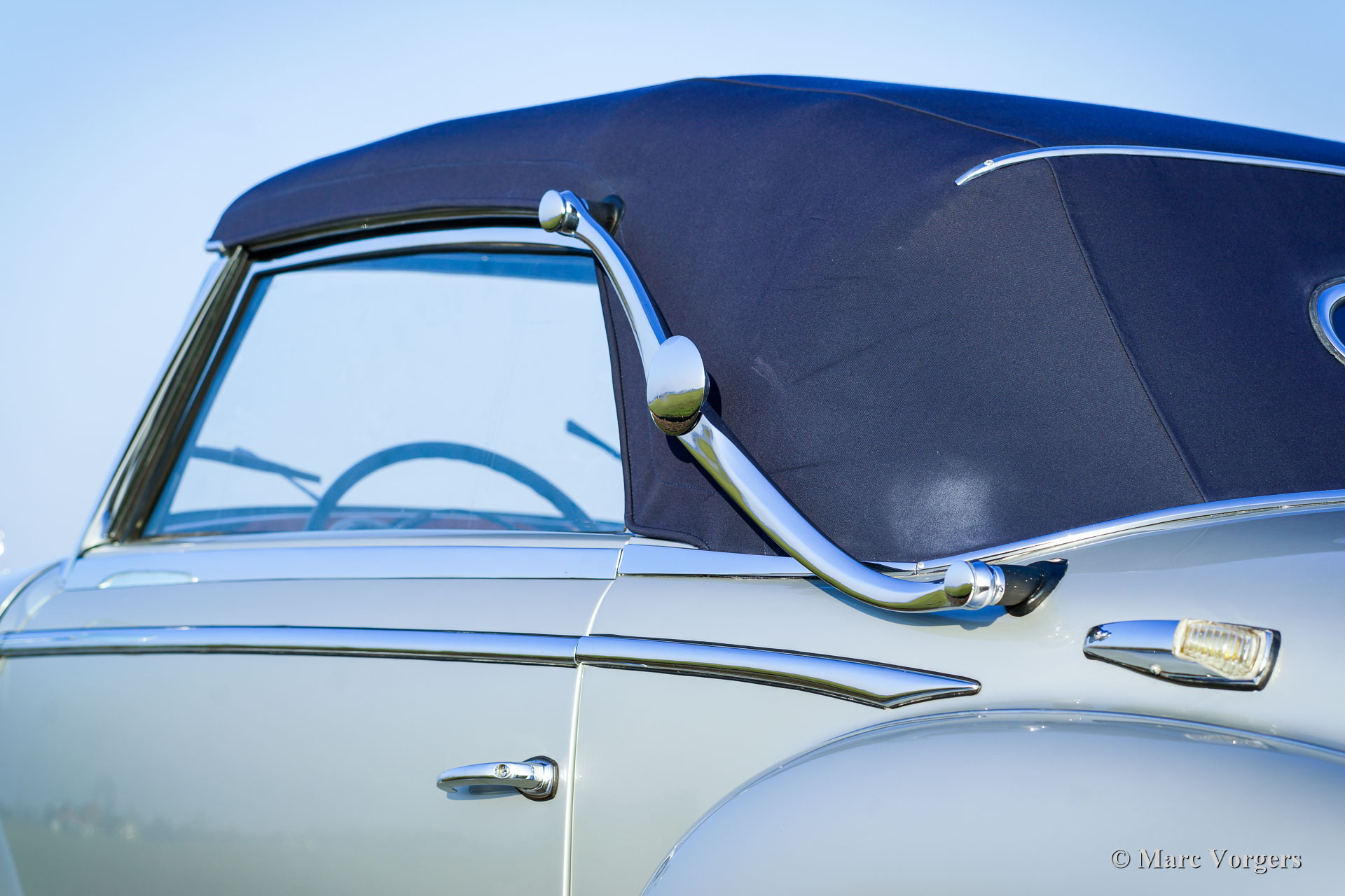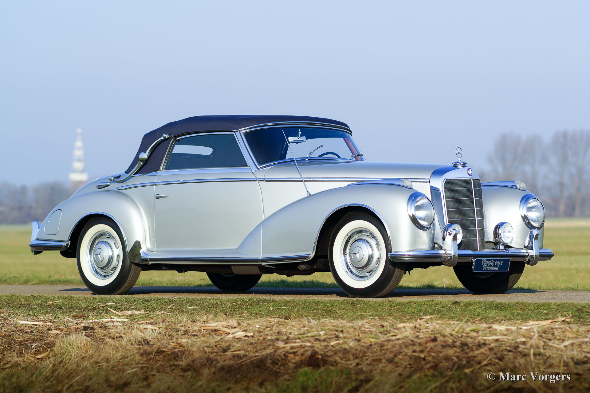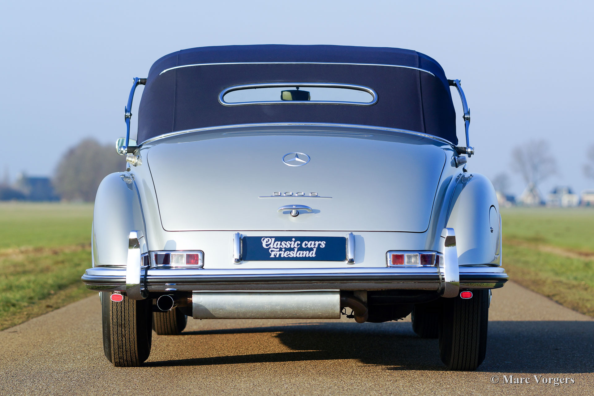 Mercedes-Benz 300 S cabriolet, year 1953. Colour silver metallic with a dark blue leather interior and blue carpet trimmed with dark blue piping. Dark blue mohair hood. This rare and very exclusive Mercedes-Benz has ‘matching numbers’. The original ‘Datenkarte’ is present as is the original owner’s manual. This wonderful Mercedes-Benz is in excellent and very original condition! The automobile shows all the original details and the car is fitted with original fog lamps. This 300 S is registered in the Netherlands. This is a very exclusive historic automobile, a magnificent show-piece in any Mercedes-Benz collection.