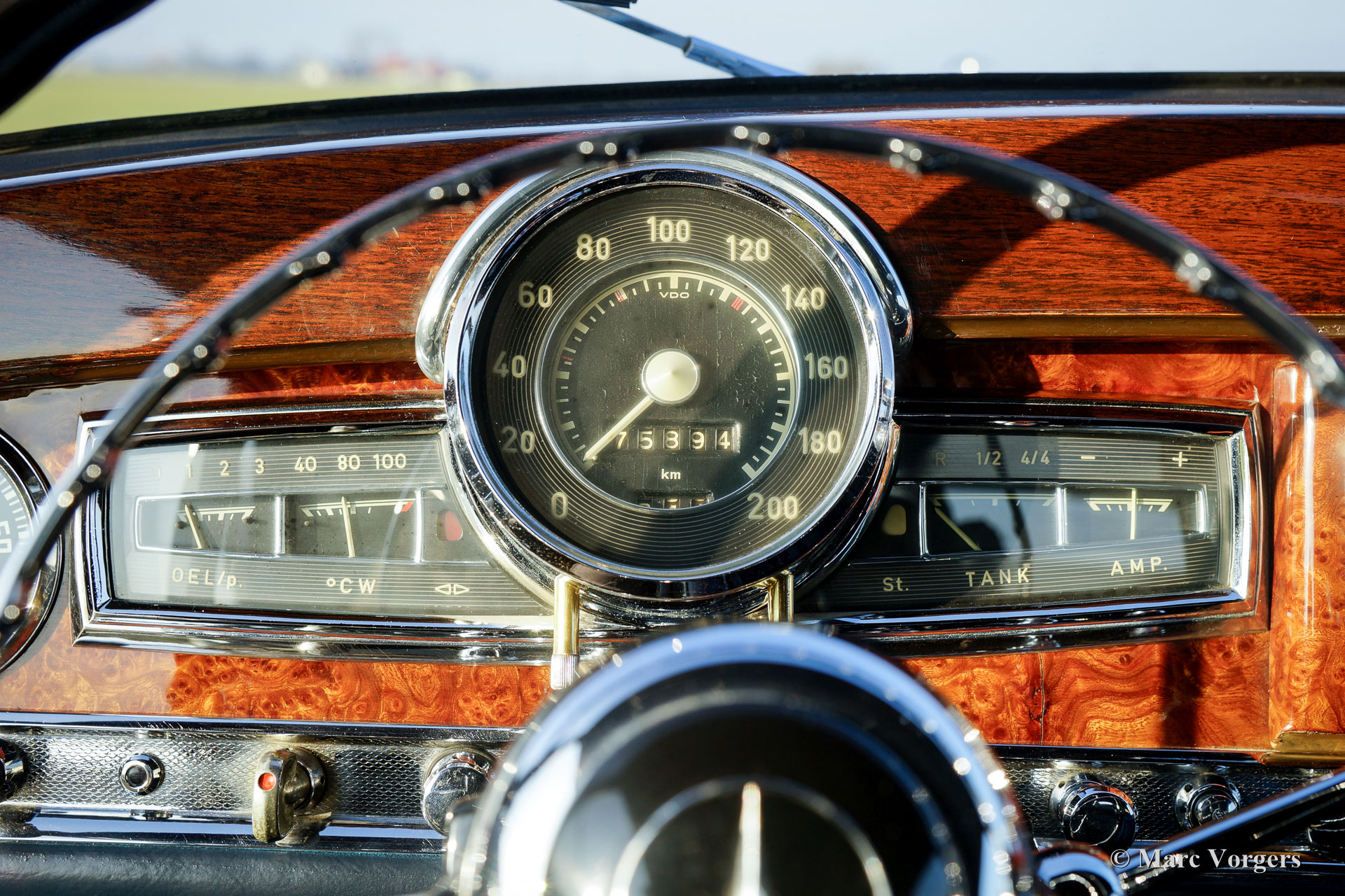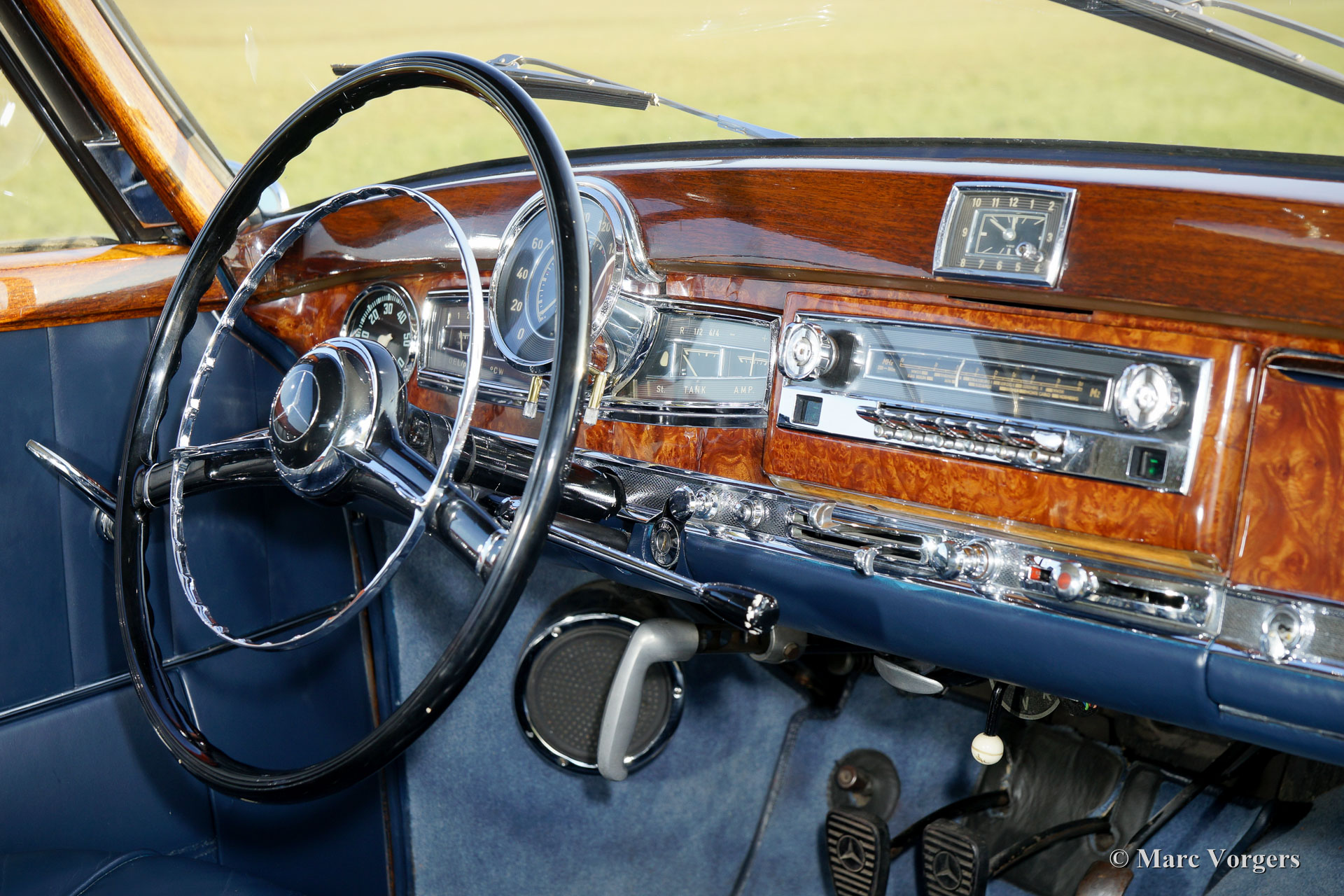 The Mercedes-Benz 300 was the ultimate top model of Mercedes-Benz in the fifties of the twentieth century. The model was named 'Adenauer' after 'Bunderkanzler' Konrad Adenauer who was driven in six 300 S models during his government period. The Mercedes 300 sedan and four door cabriolet (W186 - A series) were introduced together with the 300 S (W188 series) on the Paris Salon of 1951. The 300 S featured three downdraught Solex carburettors. In the year 1954 the B series was presented (with servo assisted brakes), in the year 1955 C series was introduced (with independent suspension and optional automatic transmission). In 1957 the D series (W189) saw the light of day (petrol injection standard). The Mercedes-Benz 300 S is scarce, between the years 1951 and 1958 only 760 have been built on a total of 12.290 300 models. The C-series 300 S was also available with petrol injection, this model was named 300 Sc. These models are very scarce, from the 300 Sc C-series cabriolet only 49 have been built. The Mercedes-Benz 300 'Adenauer' was an extremely luxurious automobile, only the best materials were used and the appearance was of royal class. In the 1950'ies they were the most expensive cars on the market and much more expensive than the Mercedes-Benz 300 SL 'Gullwing'. A 300 S cabriolet was available from 36.000 D-mark... Customers could order options like several Becker radio's, a dictating machine or a VHF telephone.