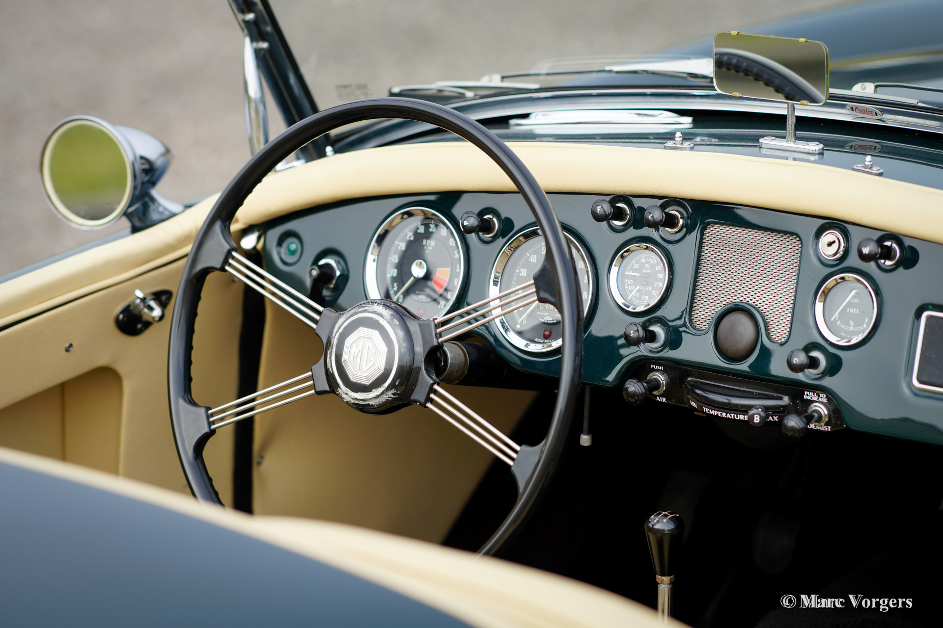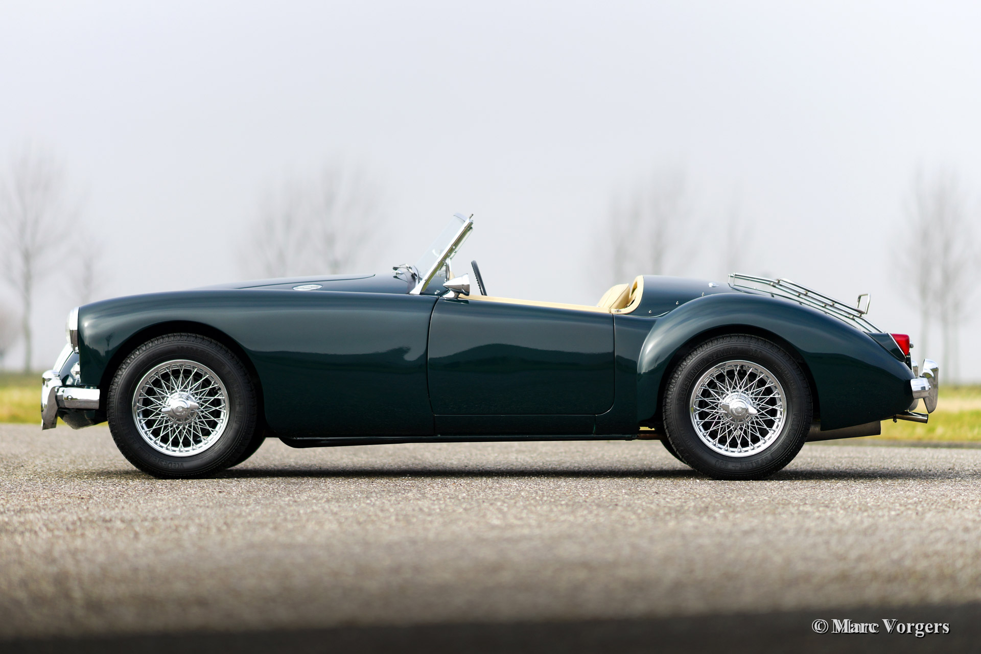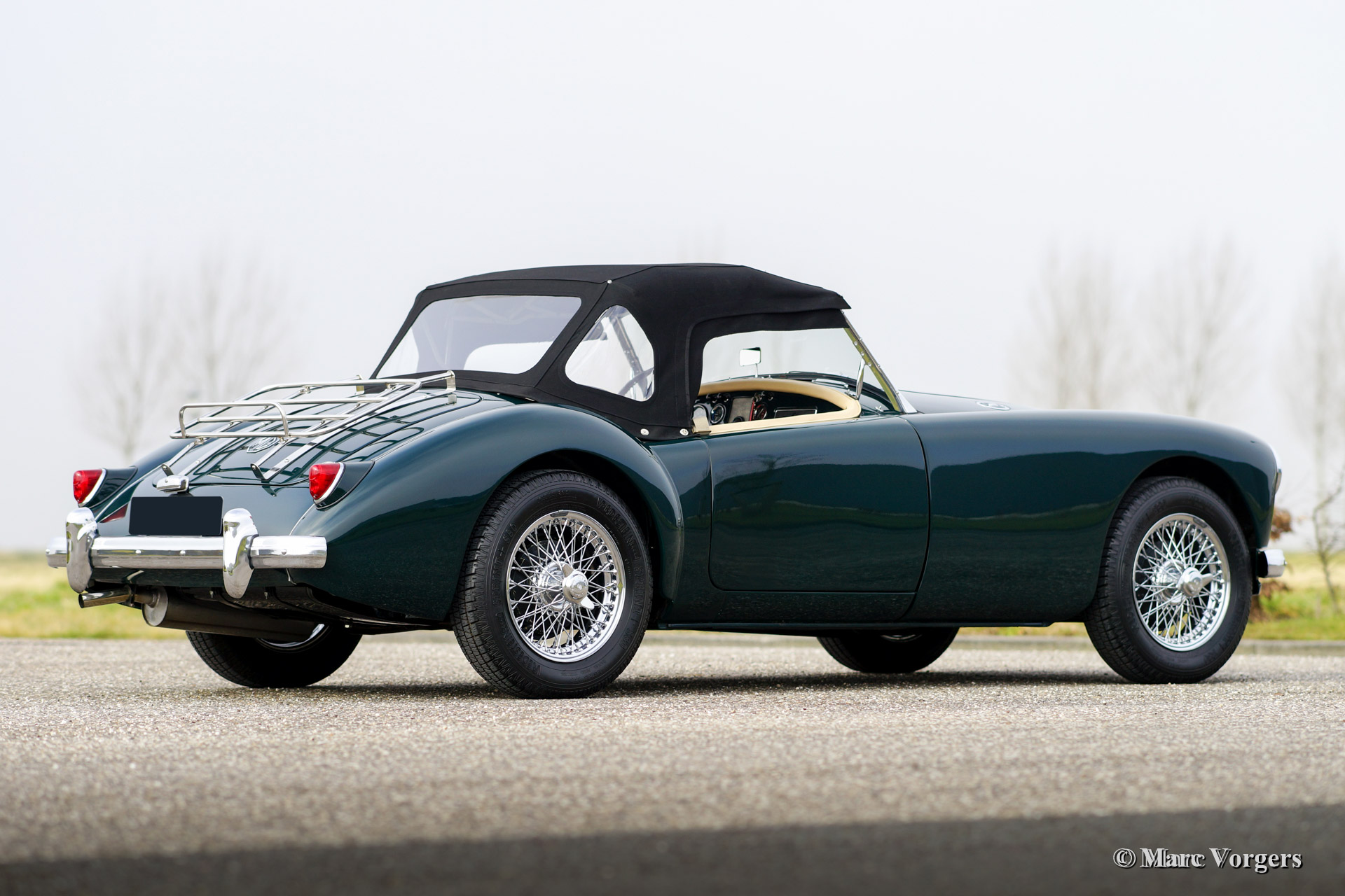 The year 1955 saw the introduction of the MGA. With this design the MG broke new grounds. After its predecessors MG TD and MG TF, which were largely based on the pre-war MG TB, it was a roadster with a very modern sporty design. Like its predecessors, the MGA was a great success and, like before, the greater part was sold in America. Until 1959, the MGA was equipped with a 1459 cc four-cylinder engine. From that year, the car was fitted with a 1588 cc four-cylinder. A 1622 cc four-cylinder engine replaced the 1588 cc. engine in 1961. The early MGA versions had very good drum brakes until 1959, but after that year, the MG A was equipped with disc brakes on the front wheels. The year 1962 saw the production of the MGA, the A 1600 Mk II. The MGB replaced this very popular British sports car, and was to develop the success of the MG A even further.