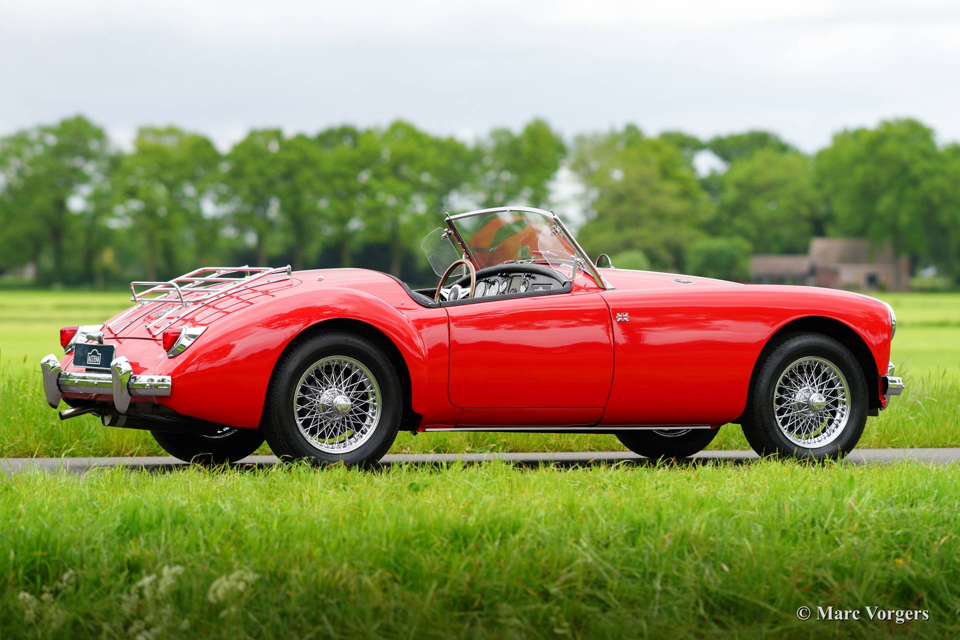 MG MGA 1500 roadster, year 1957. Colour red with a black leather interior and a black soft top. This beautiful and stylish MGA 1500 is in very good condition and the car drives delightfully! The car was fitted with the more powerful 1600 engine in the past. This is of course an improvement of the driving experience! The service history is known and documented. The automobile will be delivered with new Vredestein classic tyres, instruction manual and spare keys.