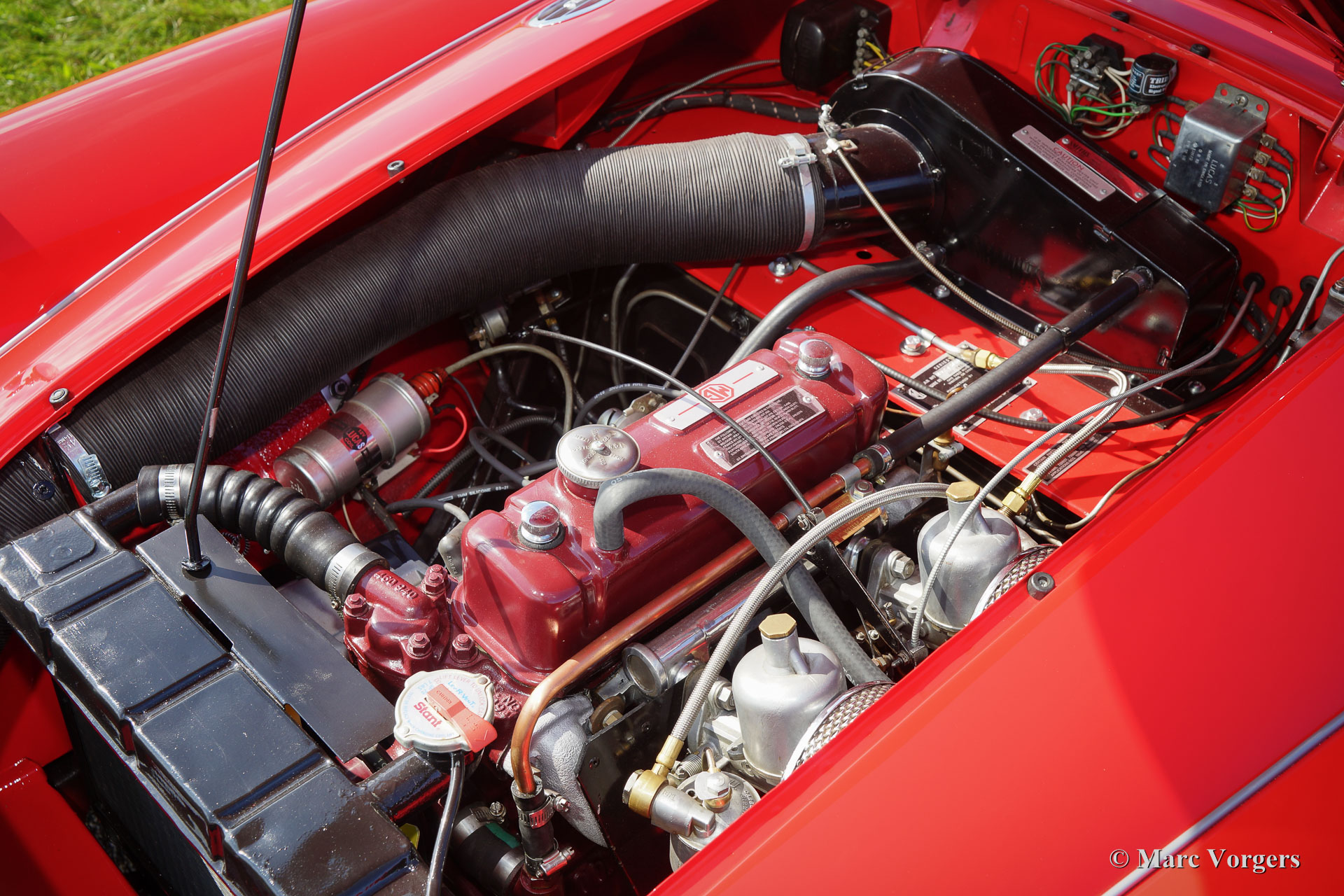The year 1955 saw the introduction of the MGA. With this design the MG broke new grounds. After its predecessors MG TD and MG TF, which were largely based on the pre-war MG TB, it was a roadster with a very modern sporty design. Like its predecessors, the MGA was a great success and, like before, the greater part was sold in America. Until 1959, the MGA was equipped with a 1459 cc four-cylinder engine. From that year, the car was fitted with a 1588 cc four-cylinder. A 1622 cc four-cylinder engine replaced the 1588 cc. engine in 1961. The early MGA versions had very good drum brakes until 1959, but after that year, the MG A was equipped with disc brakes on the front wheels. The year 1962 saw the production of the MGA, the A 1600 Mk II. The MGB replaced this very popular British sports car, and was to develop the success of the MG A even further.
