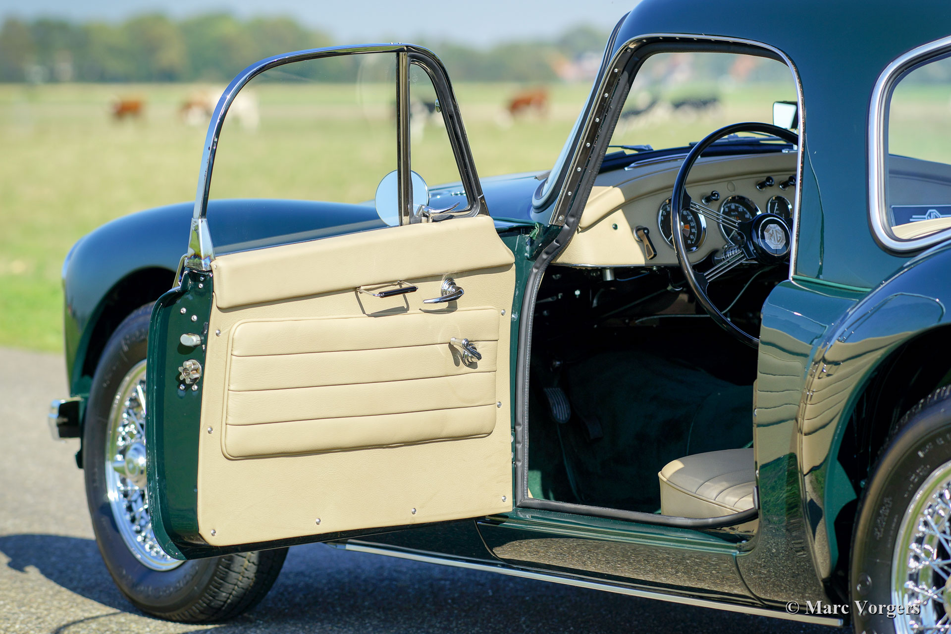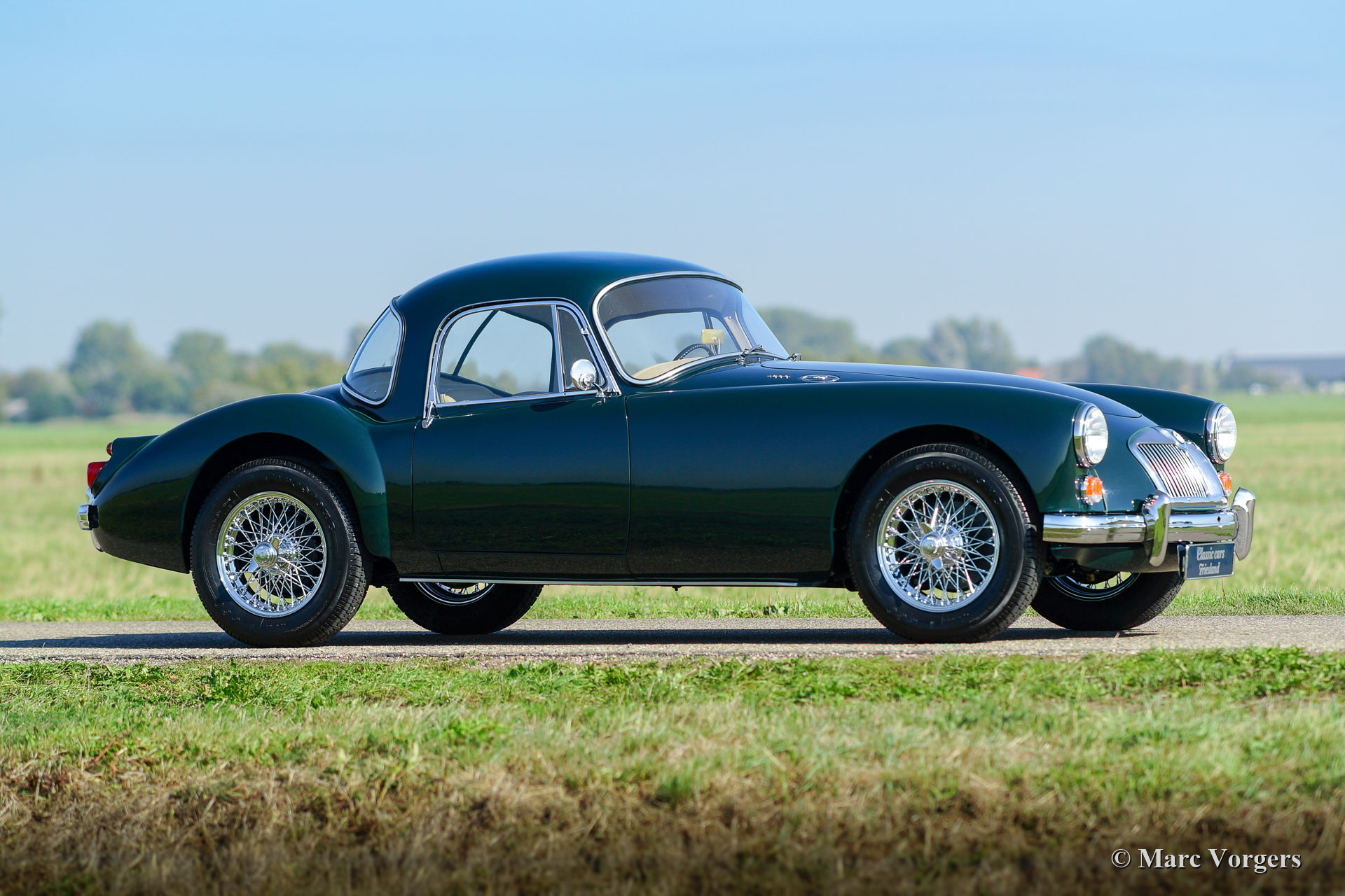 MG MGA 1600 Coupé, year 1960. Colour dark British Racing Green combined with a beige leather interior and green wool carpet. In the period 2012 – 2015, This fantastic MGA Coupé was extensively and ‘body-off restored and overhauled in the Netherlands. A huge restoration file including a photo report is present. This MG MGA 1600 Coupé is in superb top condition! The restoration has been a very thorough job with an eye for perfect originality; The chassis was sand blasted and stove enamelled, and the bodywork was restored professionally, showing perfect panel fit and crisp lines! The interior was newly upholstered perfectly including the head-lining. The mechanicals were overhauled, engine, gearbox, suspension, dashboard gauges etcetera. The brightwork was re-chromed / partly renewed and the wiring loom was renewed. The car features the original steering-wheel, chrome wire wheels and a Stainless-Steel exhaust. This gorgeous MGA 1600 Coupé drives and handles delightfully. This is a top-class specimen!