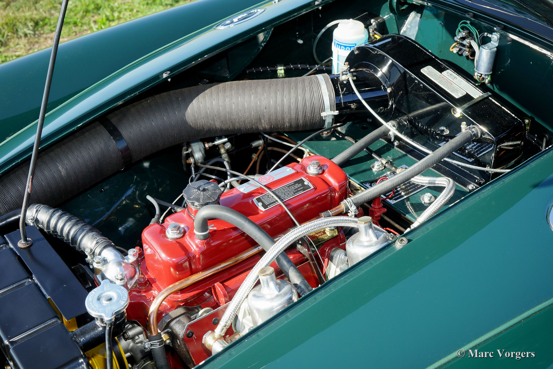 The year 1955 saw the introduction of the MGA. With this design the MG broke new grounds. After its predecessors MG TD and MG TF, which were largely based on the pre-war MG TB, it was a roadster with a very modern sporty design. Like its predecessors, the MGA was a great success and, like before, the greater part was sold in America. Until 1959, the MGA was equipped with a 1459 cc four-cylinder engine. From that year, the car was fitted with a 1588 cc four-cylinder. A 1622 cc four-cylinder engine replaced the 1588 cc. engine in 1961. The early MGA versions had very good drum brakes until 1959, but after that year, the MG A was equipped with disc brakes on the front wheels. The year 1962 saw the production of the MGA, the A 1600 Mk II. The MGB replaced this very popular British sports car, and was to develop the success of the MG A even further.