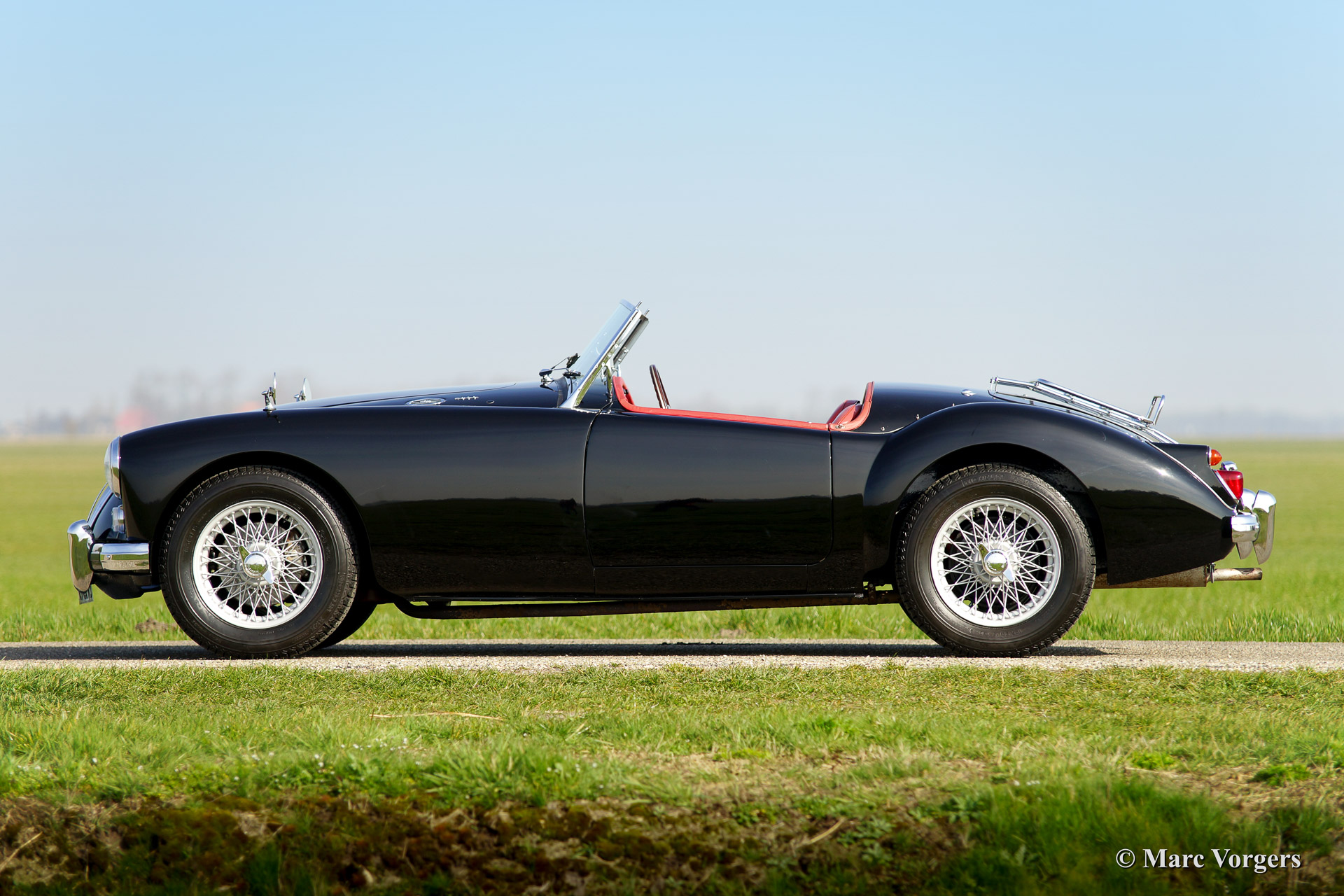 The year 1955 saw the introduction of the MGA. With this design the MG broke new grounds. After its predecessors MG TD and MG TF, which were largely based on the pre-war MG TB, it was a roadster with a very modern sporty design. Like its predecessors, the MGA was a great success and, like before, the greater part was sold in America. Until 1959, the MGA was equipped with a 1459 cc four-cylinder engine. From that year, the car was fitted with a 1588 cc four-cylinder. A 1622 cc four-cylinder engine replaced the 1588 cc. engine in 1961. The early MGA versions had very good drum brakes until 1959, but after that year, the MG A was equipped with disc brakes on the front wheels. The year 1962 saw the production of the MGA, the A 1600 Mk II. The MGB replaced this very popular British sports car, and was to develop the success of the MG A even further.