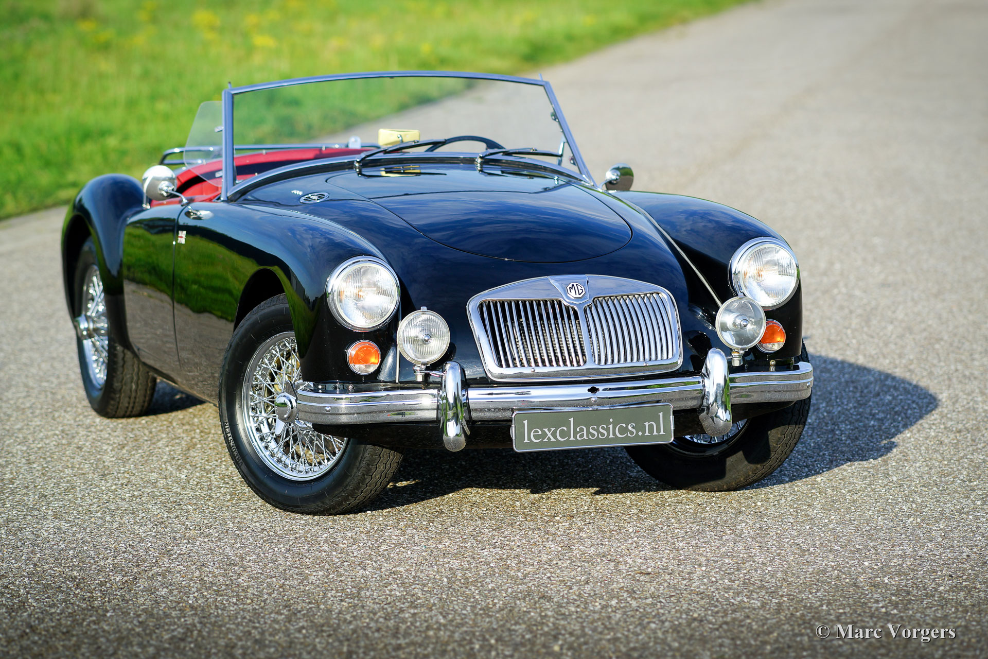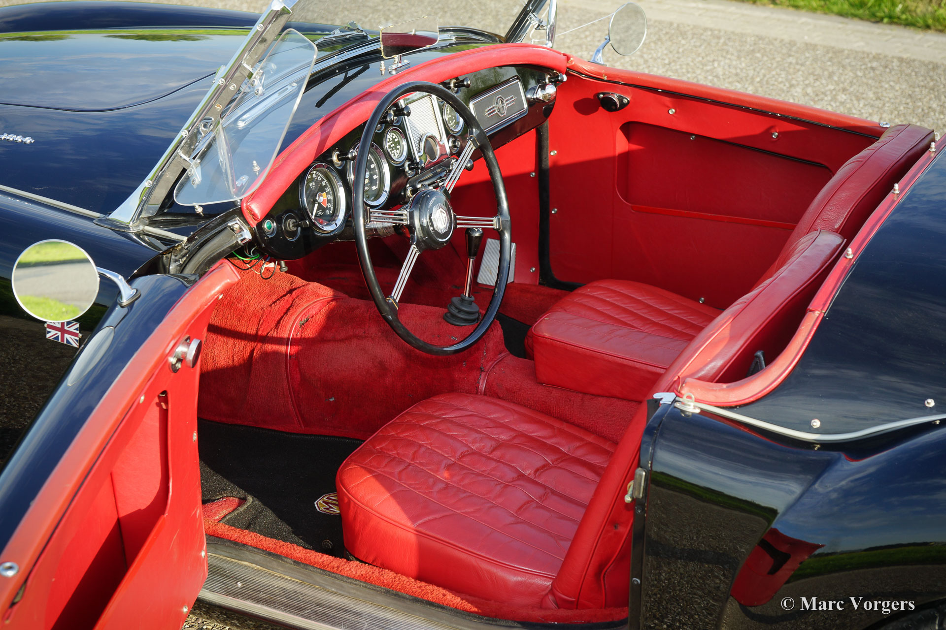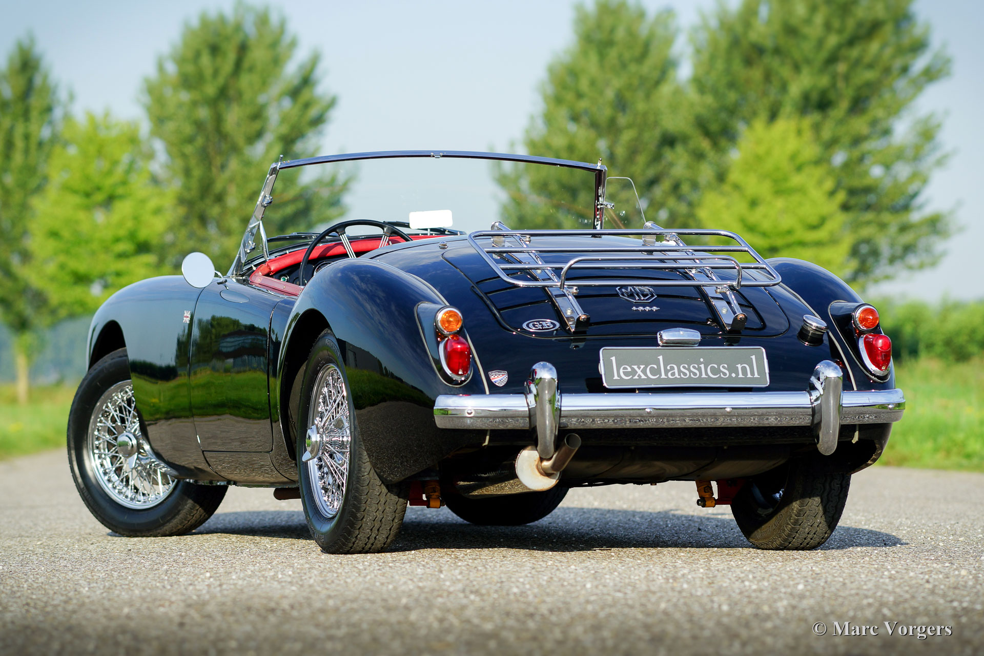 MG MGA 1600 roadster, year 1960. Chassis number GHNL7277X. Colour black with a red leather interior, red carpet and black protective mats with embroidered MG logo. Black mohair soft-top. This beautiful MGA roadster was extensively ‘body-off’ restored in the past. This fine MG is in very good condition and the car drives delightfully! This MGA 1600 roadster features chrome wire wheels, chrome ‘knock-off’ wheel-nuts, rear-view mirrors on both sides, side screens, additional lamps at the front (fog and spot) and a chrome luggage rack. Experience the fantastic classic open top driving experience this gorgeous MGA roadster has to offer!