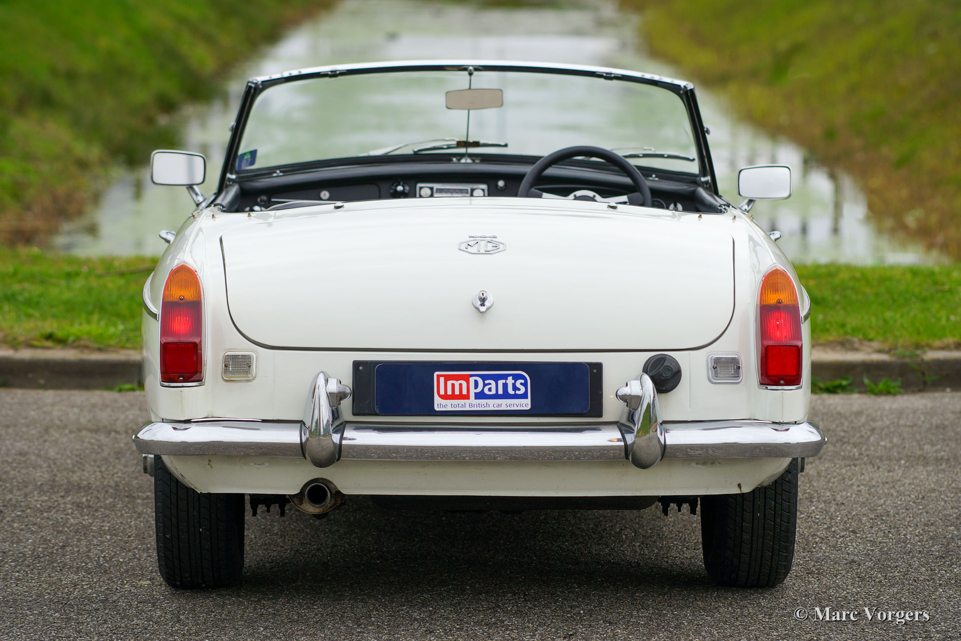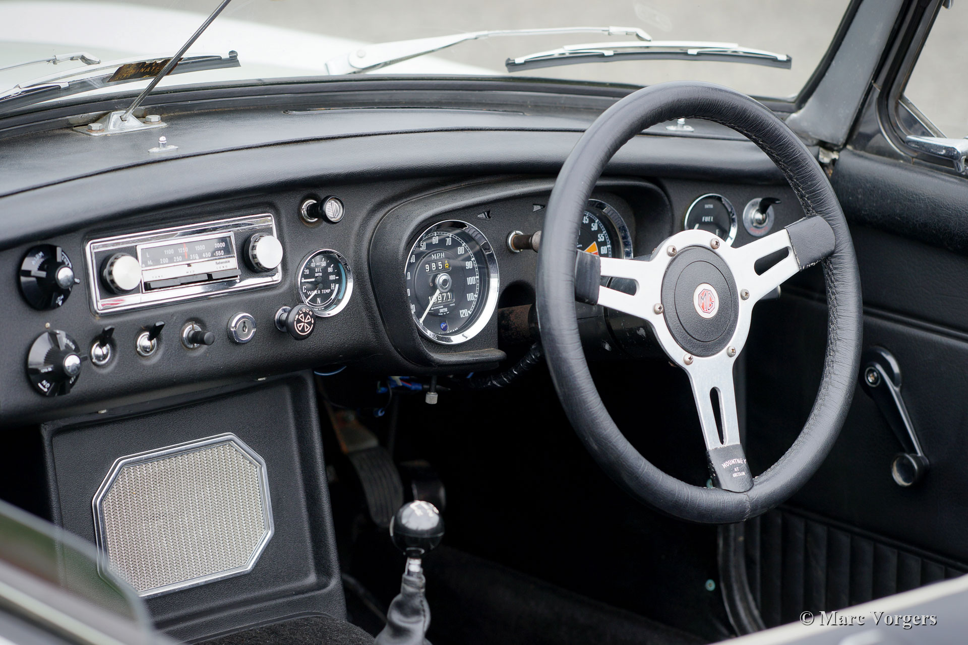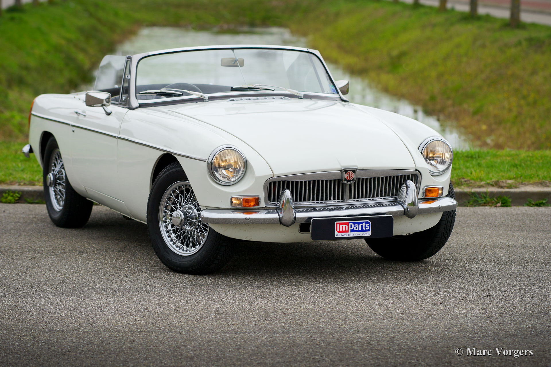 MG MGB roadster, year 1970. Colour white combined with a black leather interior, trimmed with white piping and black carpet. Black ‘pack away’ soft-top. This right-hand drive (RHD) MGB roadster was extensively restored in the United Kingdom in the past. The restoration was based on a brand-new British Motor Heritage body shell. Looking at this MGB for the first time you are under the impression to be looking at a perfectly preserved original car, that is a good thing meaning that the car shows all the original details, slight traces of previous use, and a wonderful patina. The car is in exceptionally good all-over condition and the car drives and handles perfectly! The MGB features the desirable early metal dashboard, OVERDRIVE, additional oil-cooler, an aluminium rocker cover, chrome wire wheels, a sports steering wheel with leather rim and a period correct Radiomobile radio without FM. For an additional charge of 2500 we can convert this right-hand drive MGB to left-hand drive. This beautiful MGB roadster is ready to be enjoyed!