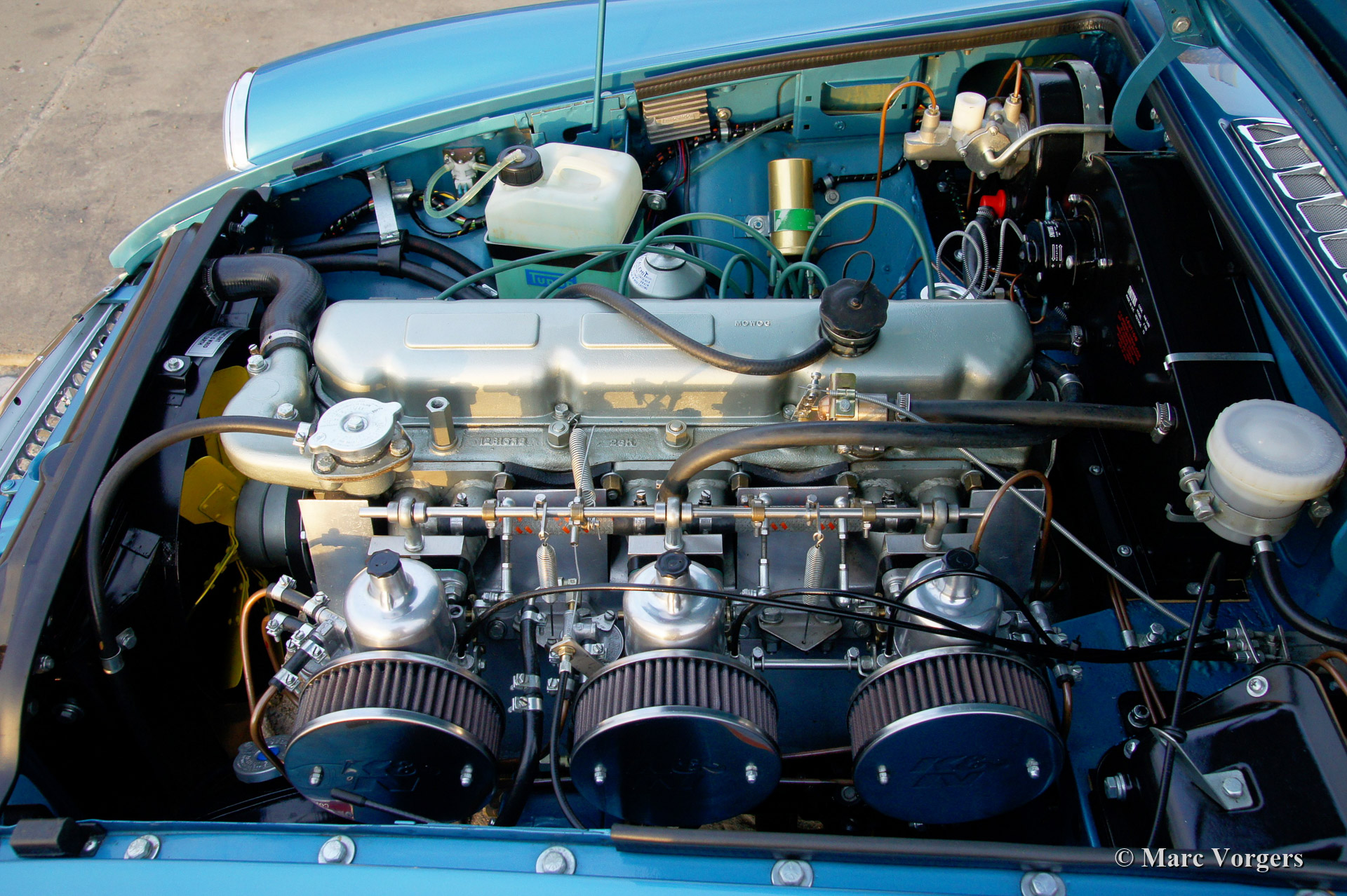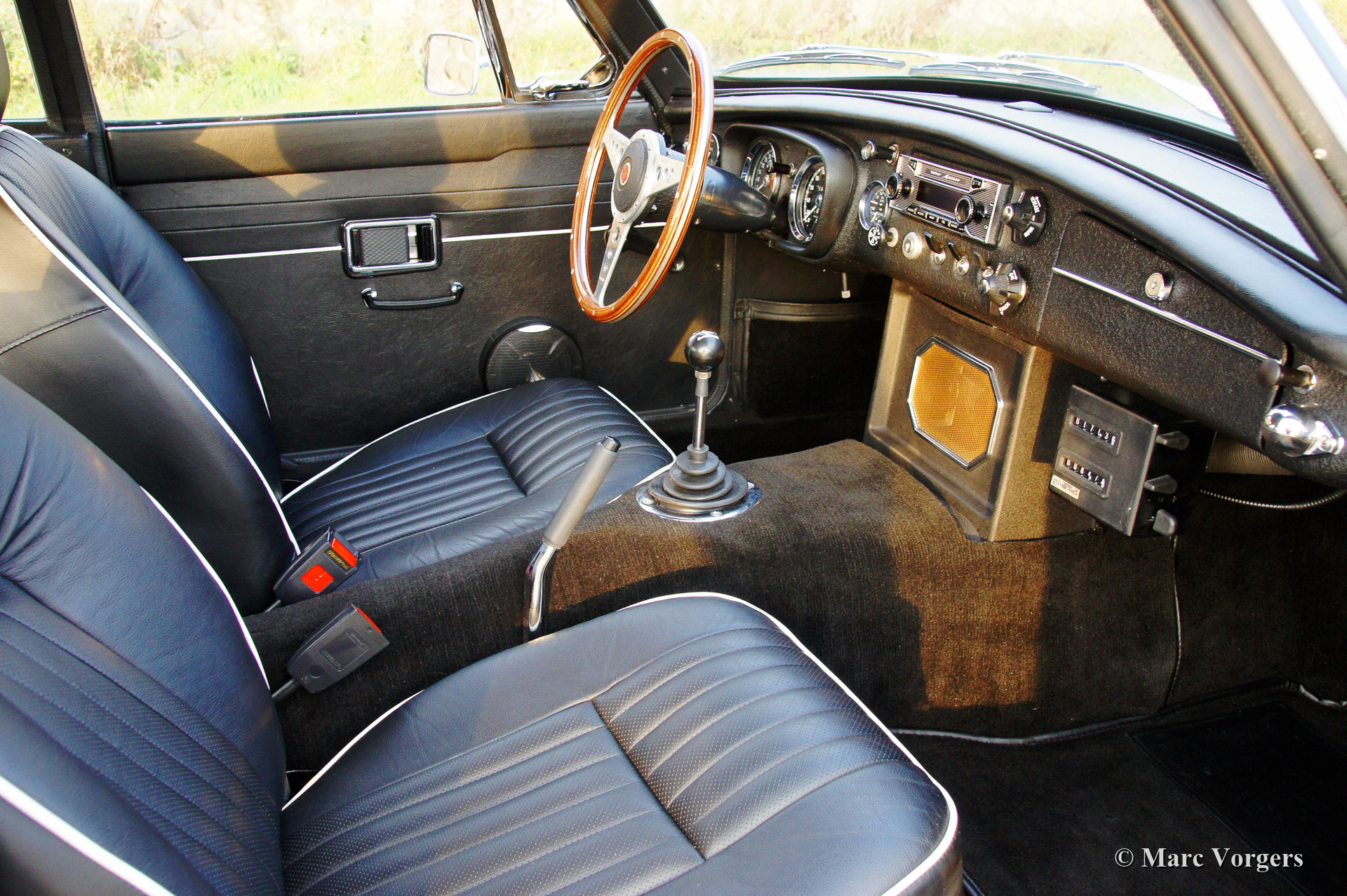 MG MGC GT, year 1969. Colour Riviera silver blue metallic with a black leather interior. This fantastic MGC was slightly modified and 'fast road' tuned. The original SU carburettors were exchanged by three SU HS6 carburettors on a special manifold. The car features a 'modern classic' Becker Mexico HiFi system with built in SatNav.
