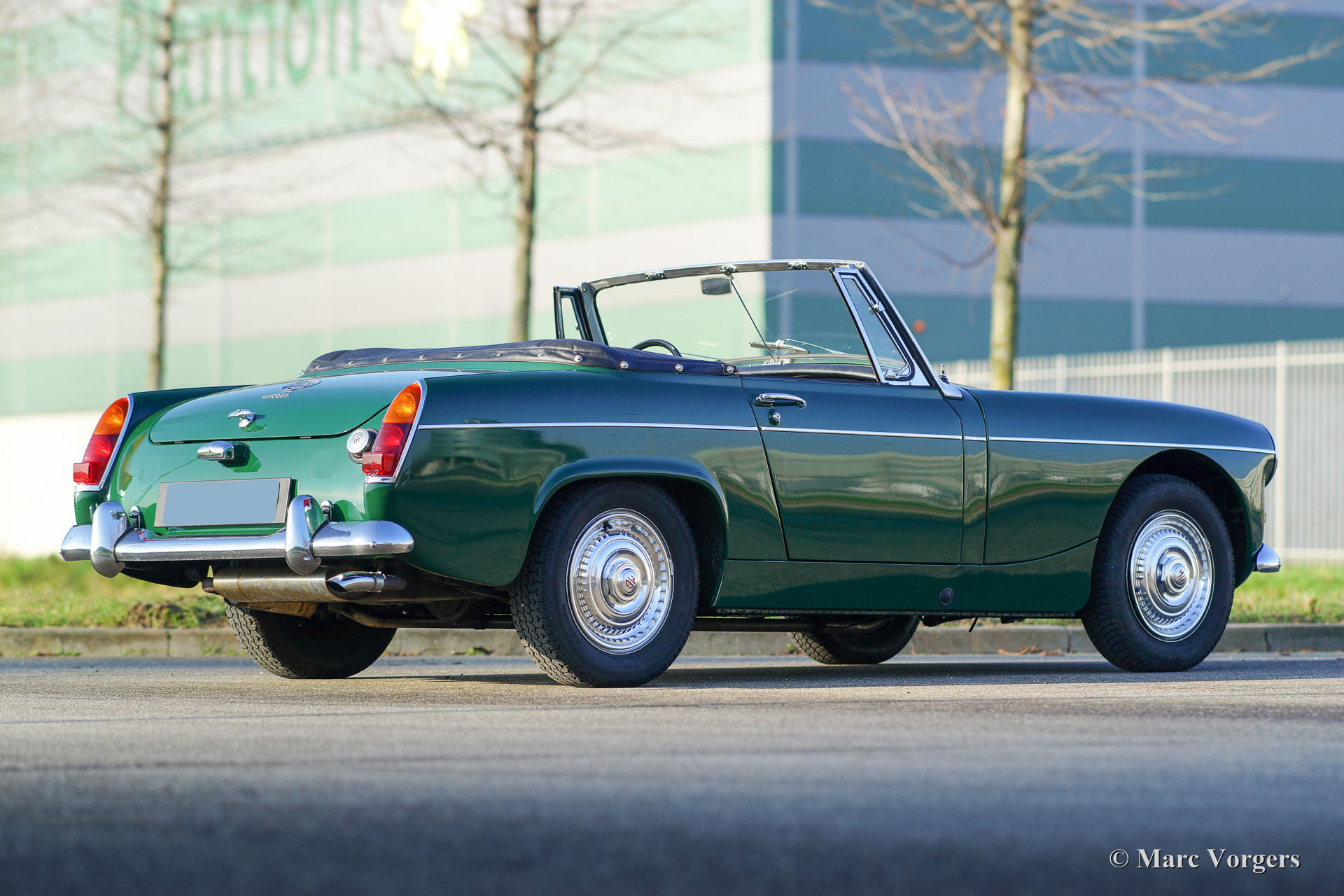 In 1964 the MG Midget MK II was introduced. The MK II was a more "luxurious" little sports car fitted with roll-up windows, door handles and locks (!) and improved semi-elliptic springs at the rear. In 1966 the MK III succeeded the MK II. The Midget became a larger, stronger engine; 1275 cc. and 65 bhp. were available now. Also the soft-top construction improved. The top remained on the car when folded and could be folded down easily now. In 1969 the Midget MK III evaluated again (MK III phase 2); the grille changed and the car was up-rated with slicker bumpers. In the year 1971 the sister model Austin Healey Sprite was taken out of production. In 1972 the MG Midget became round rear wheel arches and a larger petrol tank (MK III phase 3). The final MG Midget version, the MK IV, was built between 1974 and 1979. The MK IV was equipped with a 1493 cc., 66 bhp. engine. Also the car was fitted with thick rubber safety bumpers according to US safety regulations.