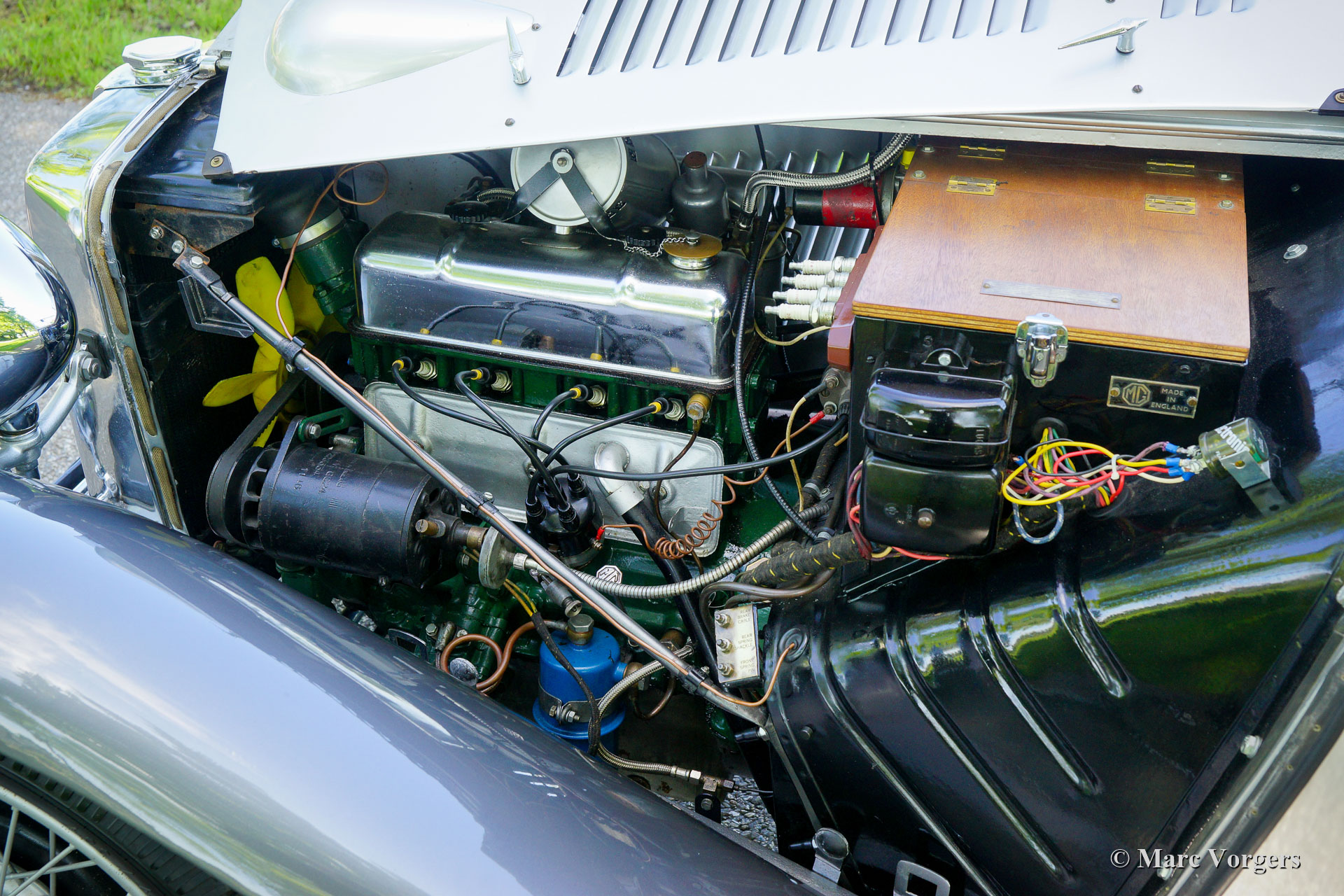 The MG TB was presented in the year 1939 as successor of the MG TA. The TB was the last pre war MG T-type 'Midget'. The design was identical to the TA with it's elegantly flowing wings, and large 19" wire wheels. Mechanically some things had changed; the TB was given the new XPAG engine from the Morris Ten, revised gear ratios and a dry clutch. T-types became very popular with the American soldiers. Returning home they often shipped a T-type to the USA. This type of little sportscar was unknown in America. From then MG's became immensely popular in the USA. All TB’s were right hand driven. The MG TB is the scarcest MG T-type. Because of the 2nd world war production ceased after 379 cars. In 1945 the MG TB was succeeded by the MG TC.