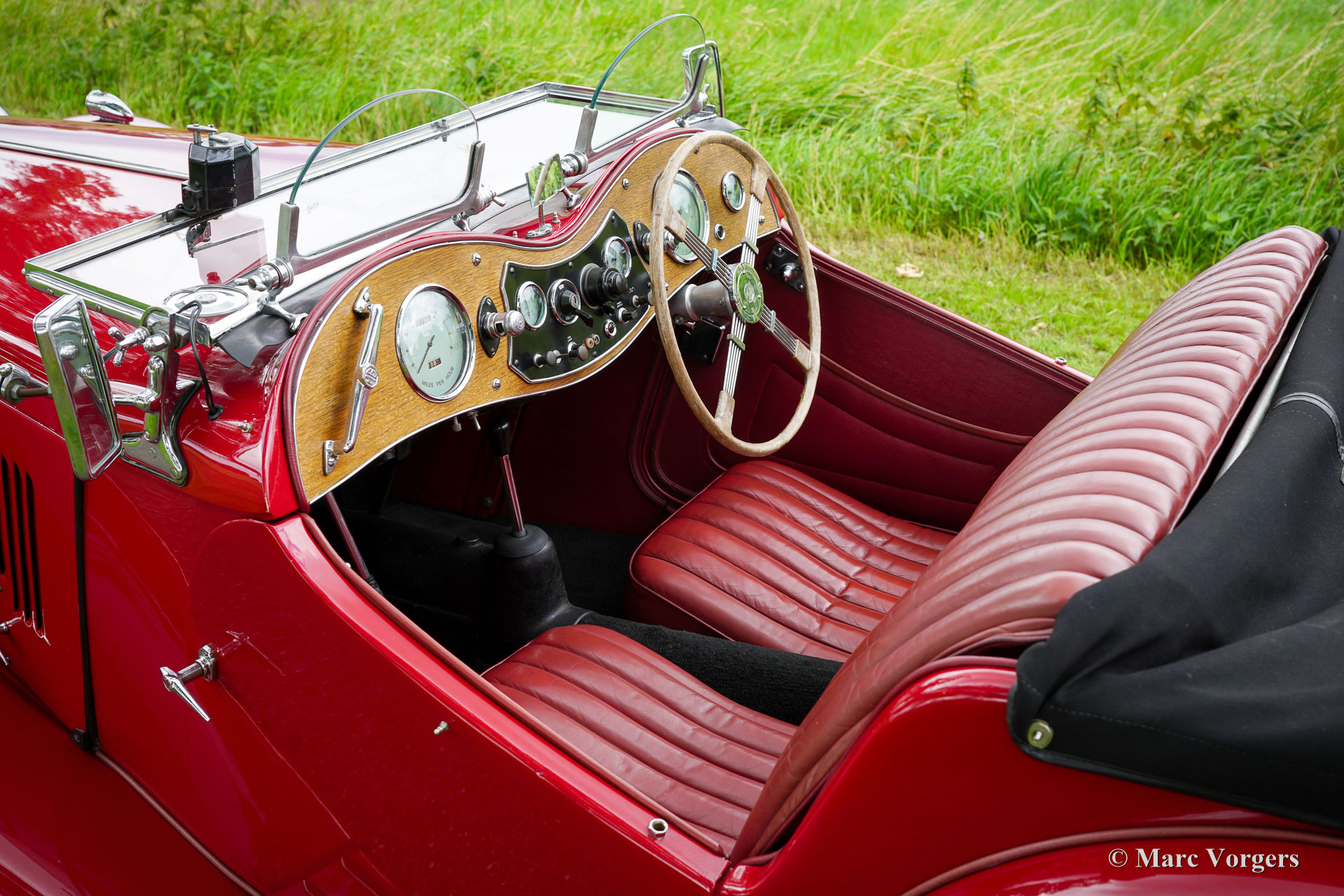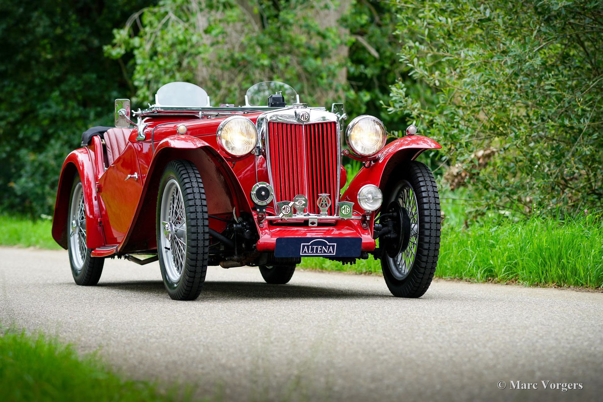 MG TC, year 1946. Colour dark red combined with a matching dark red leather interior, trimmed with black carpet. Black mohair hood, hood cover and tonneau cover, black side screen frames. This gorgeous MG TC was sold new in the United Kingdom. The car is registered in the MG-T Register. In the years 2008 – 2010 the MG TC was nut and bolt restored to factory specifications in the UK. Costs nor effort were spared to make the car perfect. The restoration is superbly documented, a photo album showing the full restoration is present as is a file with all the invoices! This MG TC shows all the original details, and is fitted with twin spare wheels mounted at the back. Since completion of the restoration the MG TC has brought the previous owner many unforgettable moments on the winding British country roads. The car was perfectly serviced and pampered by the owner. This MG TC is in an excellent condition showing only slight traces of previous use. The car was recently imported from the UK to an EU country, this super original MG can be imported to, and registered in any country worldwide. This stunning MG TC is ‘turnkey’ ready to be enjoyed to the fullest!