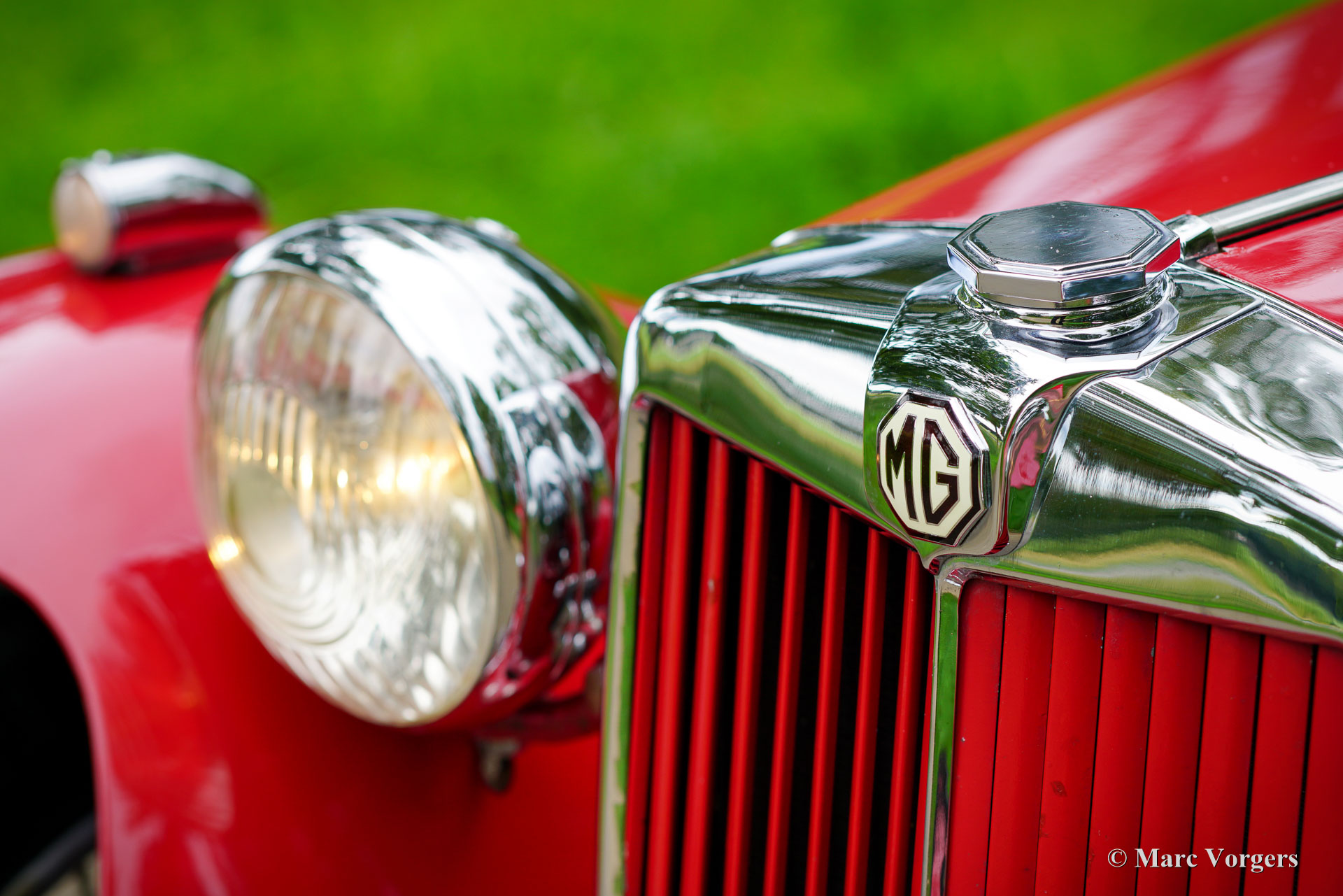 The MG TC was the first new post-war MG. The TC was introduced in 1945, and based on the pre-war TB, it was very similar. A major improvement to the TC was the larger interior, which was increased by 10 cm. The design was similar to the pre-war TB, with swept separate wings, large 19-inch wire wheels and a folding windshield. The MG TB/TC series were much admired by the American soldiers who were on the point of returning to America; this type of small sports car with its smooth handling, was not yet known in America. As a result, many TBs and TCs were shipped to America, and also the MG TC was in great demand at the other side of the pond. All TCs had right-hand steering, leaf springs all around and a 54 bhp four-cylinder engine. In 1950, the MG TC was succeeded by the MG TD.