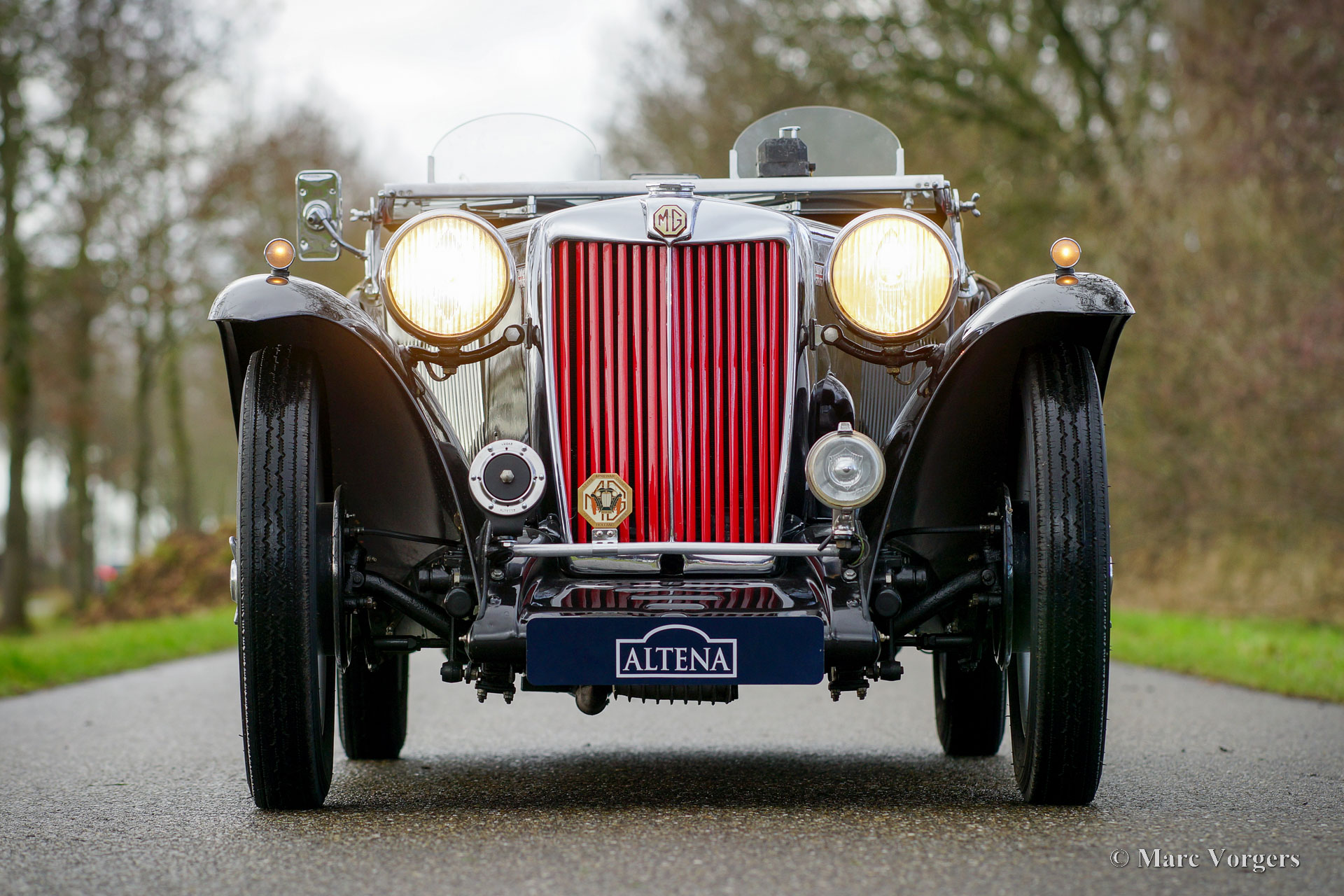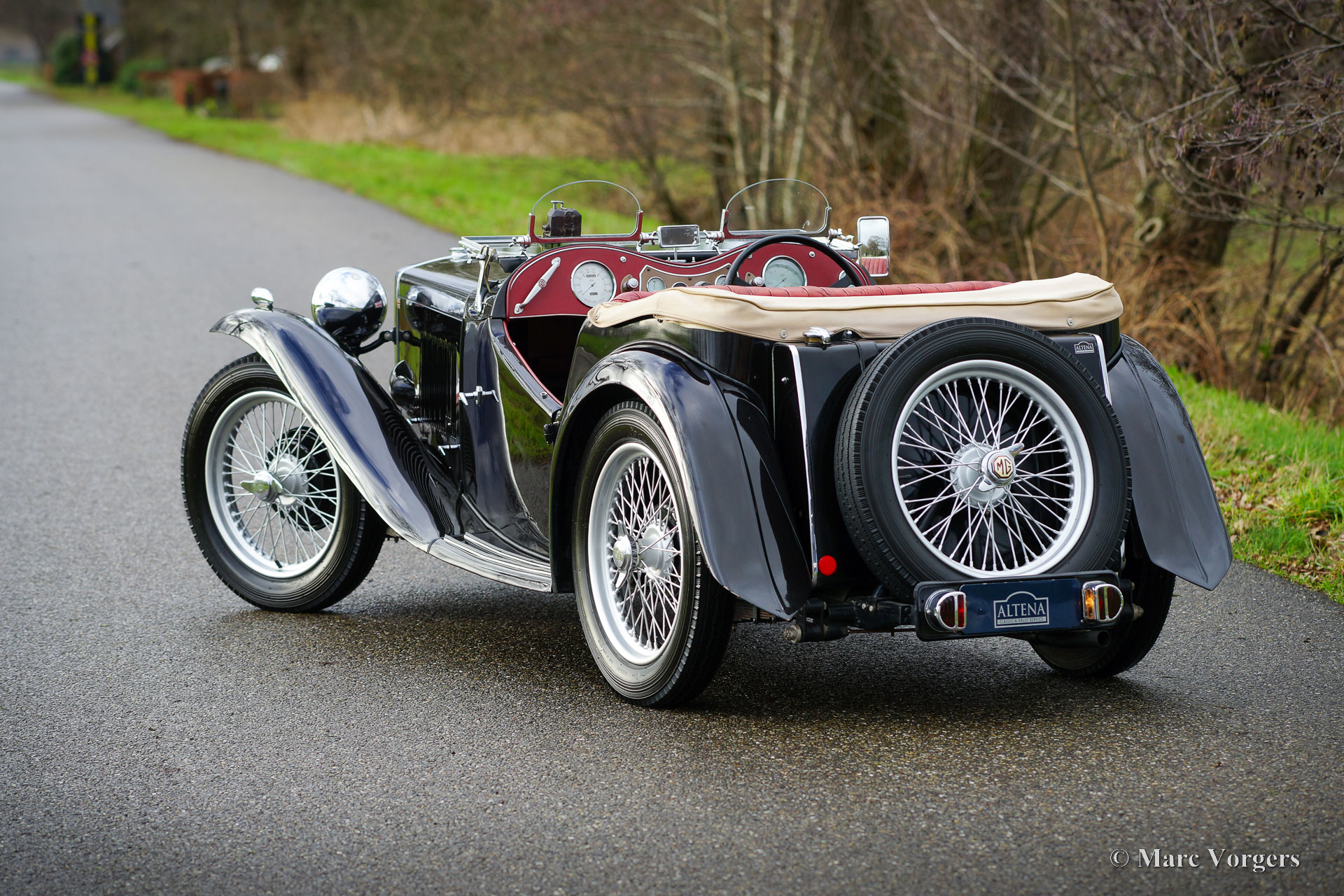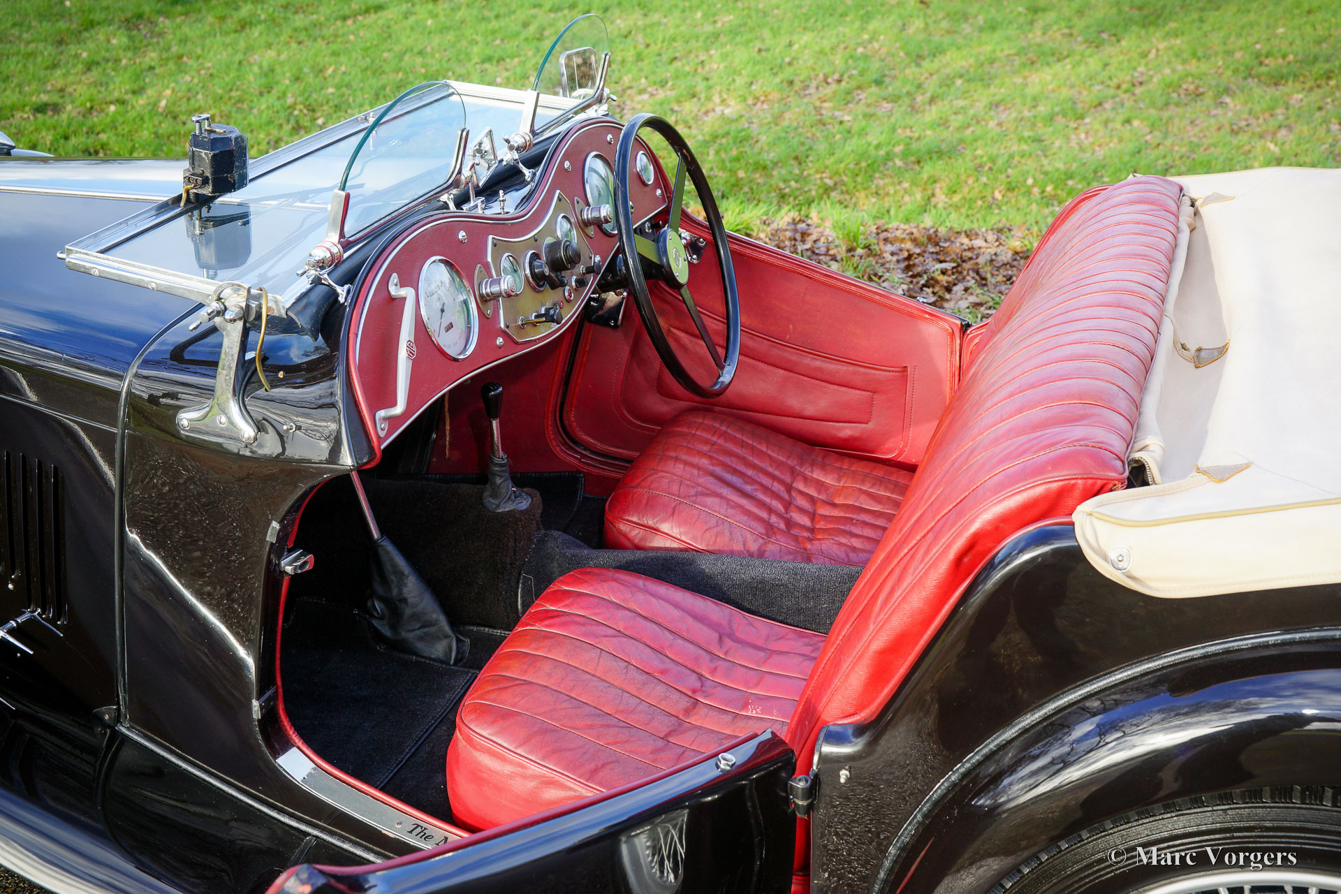 MG TC, year 1950. Colour black combined with a red leather interior and black carpet. Pale brown soft -top and side screens. This wonderful MG TC was sold new in the United States of America, and it was imported to the Netherlands in 2010. In the Netherlands the automobile was restored and overhauled. This MG TC is in a very good and beautiful condition with light traces of use, a fantastic patina. The weather equipment is in good condition and shows light traces of use. This MG TC looks fantastic in the black colour scheme with red leather and the silver painted wire wheels. The car is fitted with ‘Brooklands’ aero screens which give the car a very sporty and masculine appearance with the windshield down. The car drives and handles wonderfully, the driving experience is intense and very satisfying. This MG TC is a wonderful and very good and reliable specimen for the MG enthusiast who likes to drive and enjoy the car to the fullest!