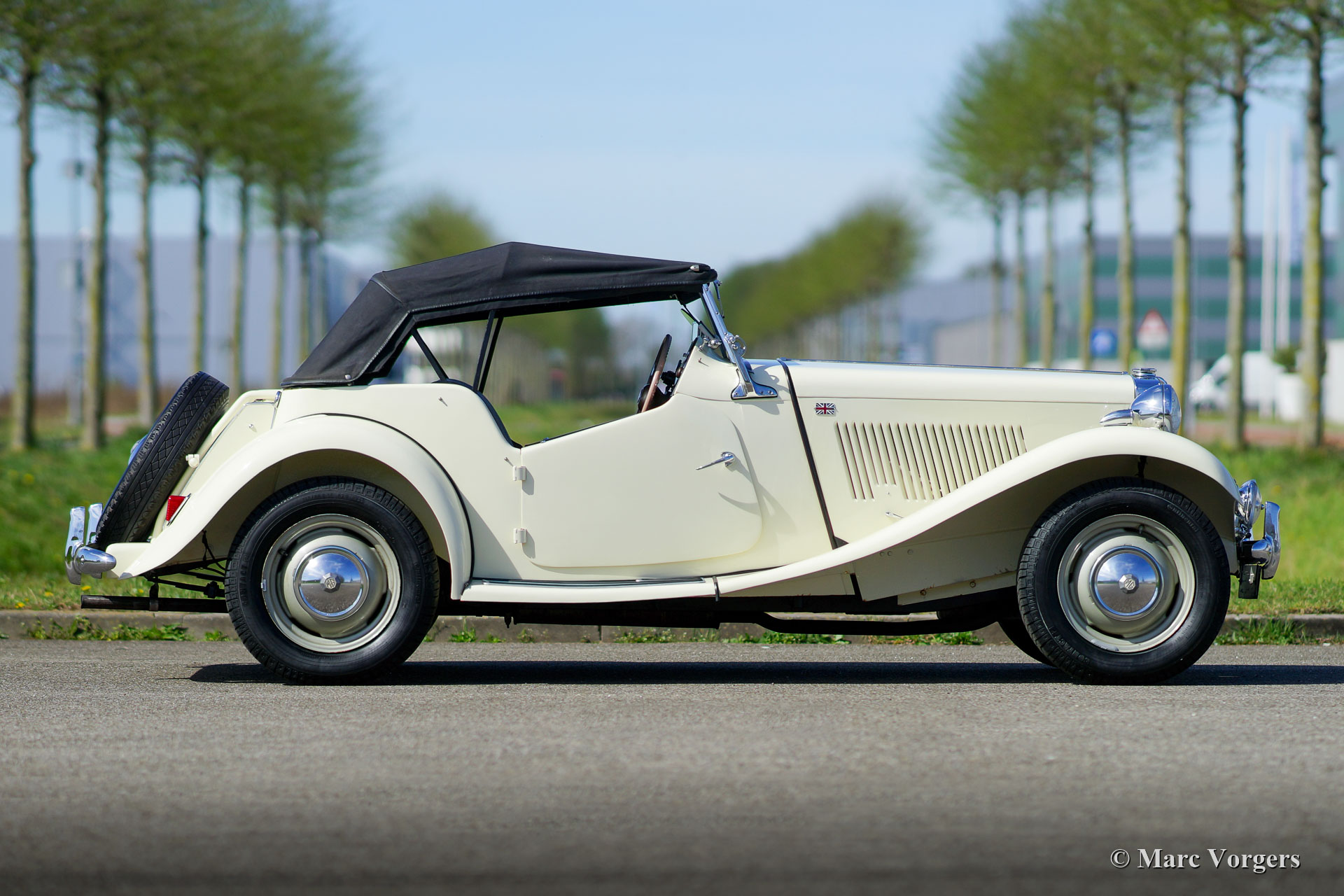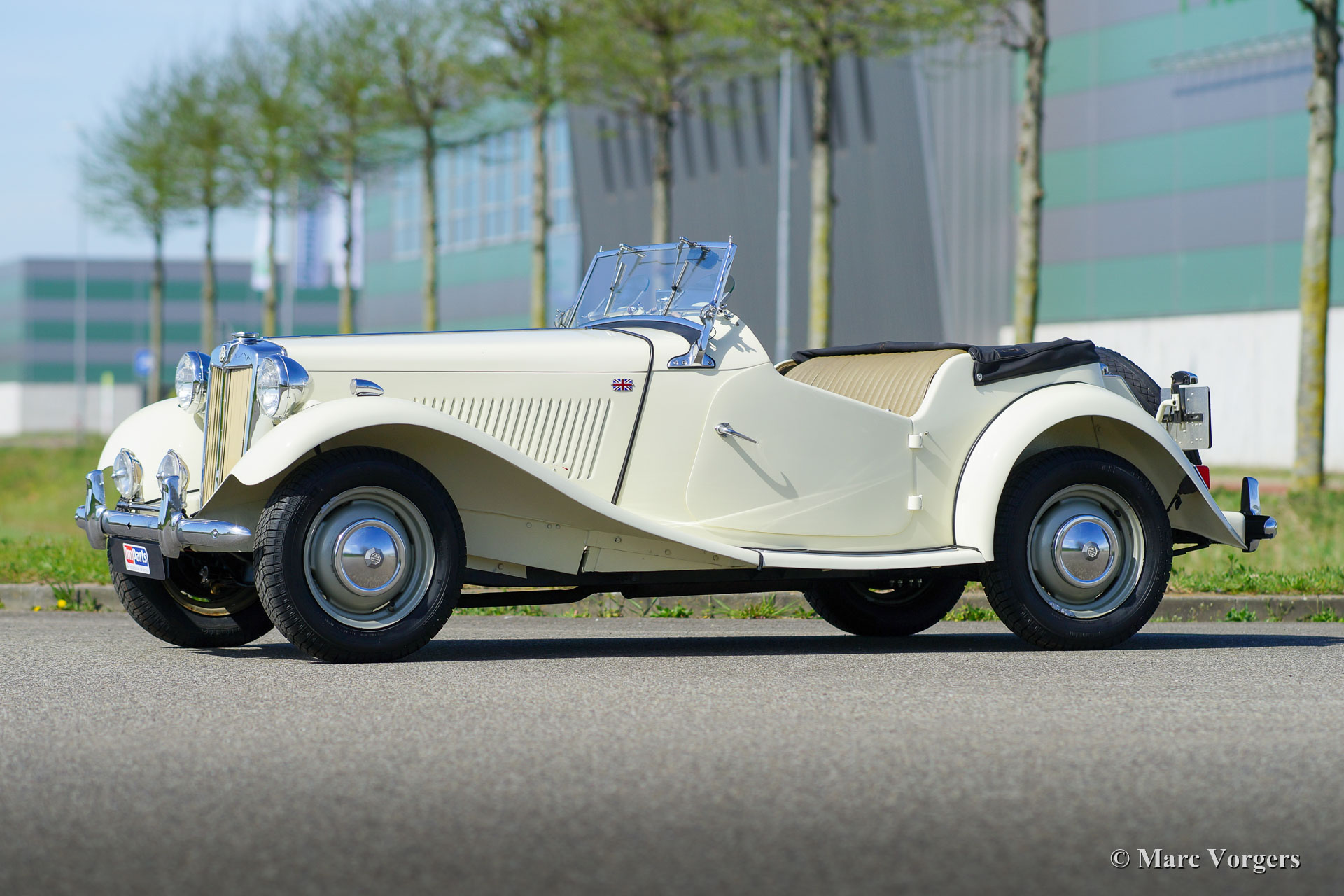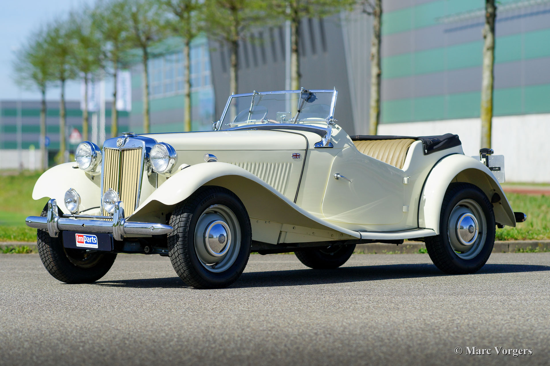 The MG TD was the successor of the MG TC, the British sports car that stole the hearts of the American soldiers returning to their country. Like the MG TC, America was the most important market for the TD. Chassis and body of the TD were largely similar to the TC. But the TD had a rack and pinion steering-gear, coil springs (instead of the leaf springs) and an independent wheel suspension in the front. The wings were different in form, as the large 19-inch wire wheels in the TD gave way to 15-inch wheels. A Mk II version was introduced in 1950, and was built simultaneously with the Mk I. The Mk II had a more powerful engine and a "power bulge" on the engine valve on the right. The MG TD was in production until 1953 and was replaced by the MG TF.