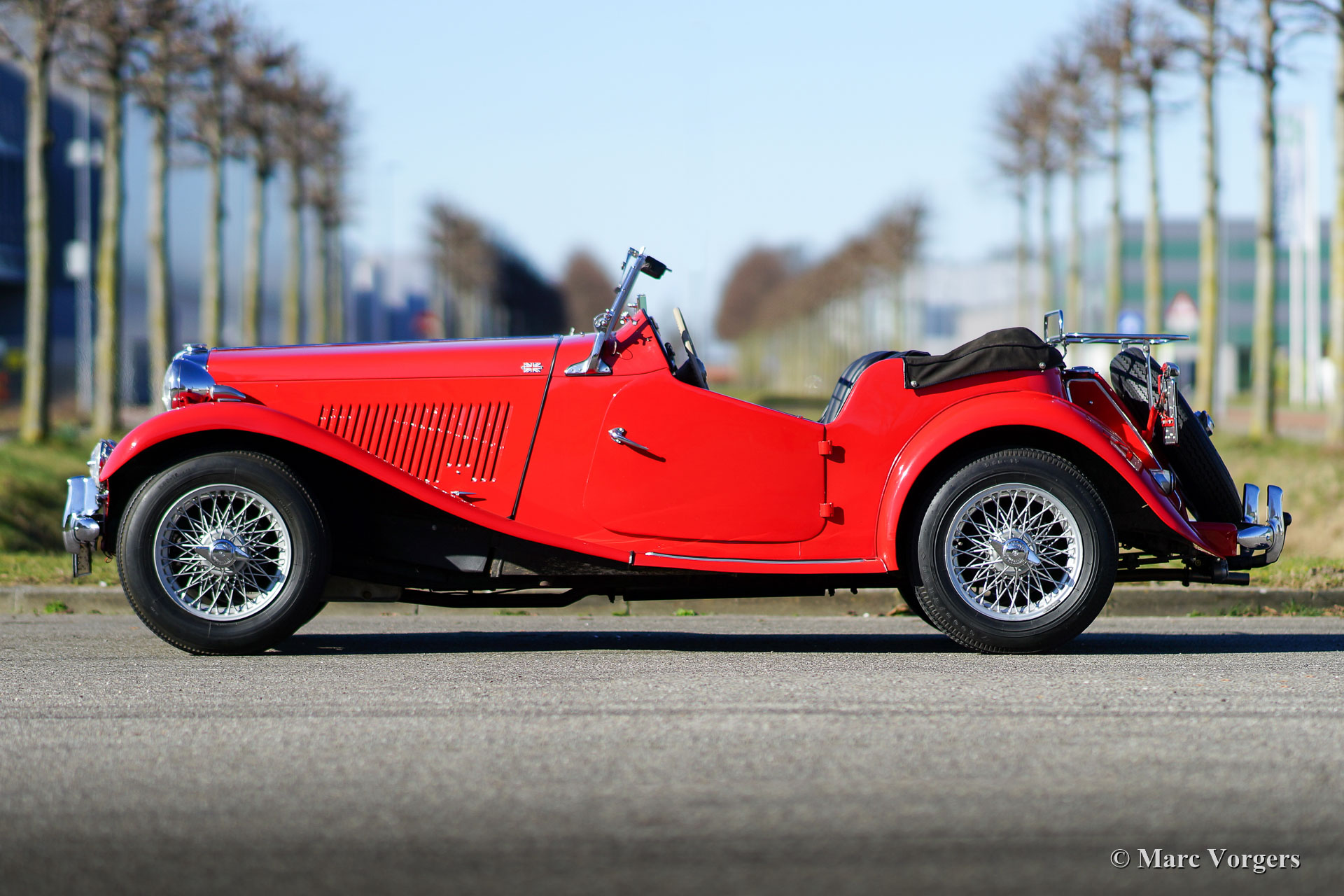 The MG TD was the successor of the MG TC, the British sports car that stole the hearts of the American soldiers returning to their country. Like the MG TC, America was the most important market for the TD. Chassis and body of the TD were largely similar to the TC. But the TD had a rack and pinion steering-gear, coil springs (instead of the leaf springs) and an independent wheel suspension in the front. The wings were different in form, as the large 19-inch wire wheels in the TD gave way to 15-inch wheels. A Mk II version was introduced in 1950, and was built simultaneously with the Mk I. The Mk II had a more powerful engine and a "power bulge" on the engine valve on the right. The MG TD was in production until 1953 and was replaced by the MG TF.