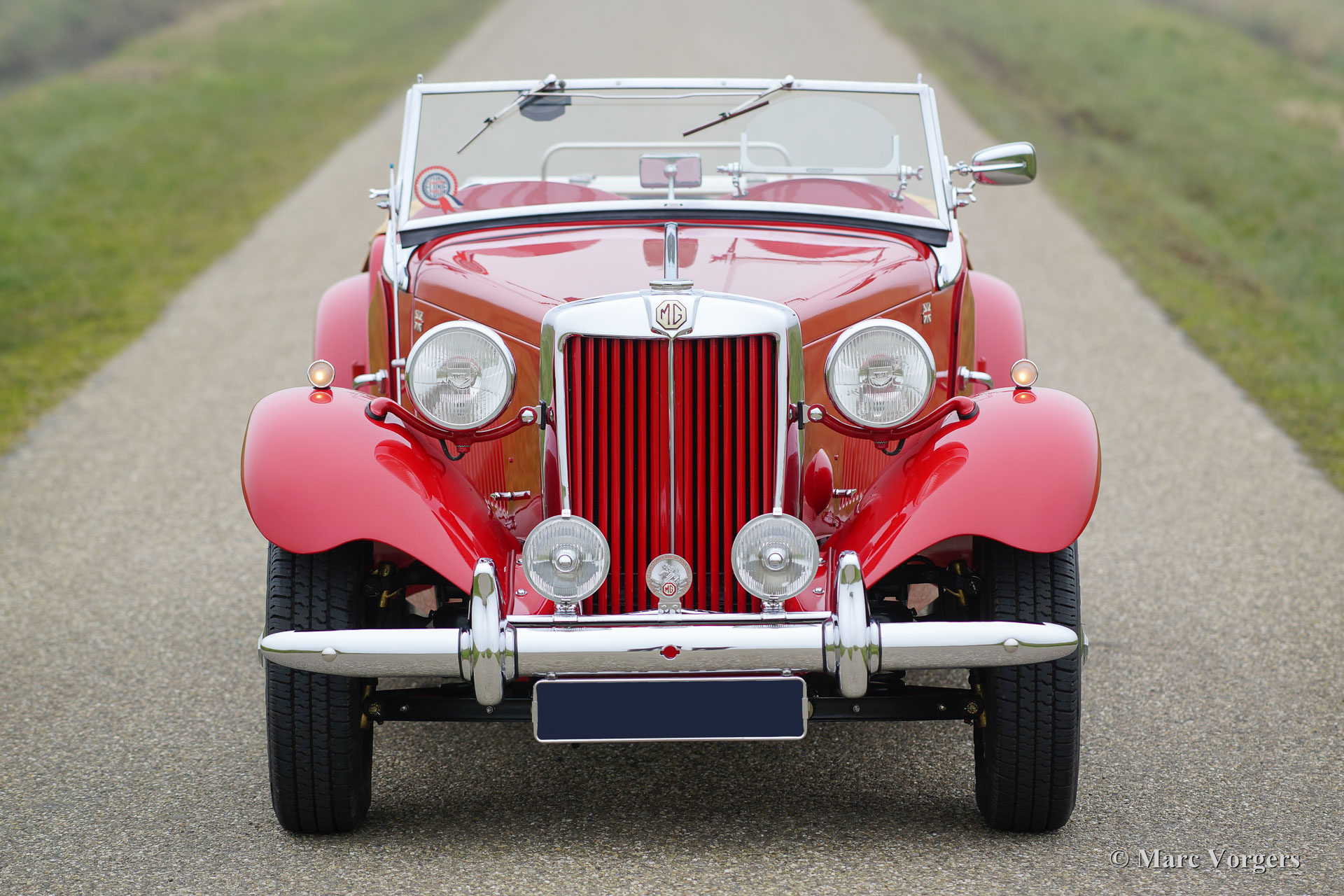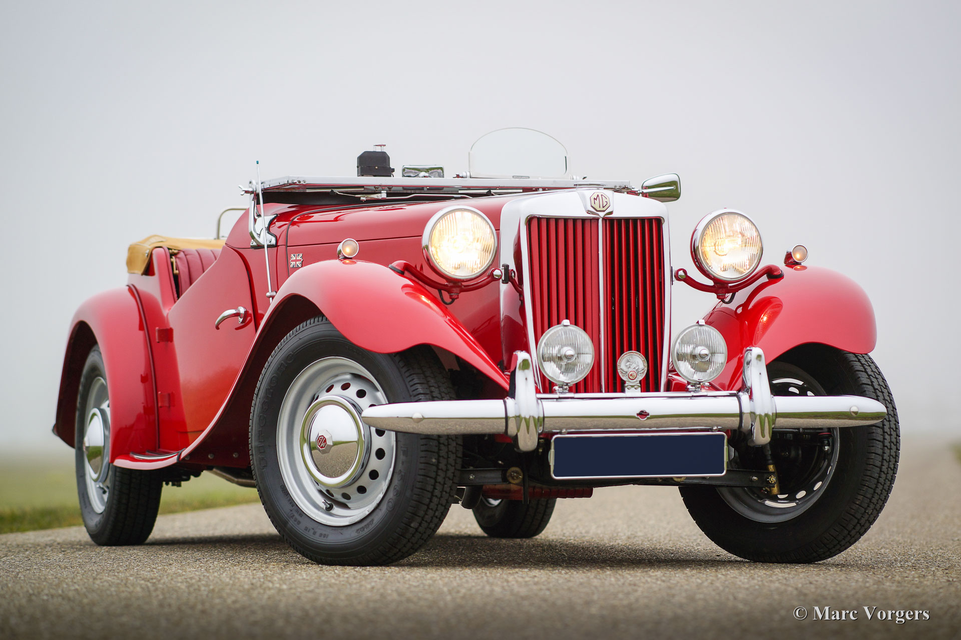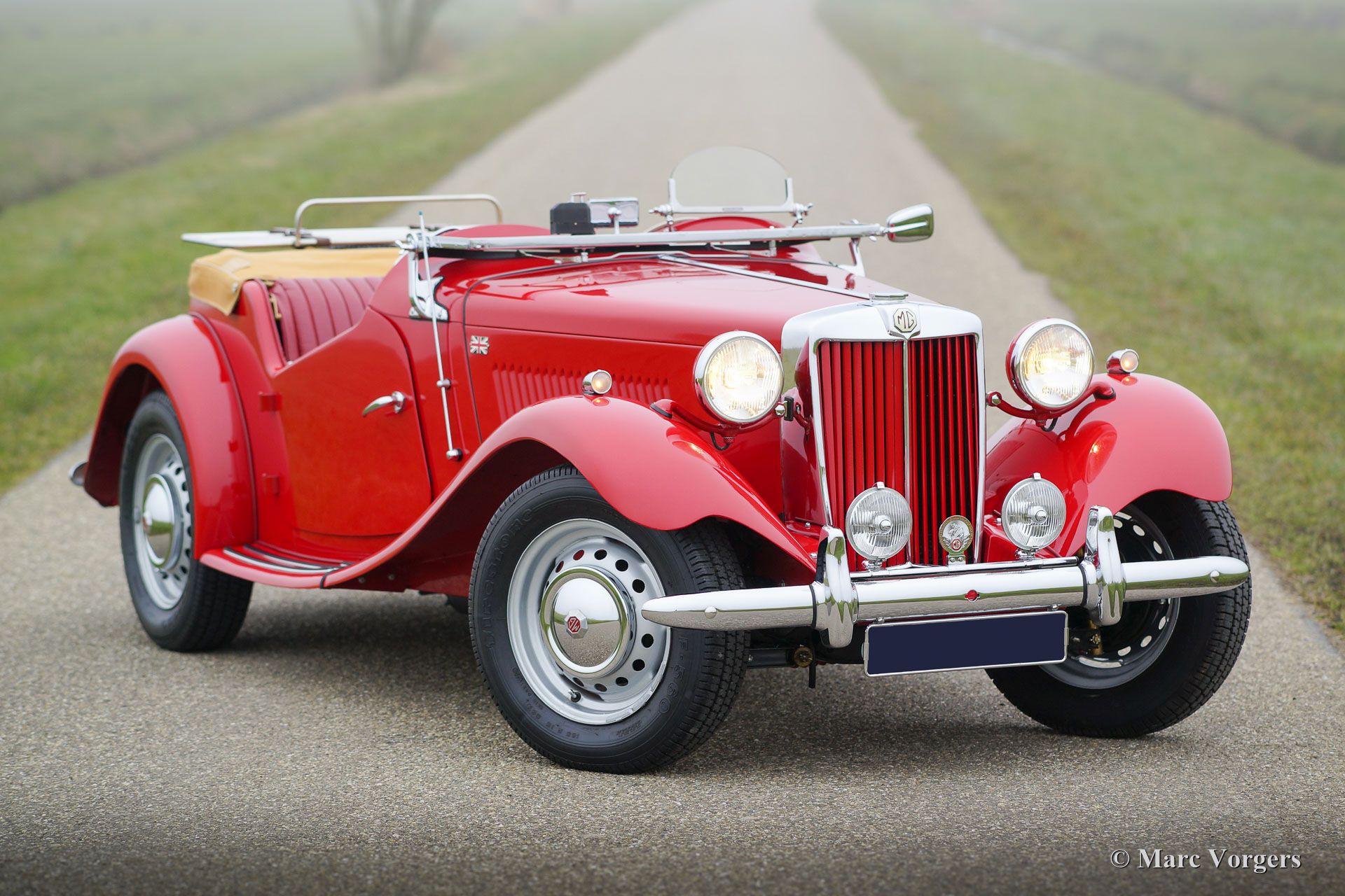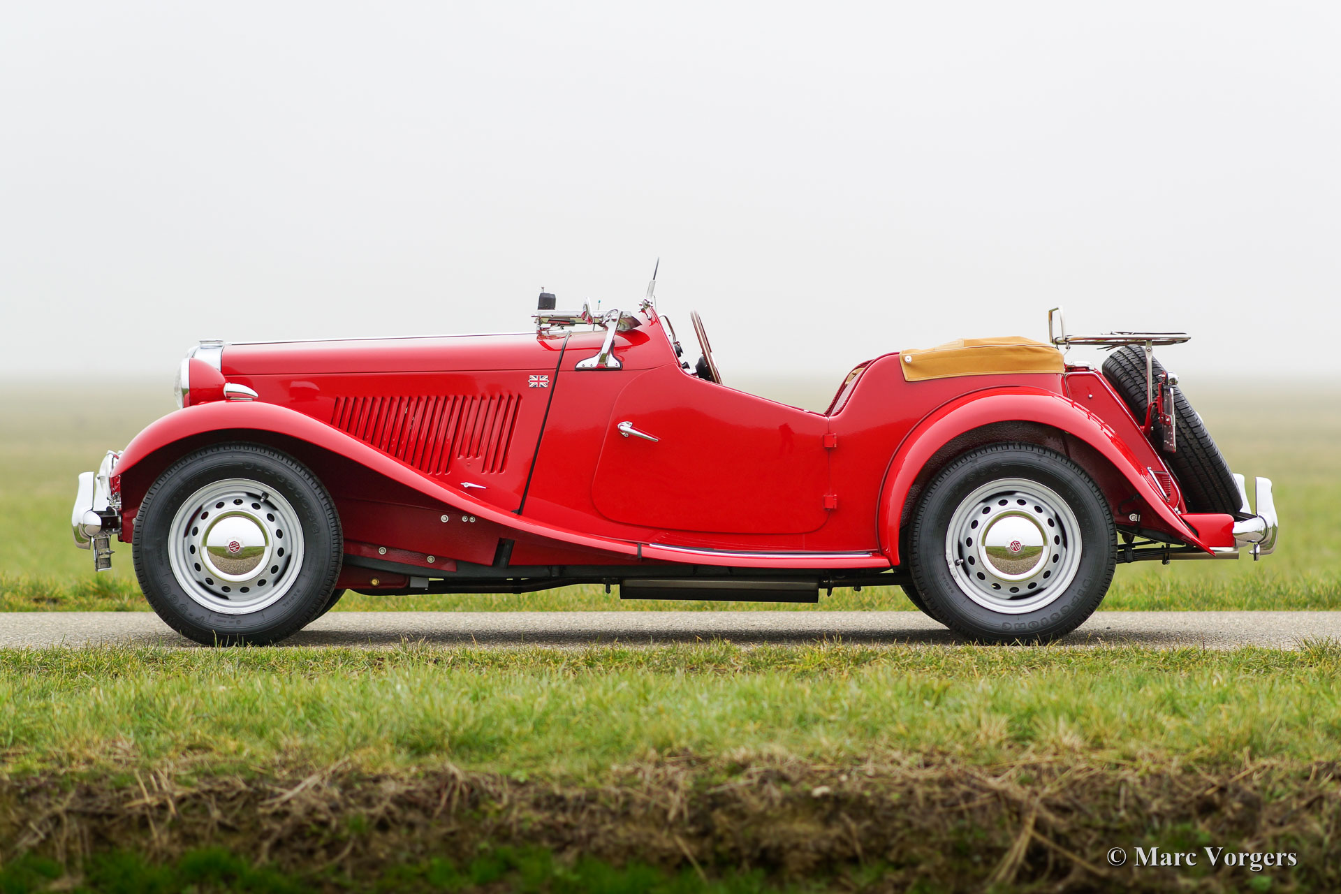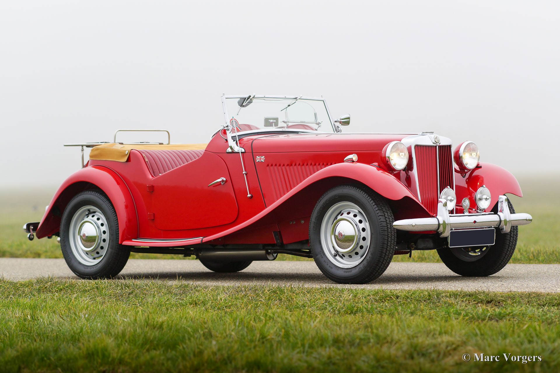 The MG TD was the successor of the MG TC, the British sports car that stole the hearts of the American soldiers returning to their country. Like the MG TC, America was the most important market for the TD. Chassis and body of the TD were largely similar to the TC. But the TD had a rack and pinion steering-gear, coil springs (instead of the leaf springs) and an independent wheel suspension in the front. The wings were different in form, as the large 19-inch wire wheels in the TD gave way to 15-inch wheels. A Mk II version was introduced in 1950, and was built simultaneously with the Mk I. The Mk II had a more powerful engine and a "power bulge" on the engine valve on the right. The MG TD was in production until 1953 and was replaced by the MG TF.