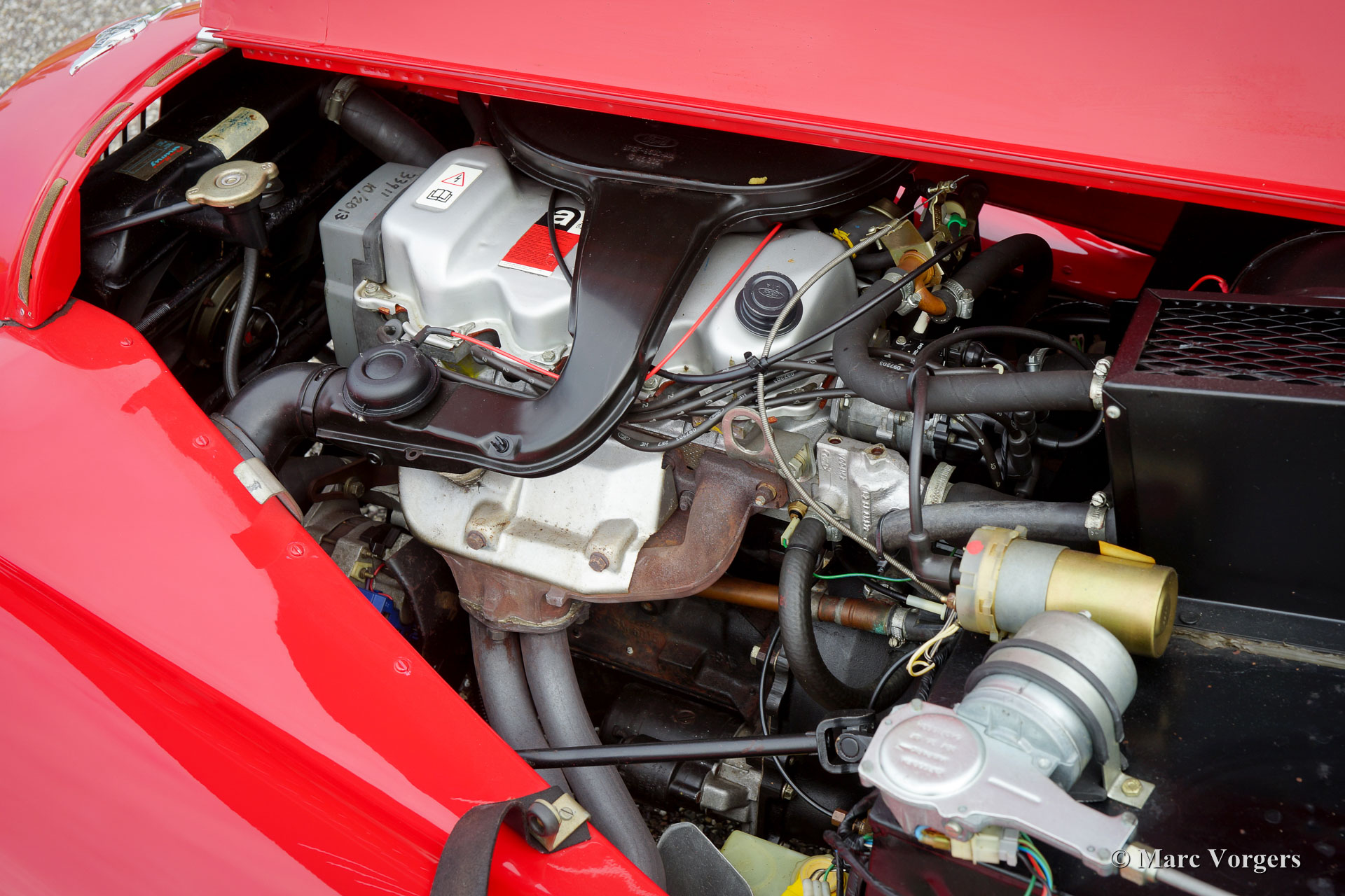 The Morgan 4/4 was built for over 50 years. The first model, introduced in the year 1936 was the 4/4 with flat radiator which was built until the year 1951. After a four year break (only the Morgan plus 4 was built those years) the Morgan 4/4 was going to be rebuild. The car did not change a lot (conservative as they are at the Morgan company), only the shape of the radiator changed from flat to cowled. Morgan never built their own engine, the early flat radiator cars were powered by Standard or Ford engines. The cowled radiator models were powered by Ford engines. The Ford engine used was known as the "Kent" engine and was also used in Fords Cortina model. Morgan 4/4 1600 cars were powered by the 1599 cc. Ford Kent engine which had a standard capacity of 98 bhp. giving the light car (two seater 660 kg./ four seater 785 kg.) sporty performance. The cars were fitted with a four speed manual gearbox. The modern Morgan 4/4 models are powered by a Ford Zetec 16V engine. These cars feature petrol injection and a five speed manual gearbox. The Morgan 4/4 is a very special car to drive because it has it's own strong character. It cannot be compared with any other roadster or convertible.