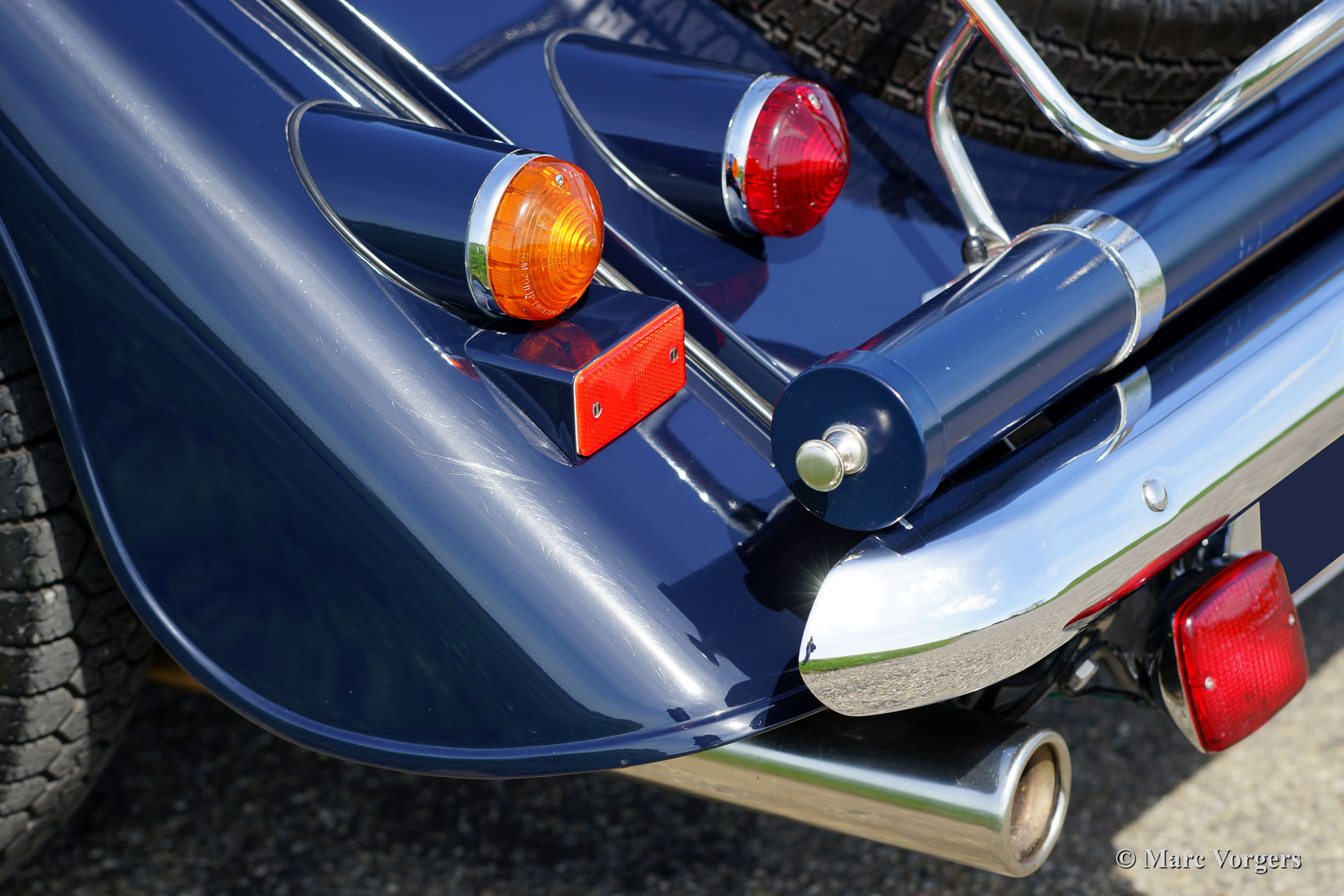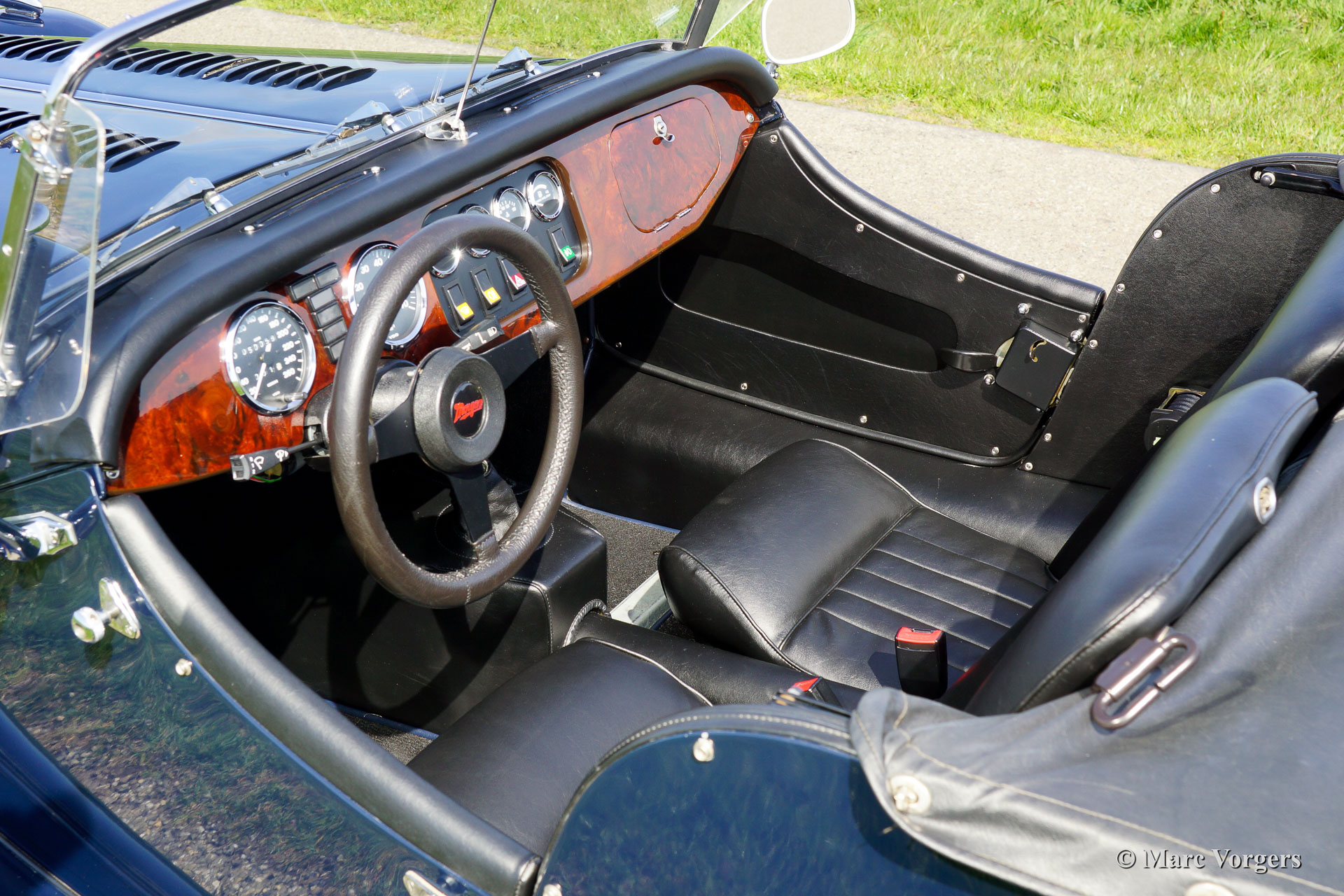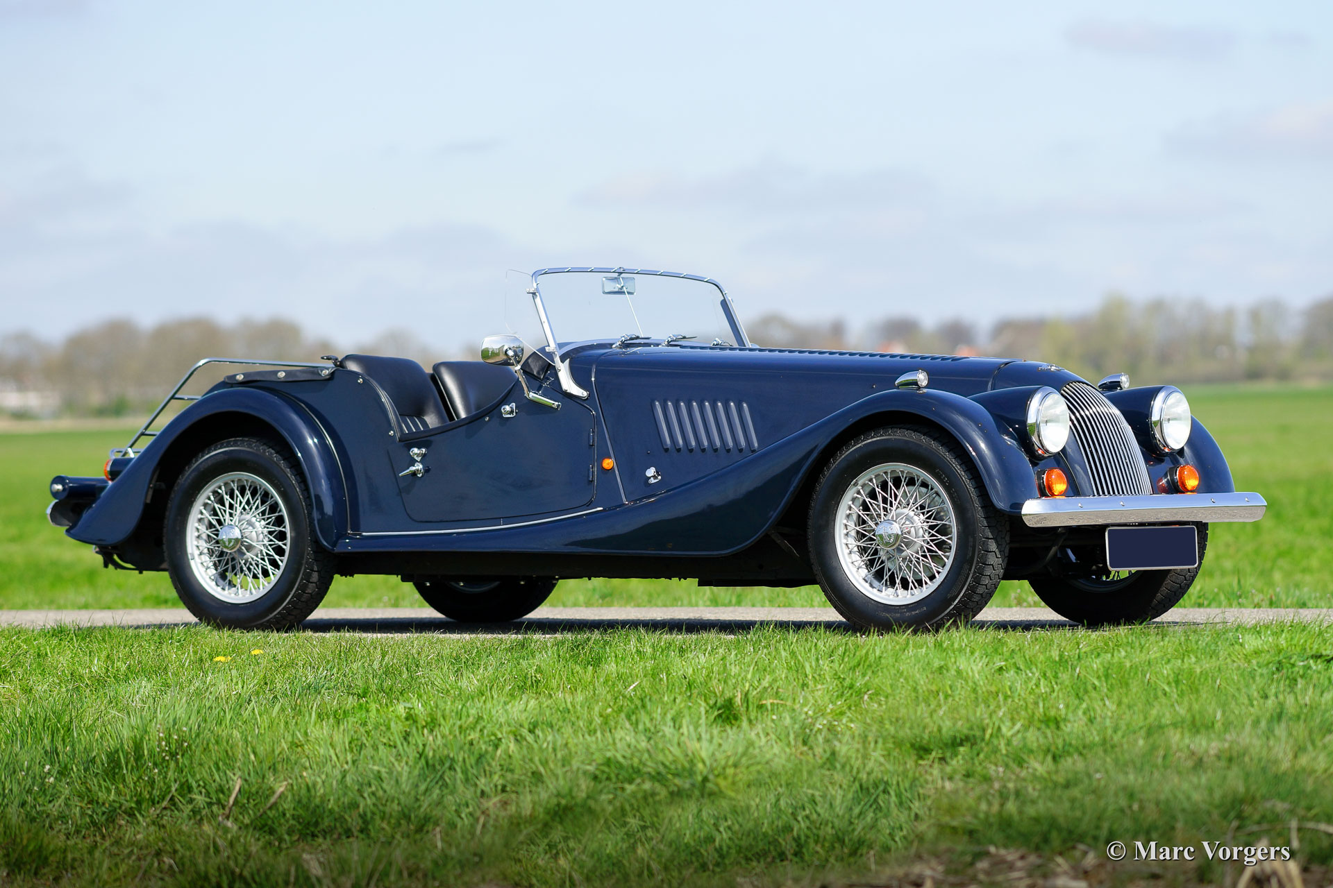 Morgan 4/4 1800, year 1996. Colour dark blue. Black leather interior with black carpet. Black soft top and tonneau cover, aluminium side screens. This Morgan 4/4 was sold new in the Netherlands and the car comes from the second owner. From new the car has driven 50.050 km. The automobile is in excellent original condition. This fine Morgan is fitted with a 5-speed gearbox, chrome wire wheels, Vredestein Classic Sprint tyres, a chrome luggage rack, a walnut dashboard, umbrella storage and a Stainless Steel exhaust. The car comes complete with the original service booklet.