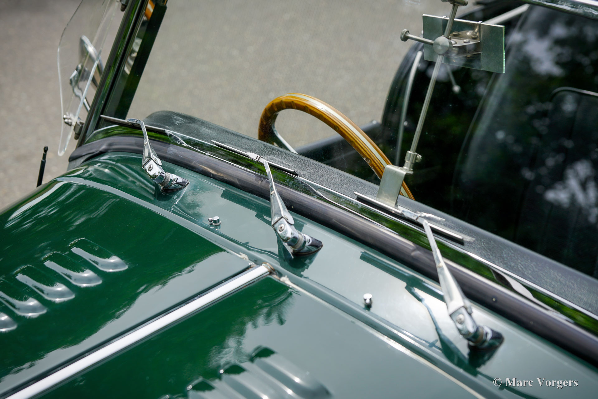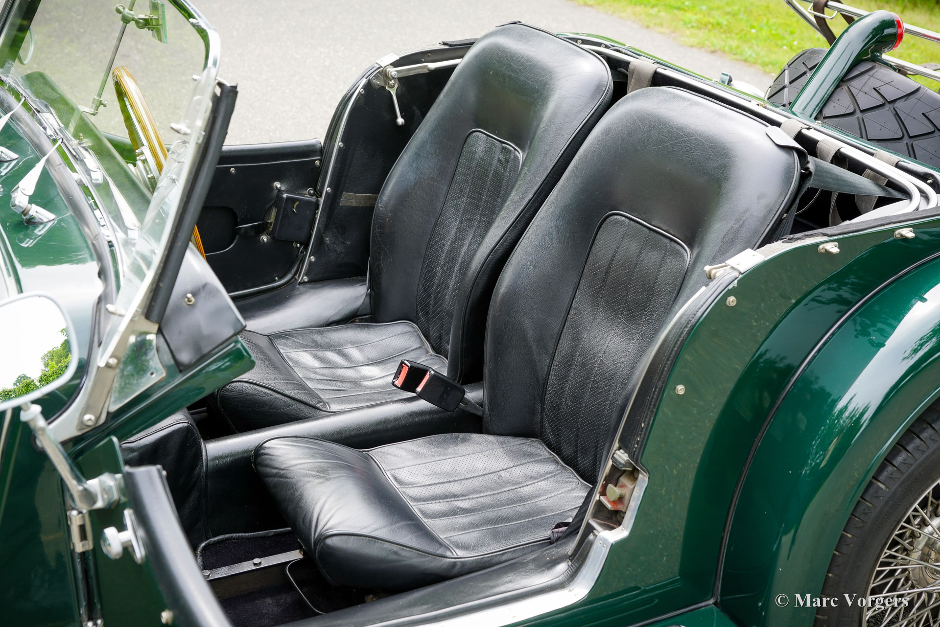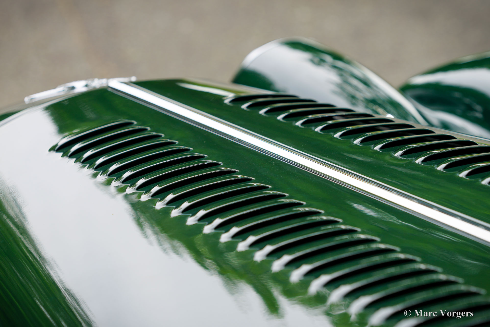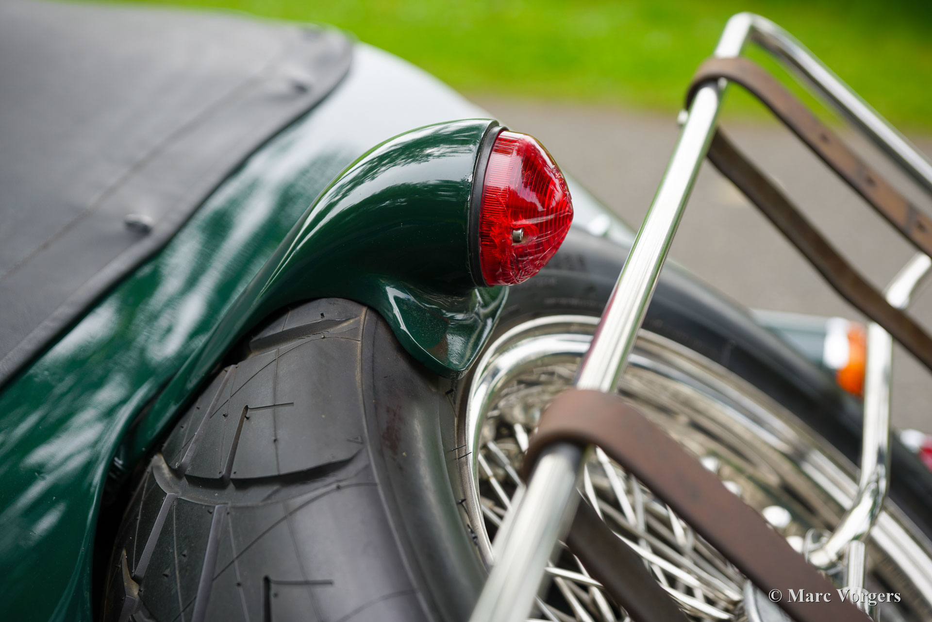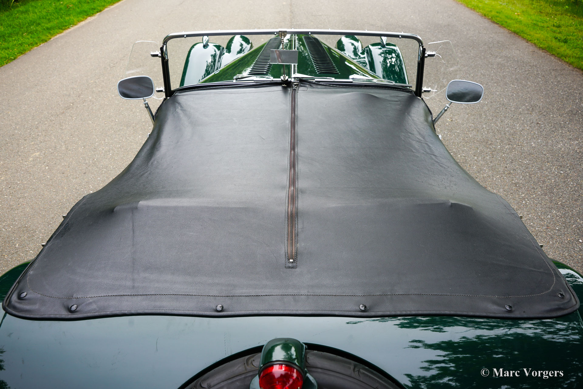 Morgan 4/4 Le Mans 62 Edition, year 2002. Colour British Racing Green combined with a black interior (black leather seats) and a black vinyl soft top. This special Le Mans 62 version comes complete with a hard top in the colour Old English White. The Morgan 4/4 Le Mans 62 is a limited edition of 80 examples, based on the Morgan Plus 4 Super Sport that won the 2-litre Grand Tourer class at the 24 Hours of Le Mans in 1962 with Christopher Lawrence and Richard Shepherd-Baron sharing the driving duties. The Le Mans-winning Morgan is renowned by its registration number TOK258. Of the 80 ‘40th Anniversary Edition LM62’ cars built in 2002, 40 were delivered in the 4/4 format; this car is the penultimate, bearing the number 79 in the limited series. The number is displayed on the vertical spoke of the steering wheel and on the framed certificate accompanying the car. This Morgan 4/4 is fitted with the strong and reliable Ford 1800 cc twin-cam engine and a five-speed gearbox. The engine produces 114 horsepower. With a low curb weight of only 1025 kg, a low centre of gravity, wide wheels and tyres, and an excellent chassis, this Morgan offers sublime handling; the car is extremely sporty to drive. Its current mileage is 79,880 miles. Over the past 23 years, this Morgan has had four English owners, one Belgian, and one Dutch owner (since 2011). We sold the car in 2011 to the current owner when the odometer read 38,000 miles. The service history has been documented since 2002 with various inspection reports and invoices. Features of the Le Mans 62 Edition include the special petrol filler cap, unique dashboard instruments, a bespoke Le Mans 62 steering wheel, and a chrome logo on the rear. Additionally, the special exhaust, lowered ride height, and short gear lever are exclusive to this Morgan 4/4. The wide stainless-steel spoked wheels (6J x 16”) fitted with Michelin 205/55 R16 tyres give this Morgan an extra sporty appearance and excellent grip on the road. The driving experience of this brisk Morgan Le Mans 62 is simply fantastic!