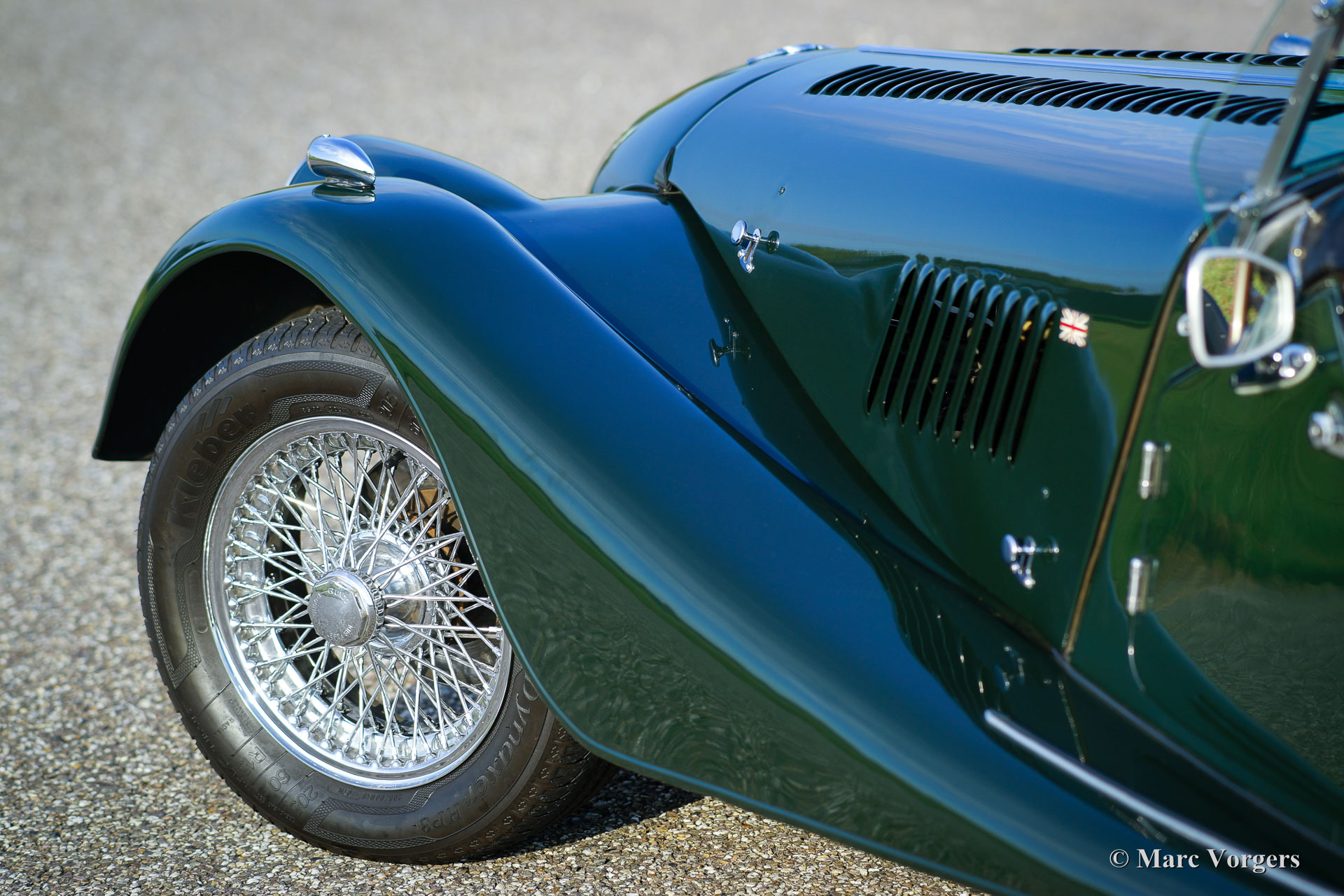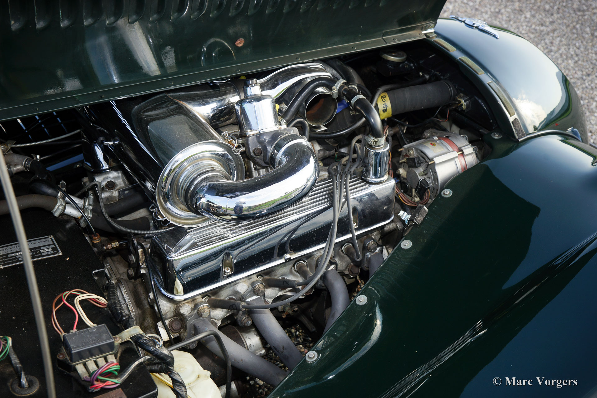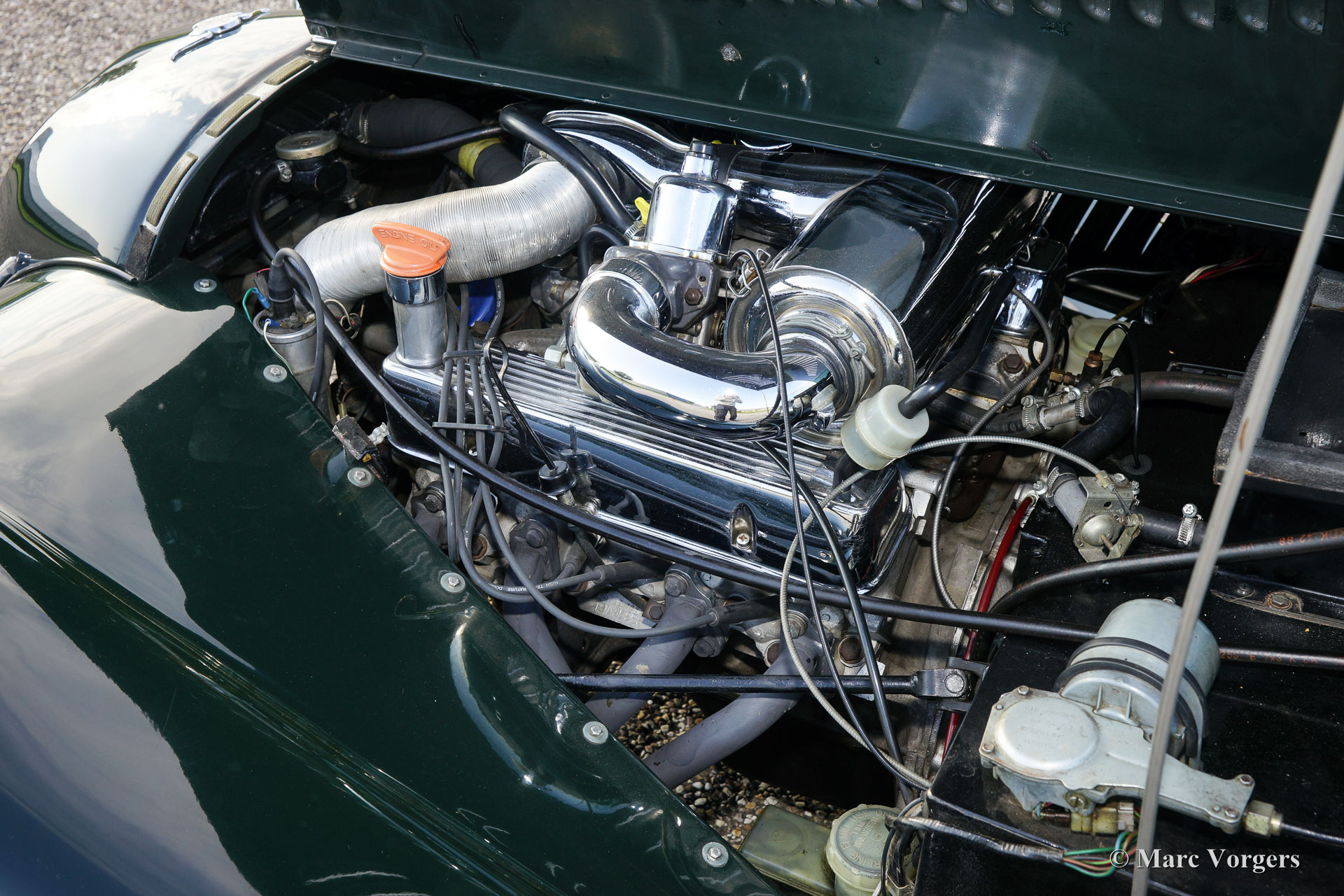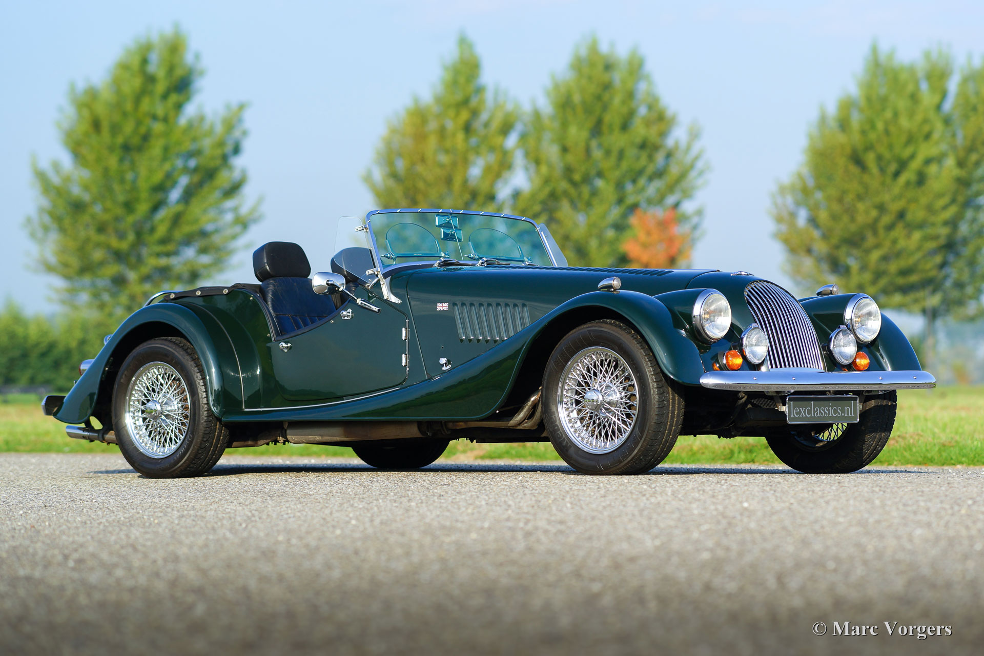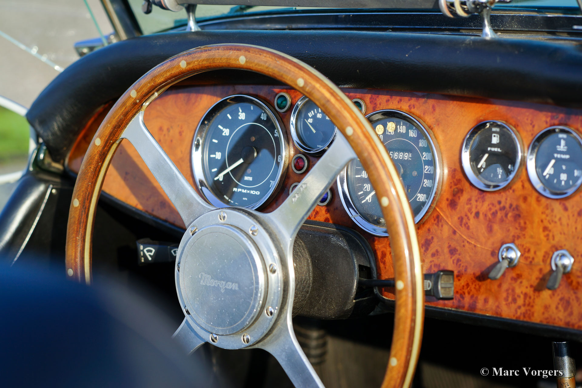 Morgan +8, year 1981. Colour British Racing Green with a black leather interior. This fantastic Morgan +8 was sold new in the Netherlands. The car comes from a Dutch owner who has cherished the car for many years. The Morgan is perfectly serviced and maintained, the car is in very good to excellent condition with a good interior showing signs of use. This Morgan +8 is a sought after early carburettor model fitted with the 3.5 Litre Rover V8 engine. The driving experience of the Morgan +8 is unique; the car feels and drives like a big ‘go-kart’; sporty and blessed with enormous acceleration power. The sound-track of the engine is splendid; the powerful pulses can be felt melting together with all the other impressions of speed. On the other hand, the Morgan +8 can be driven lazily and in comfort over long distances with the sonorous V8 rumble in the background. This fine Morgan features a walnut dashboard, a chrome baggage-rack, side-curtains, a MotoLita steering wheel, a Mohair tonneau-cover, 12V socket, Brooklands racing screens, a badge-bar with additional spot-lamps, safety belts, head-rests and a Stainless-Steel exhaust. This is a formidable Morgan +8!