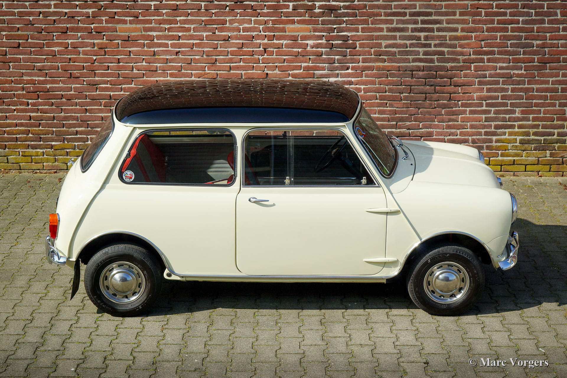 Morris Mini Cooper 1000 Mk I, year 1962. Colour crème white combined with a black roof top. Matching numbers and colours, a Heritage document is present to confirm this. This gorgeous Mini Cooper 1000 was sold new in Sweden, the original Swedish documents are still present as are all the original booklets and brochure! This early Mini Cooper 1000 was recently acquired from the first owner. The car is in an exceptionally good and super original condition! The bodywork was repainted in the past; all the original spot-welds are still visible and the panel fit is excellent. The interior is fully original showing all the original details and slight traces of use and age. This fantastic Mini Cooper has driven only 34.000 kilometres from new and the ‘under bonnet appearance’ beautifully clean. This rare Mini Cooper Mk I is fitted with the original 10 inch disc wheels fitted with hub caps and 145/80 Falken tyres and original BMC mud-flaps at the rear. This is a very hard to find super original Morris Mini Cooper 1000 Mk I for the true enthusiast / collector!