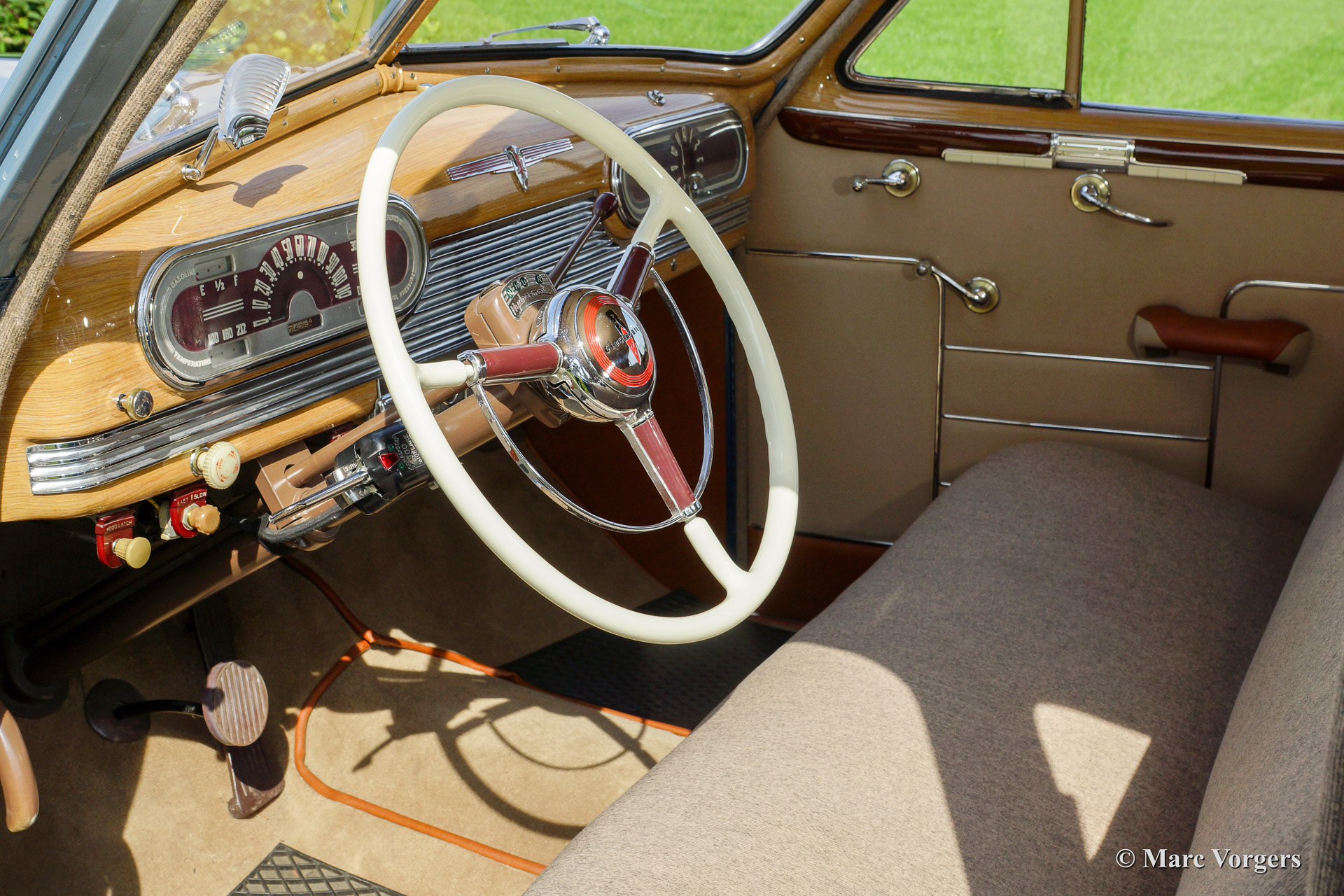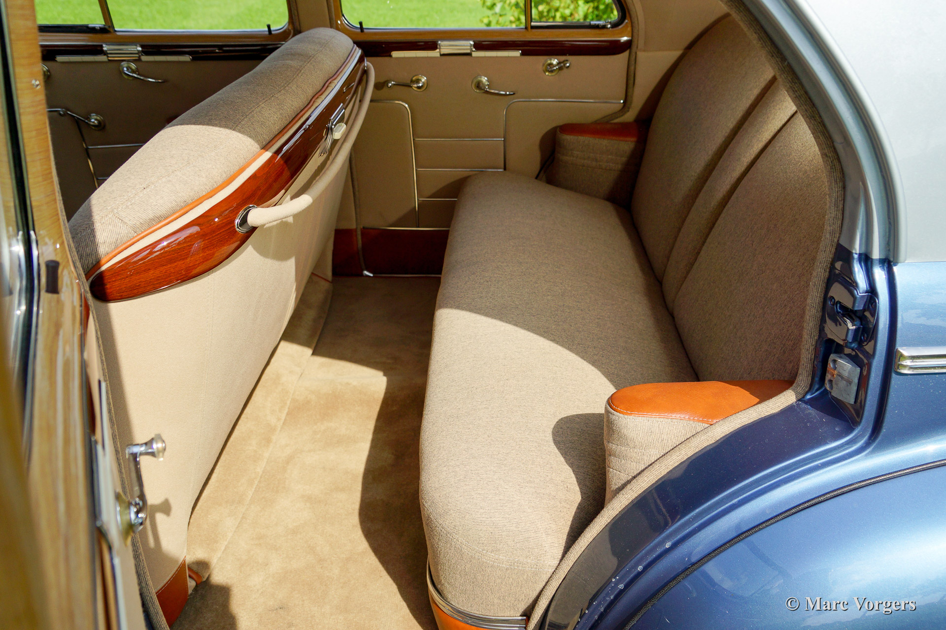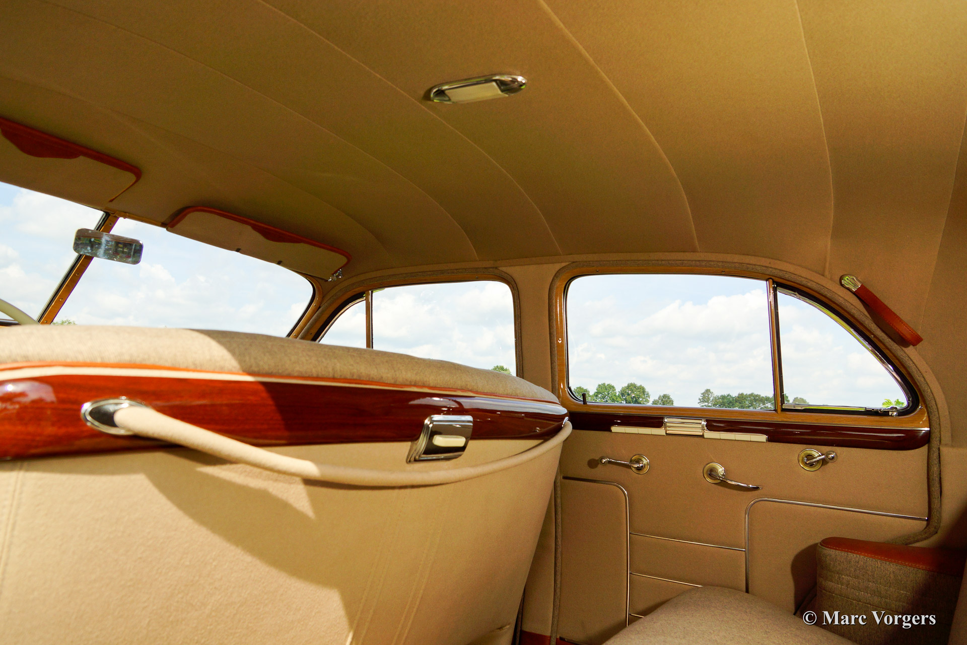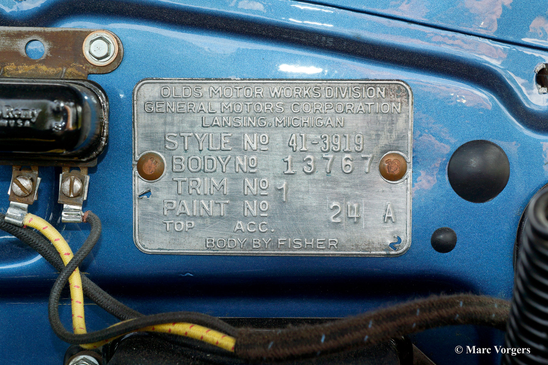 Oldsmobile 98 De Luxe, year 1941. Colour two-tone, blue metallic with a silver roof top, and a beige interior. This magnificent Oldsmobile 98 De Luxe four door sedan from the first series has been restored to perfection. Costs nor effort were spared to bring this impressive automobile to concourse (show) condition! The history is known from new as the car was delivered to the Shorts family in Ravenna, Ohio, USA. The automobile comes beautifully documented and complete with original booklets like the operation manual, workshop manuals, colour chart, body sheet, brochure, Hydra-Matic booklet etcetera. The car sports the delightful Hydra-Matic 4-speed(!) automatic gearbox, original crick, original AM radio and a telescopic aerial which can be operated from the interior! A magnificent automobile, a very smooth driver and a true collector item.