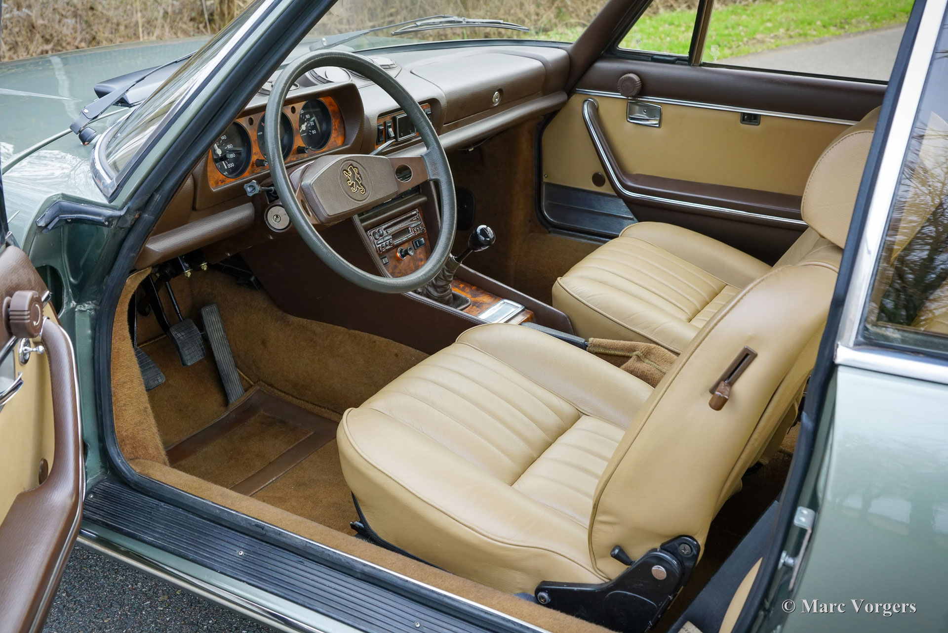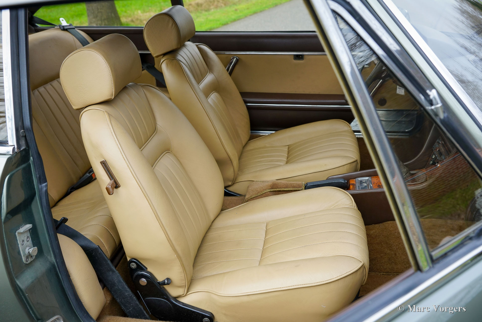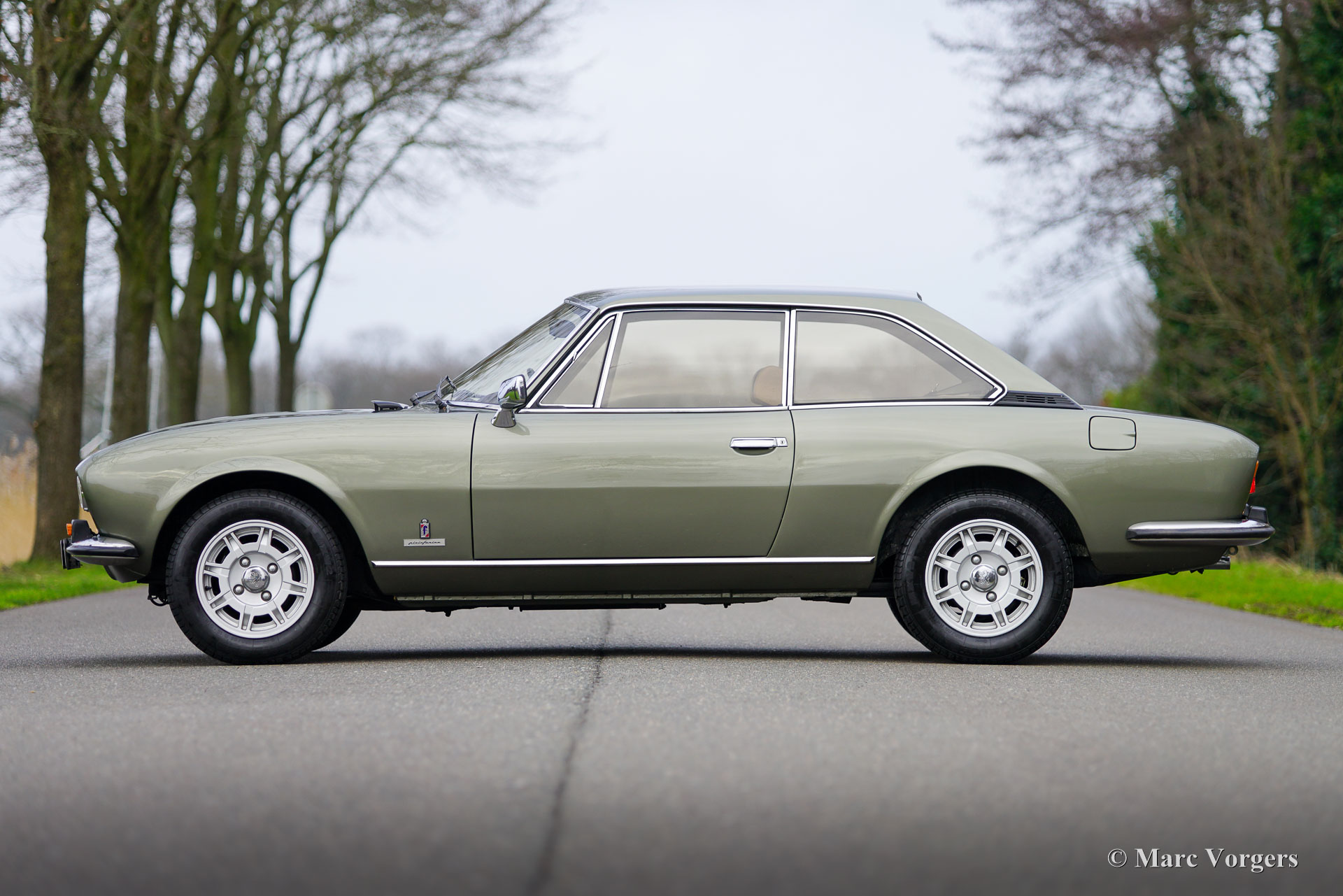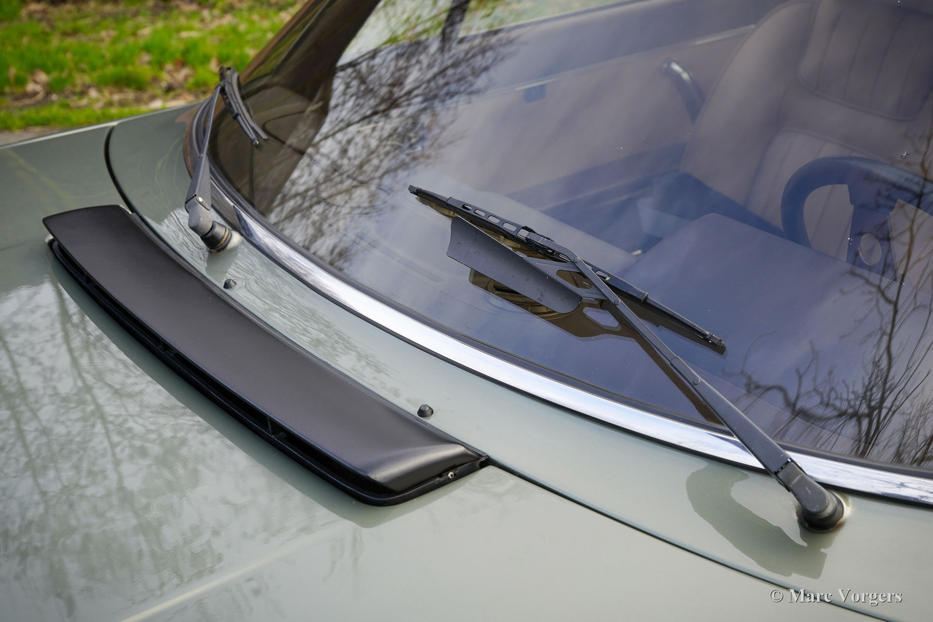 Peugeot 504 Coupé, year 1980. Colour light green metallic combined with a beige (tan) leather interior, trimmed with beige carpet, a brown dashboard and tan/ brown door trim. This beautiful Peugeot 504 Coupé was sold new in Austria. The car was repainted in the original colour a few years ago, and the injection system and the cylinder head of the engine were overhauled. The car features the reliable 1971 cc 103 bhp four-cylinder engine, which is mated to a 5-speed manually operated gearbox which drives the rear wheels. Photos of the overhaul works are present. This 504 Coupé features an exclusive leather interior, the original alloy wheels shod with Michelin tyres, and chrome bumpers of the earlier model.