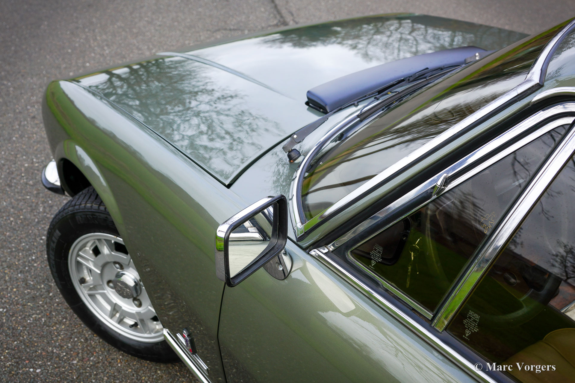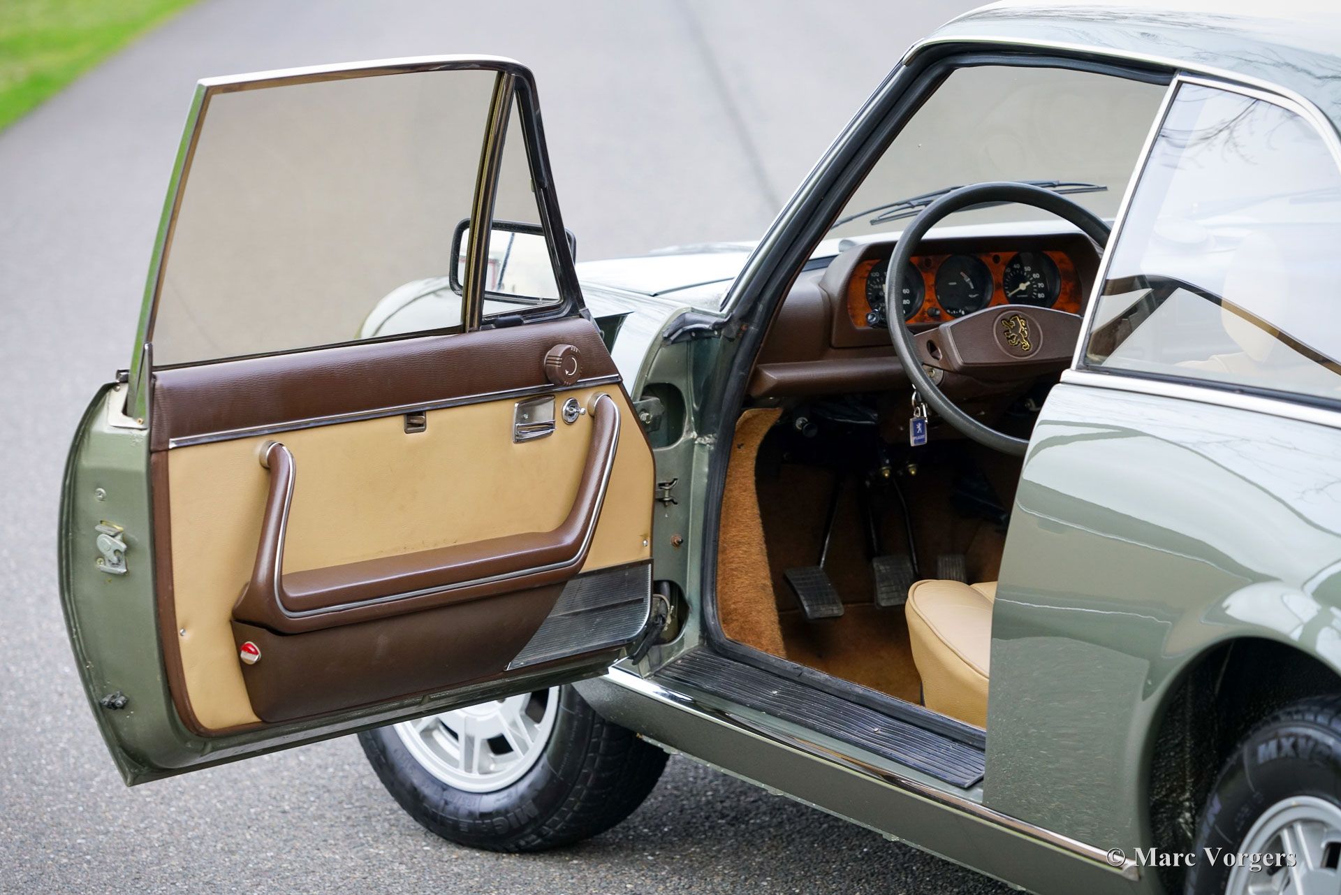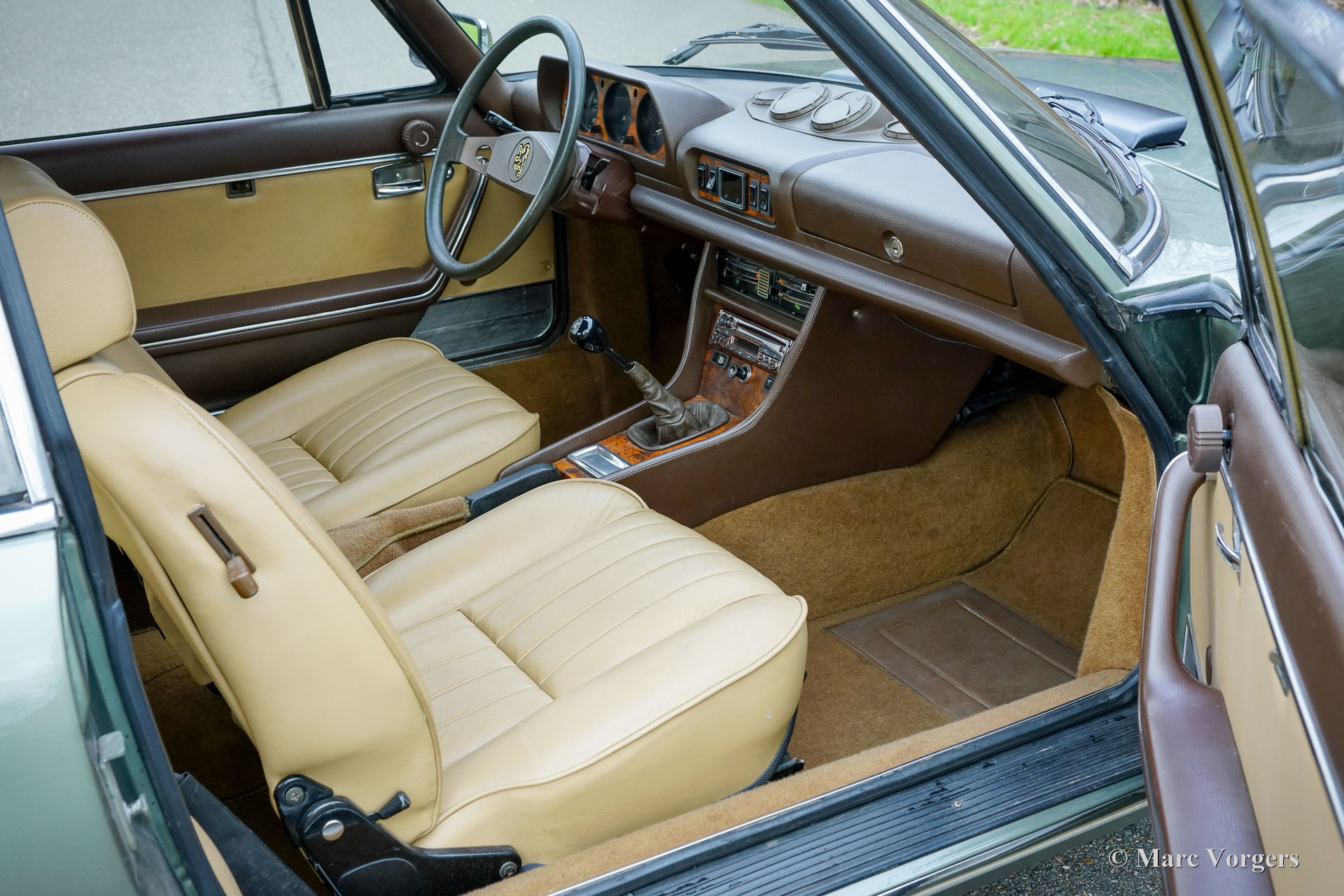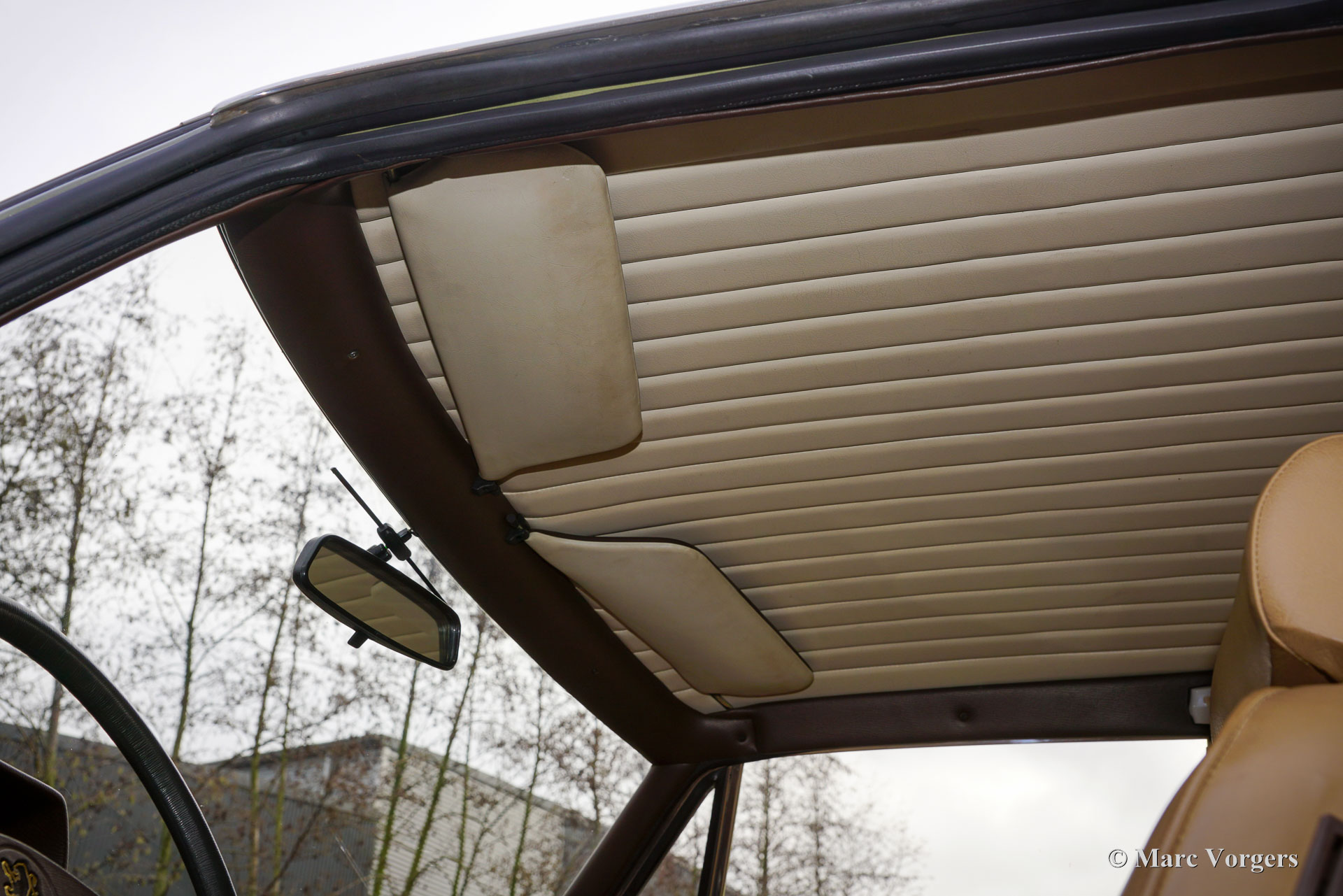 Peugeot 504 Coupé, year 1980. Colour light green metallic combined with a beige (tan) leather interior, trimmed with beige carpet, a brown dashboard and tan/ brown door trim. This beautiful Peugeot 504 Coupé was sold new in Austria. The car was repainted in the original colour a few years ago, and the injection system and the cylinder head of the engine were overhauled. The car features the reliable 1971 cc 103 bhp four-cylinder engine, which is mated to a 5-speed manually operated gearbox which drives the rear wheels. Photos of the overhaul works are present. This 504 Coupé features an exclusive leather interior, the original alloy wheels shod with Michelin tyres, and chrome bumpers of the earlier model.