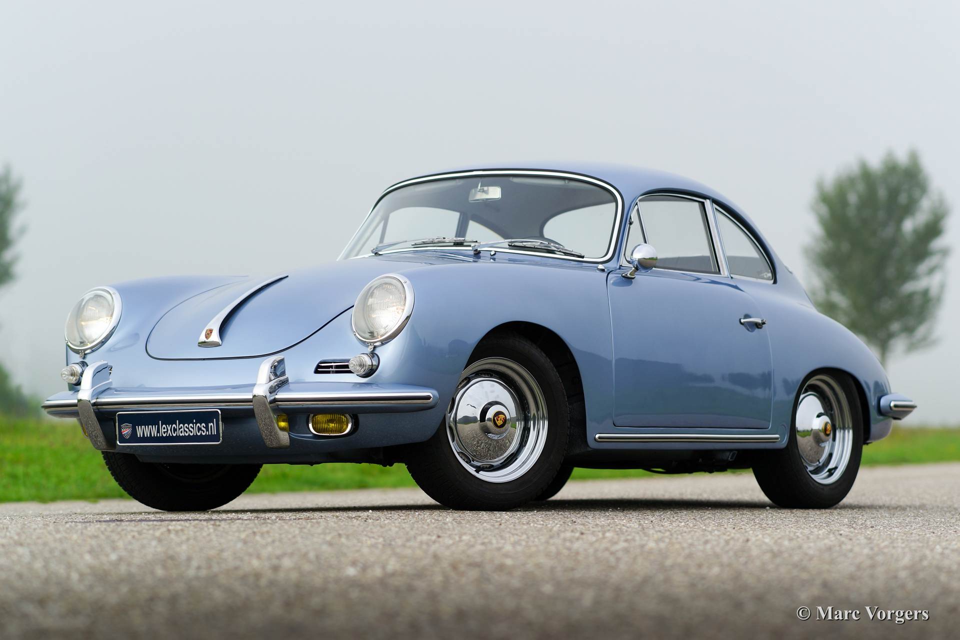 Porsche 356 B T6 coupe, year 1963. Colour pale blue metallic with a black interior. This beautiful Porsche 356 coupe was imported from the USA. In the year 2000 the automobile was extensively restored in Belgium. After the restoration the car has been part of a car collection. The car has been checked completely at the Lex Classic workshop, this 356 is in very good condition. This Porsche is currently road registered in Belgium.