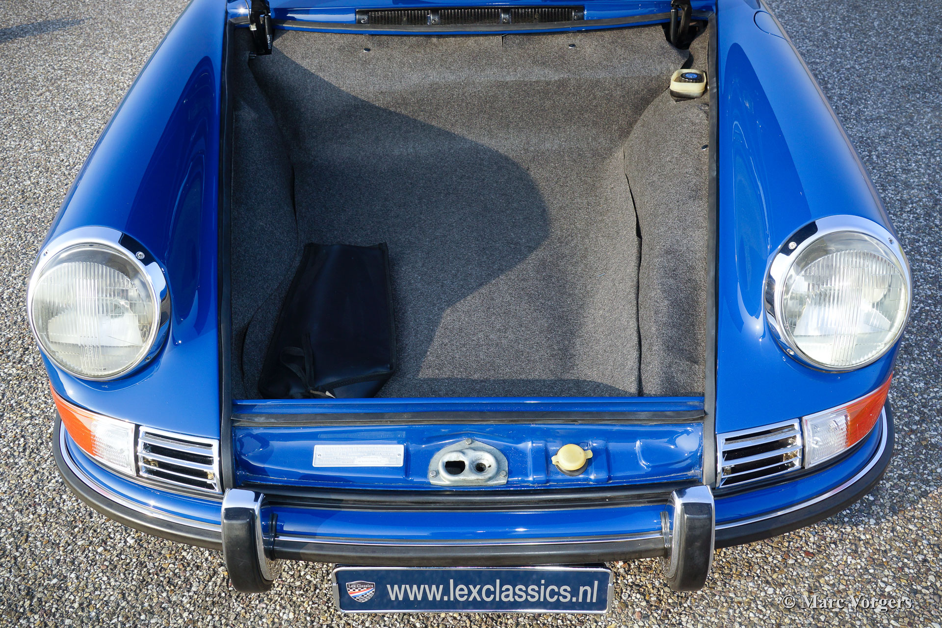 Porsche 911 2.0 S, year 1969. Colour blue with a black interior. This beautiful Porsche was extensively restored to original specifications in the year 2012. As many as possible was left original, the headlining and the carpet were cleaned and placed back. Of course many parts were renewed like the front lamp units, a rubbers, the seat upholstery and the dashboard finish. The underside of the car is in untouched original condition. The history of the car if fully documented.