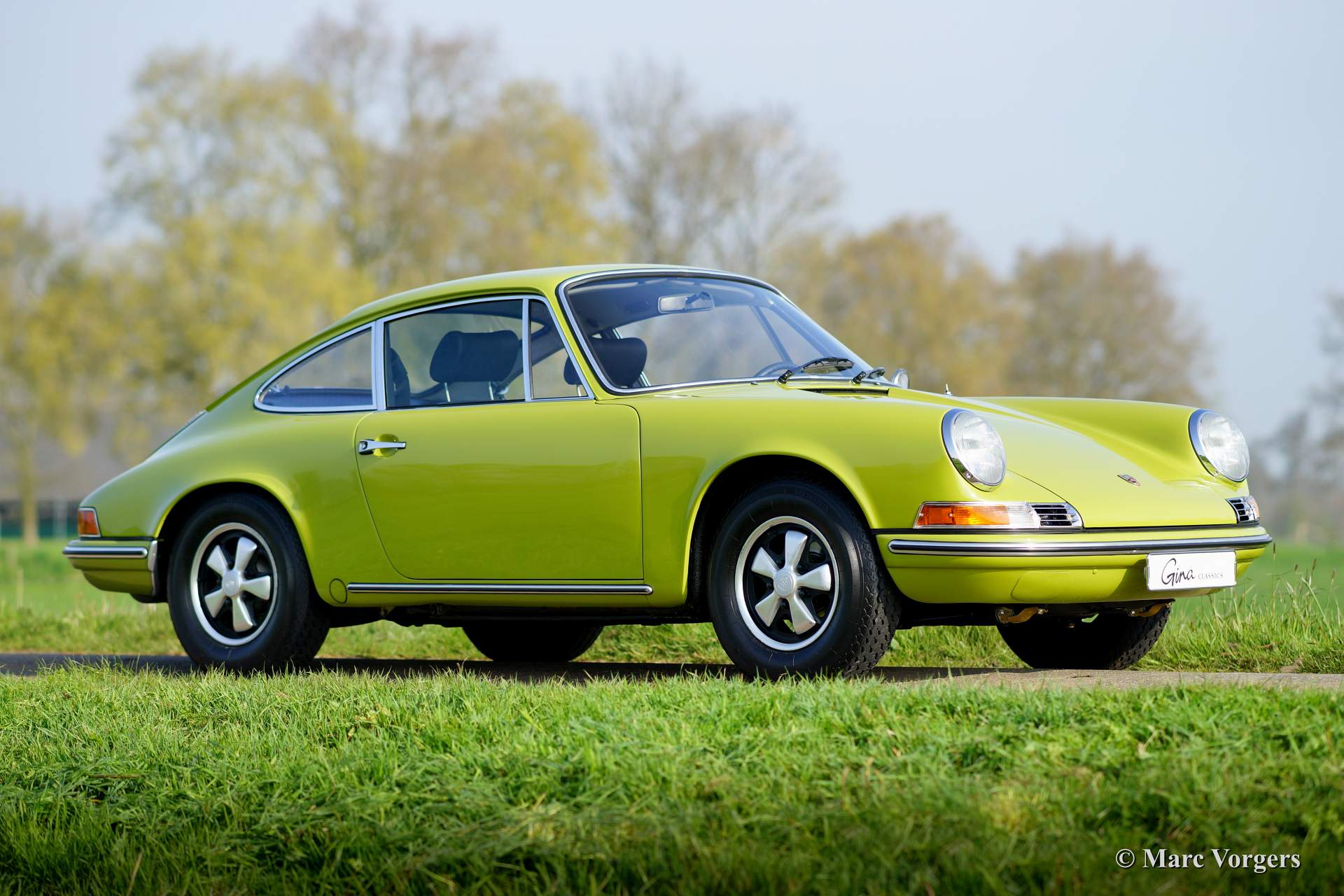 Porsche 911 2.0 T, year 1969. Colour Golden Green with a black leatherette interior.