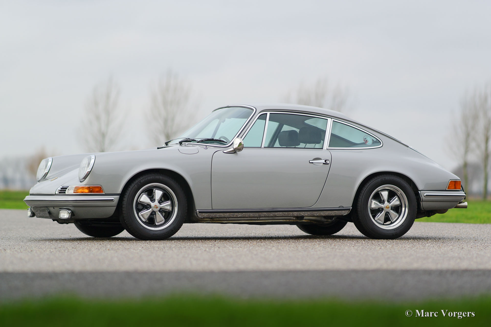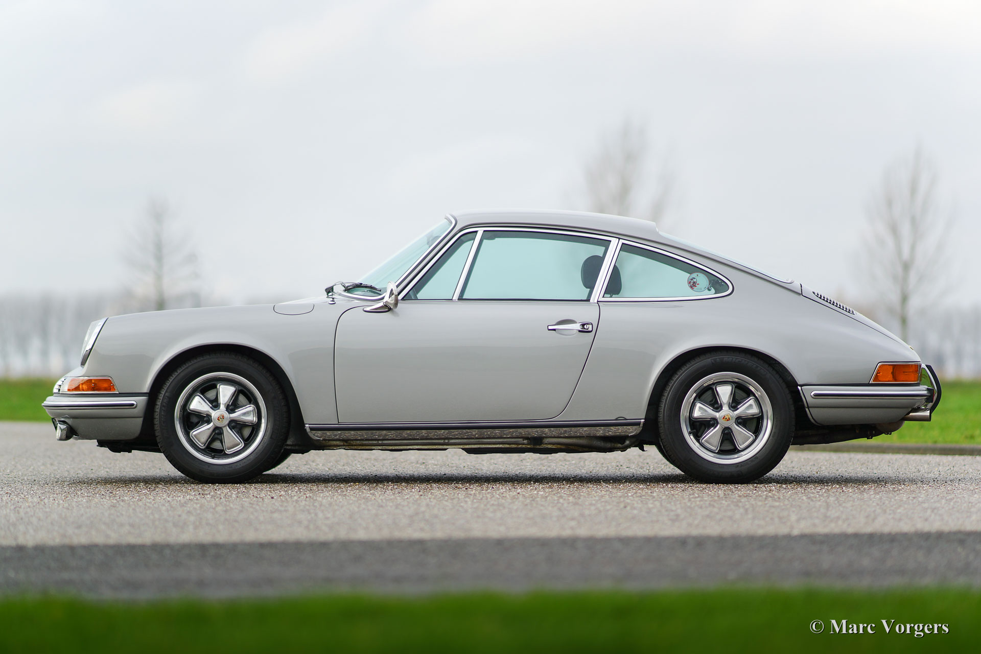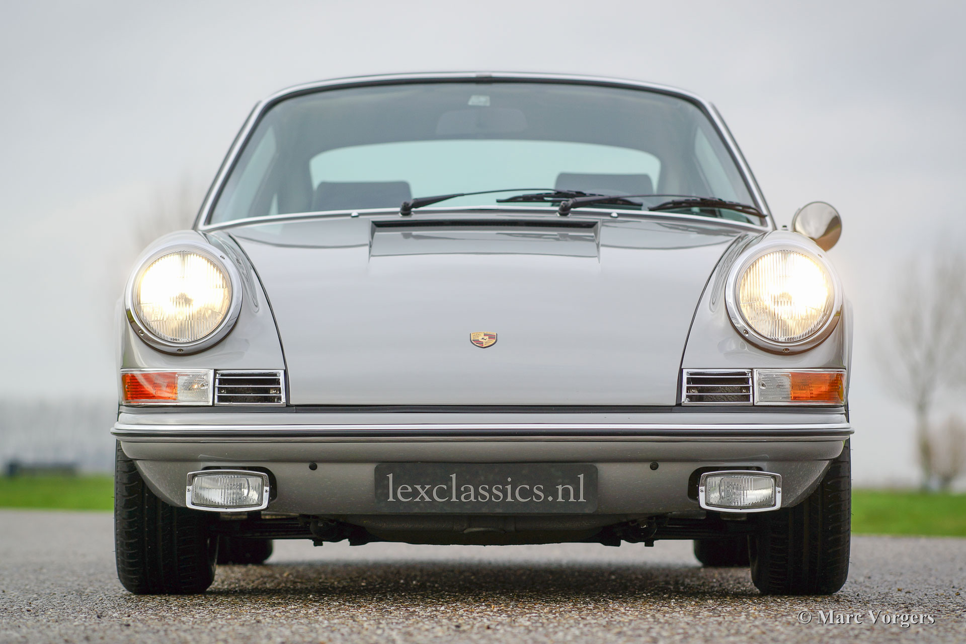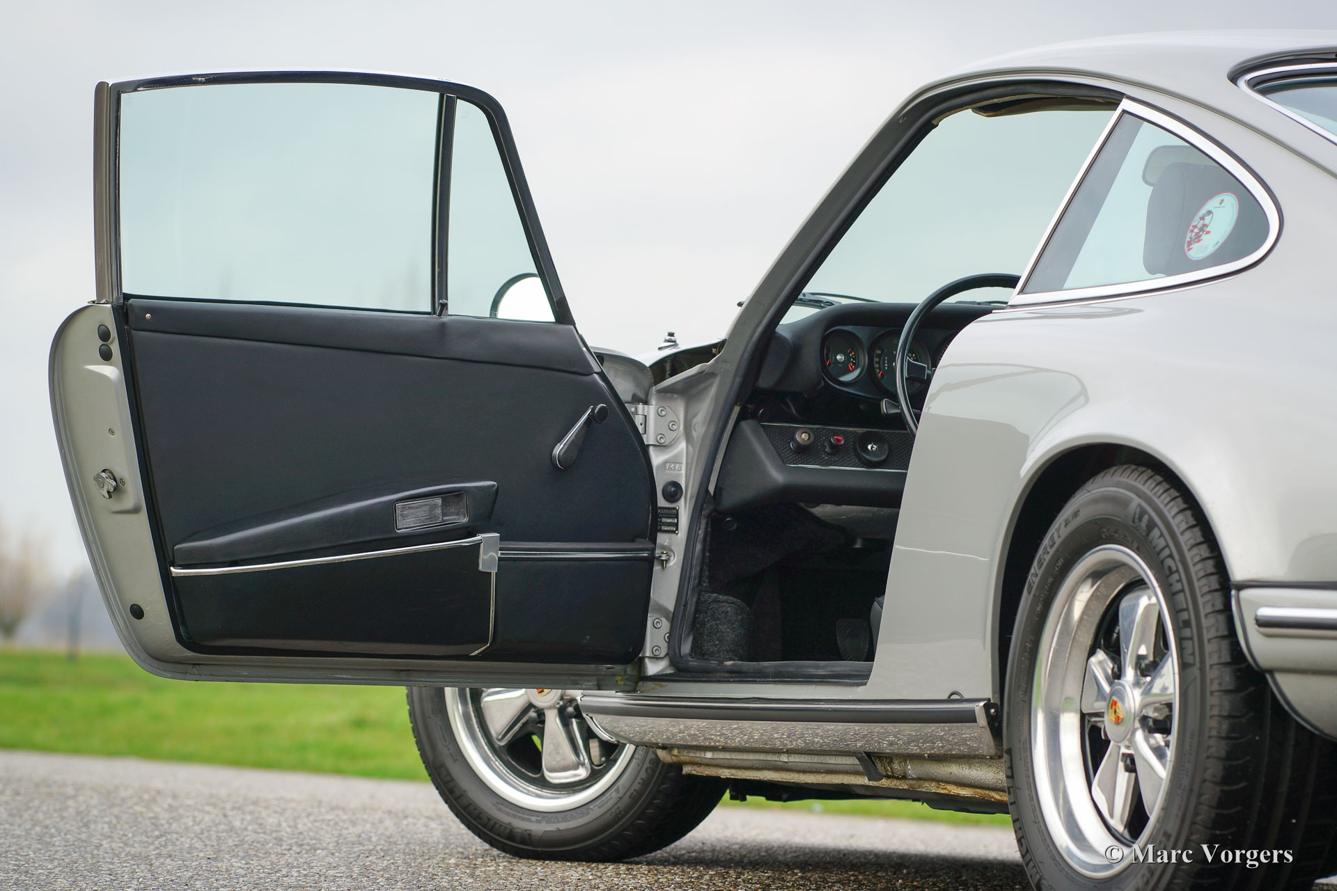 Porsche 911 2.2T, year 1969. Colour silver metallic with a black leather interior. This magnificent Porsche 911 coupe was extensively restored in the past. The car is in very good to excellent condition and the car drives fantastic! This Porsche 911 features Fuchs wheels, a 5-speed gearbox, headrests on both seats and radio + antenna.