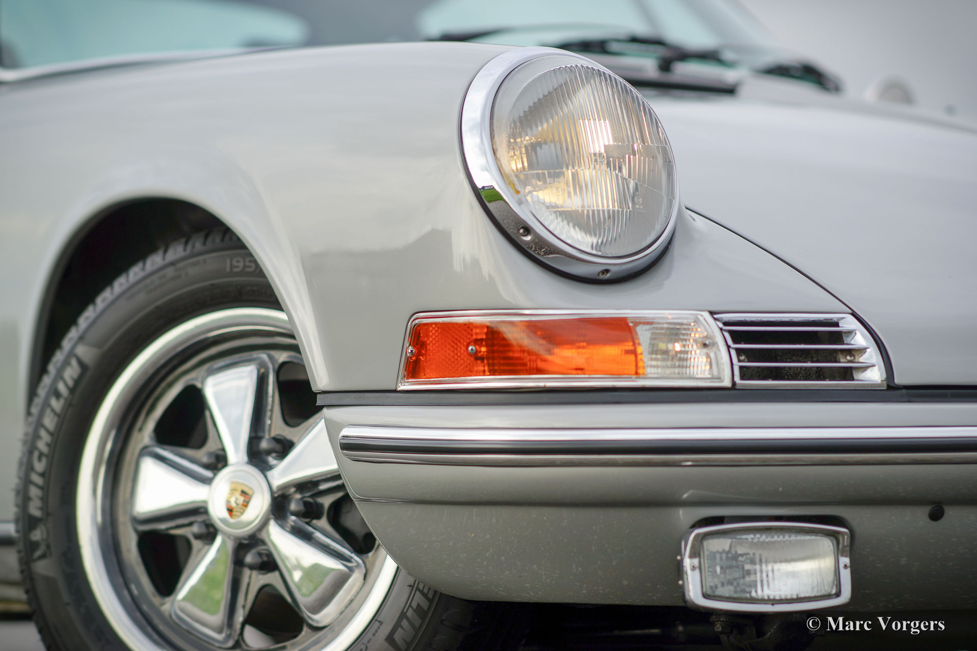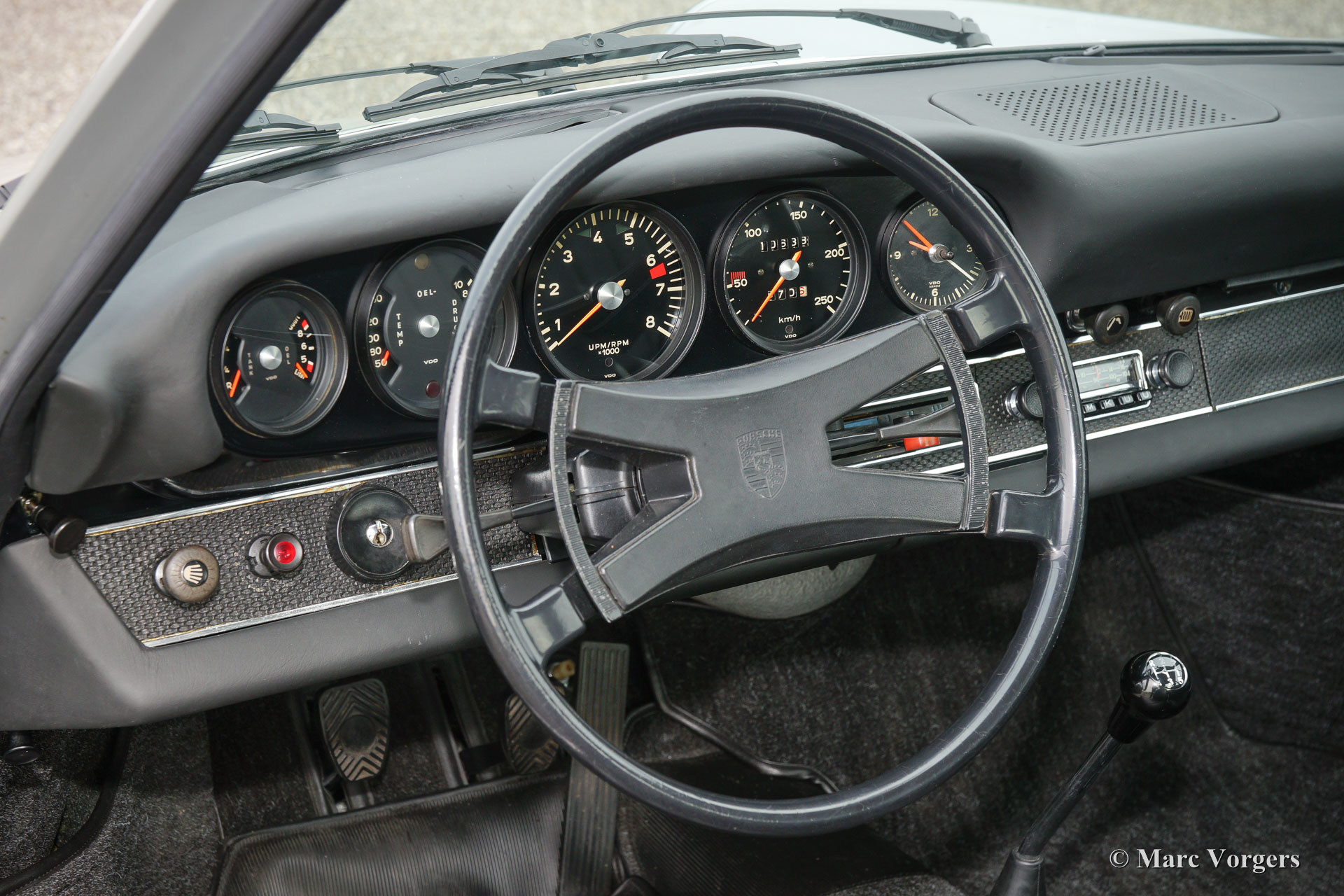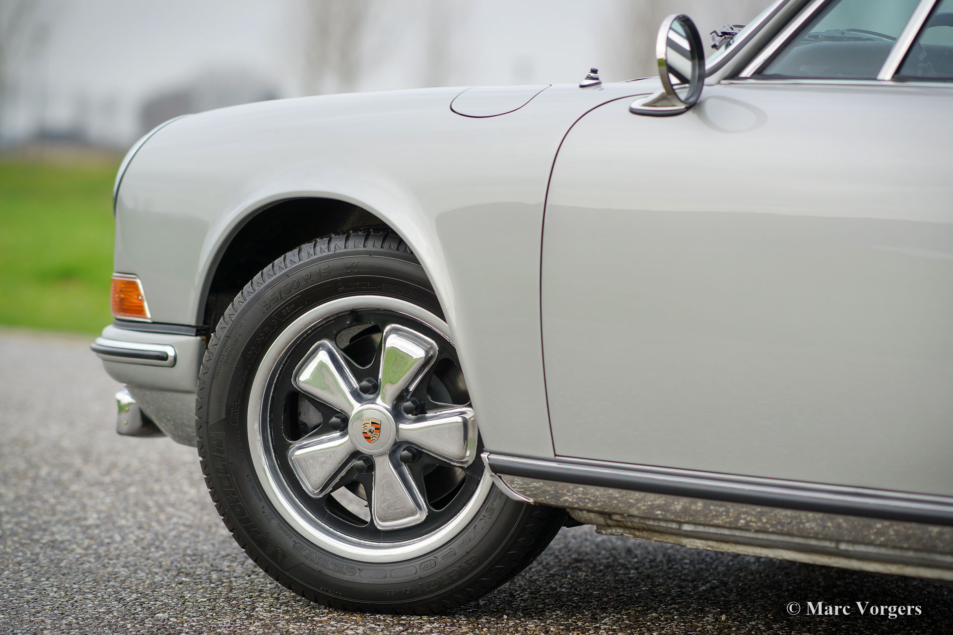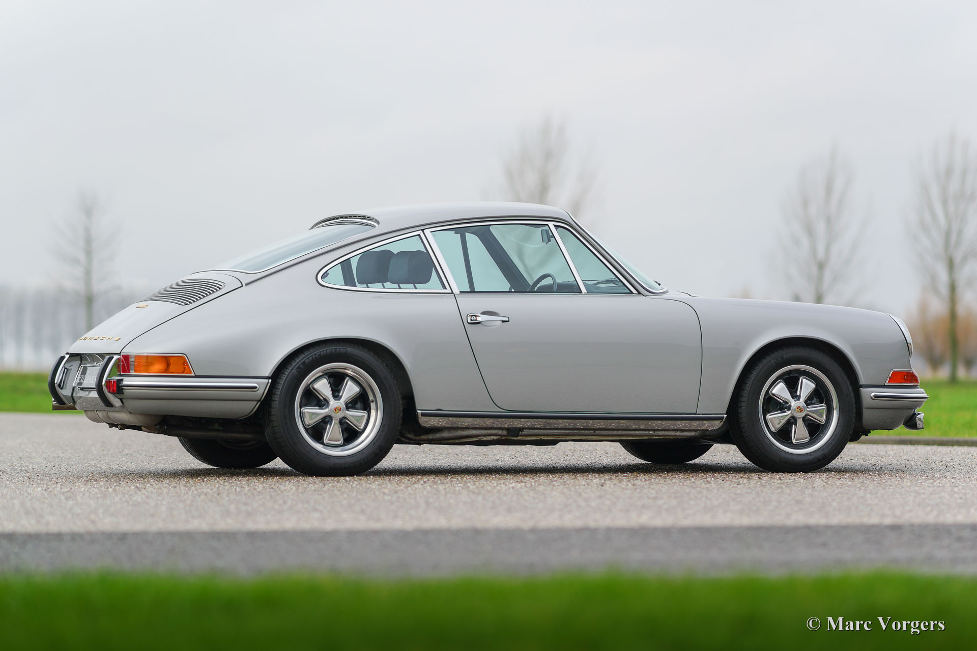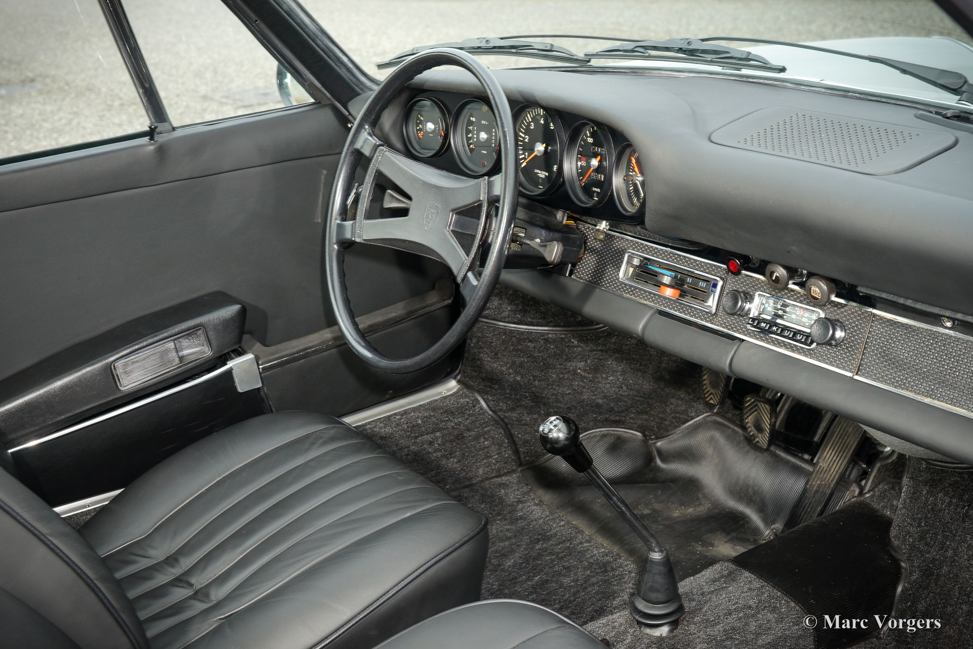 Porsche 911 2.2T, year 1969. Colour silver metallic with a black leather interior. This magnificent Porsche 911 coupe was extensively restored in the past. The car is in very good to excellent condition and the car drives fantastic! This Porsche 911 features Fuchs wheels, a 5-speed gearbox, headrests on both seats and radio + antenna.