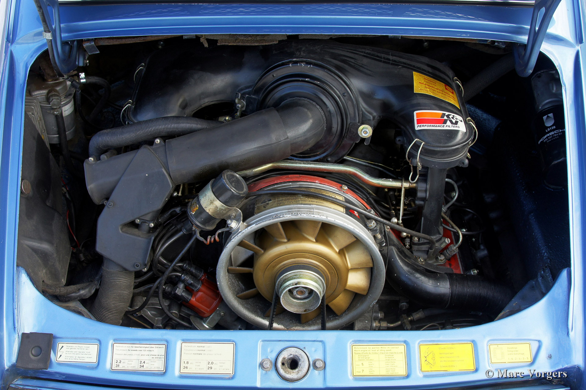 The Porsche 911 was designed with a steel unitary bodywork construction in which the engine was located behind the rear axle. The 911 engine is a air-cooled six cylinder "boxer" engine. The suspension of the Porsche 911 was independent from the start as was a five speed gearbox with floor shift.