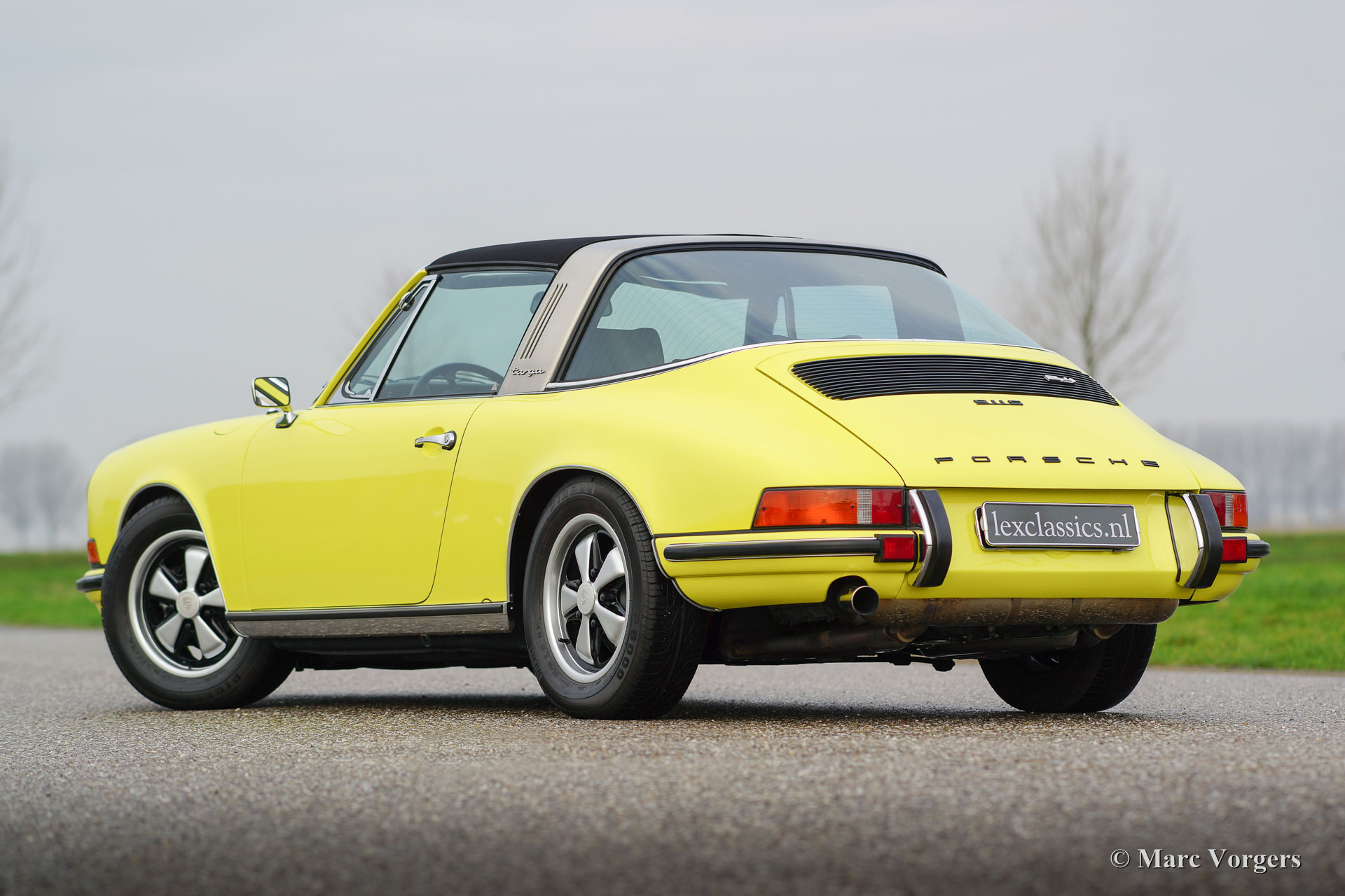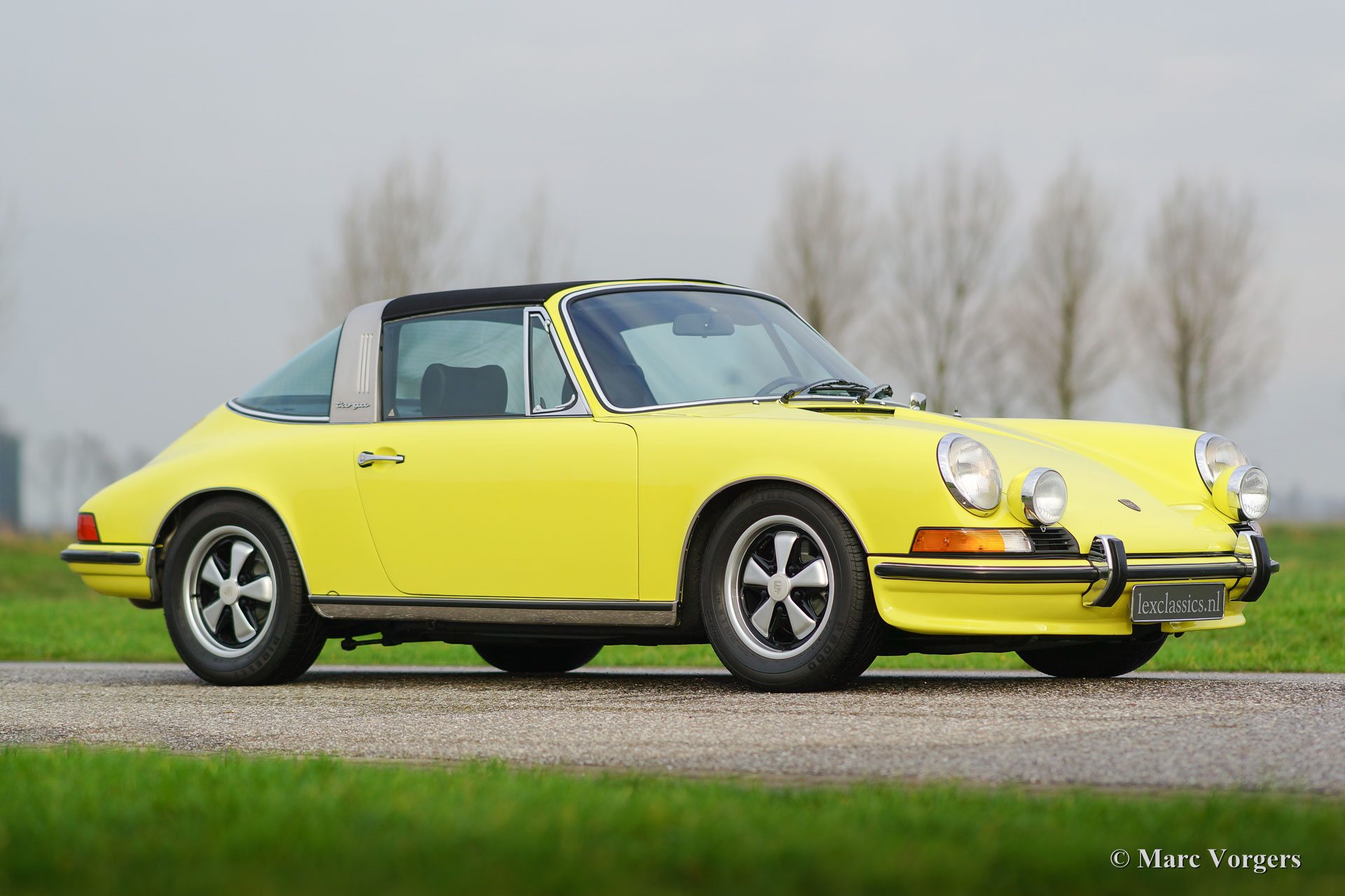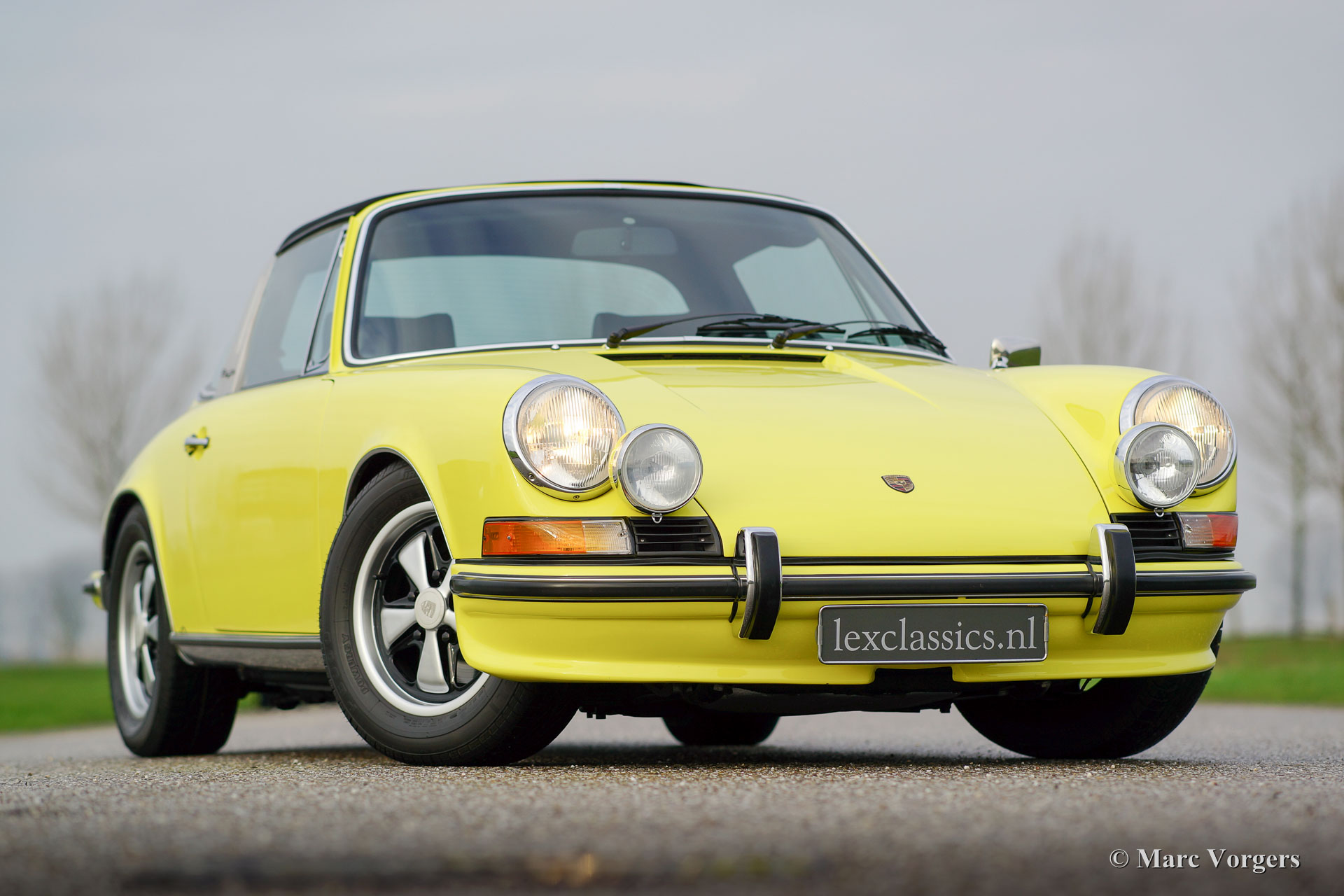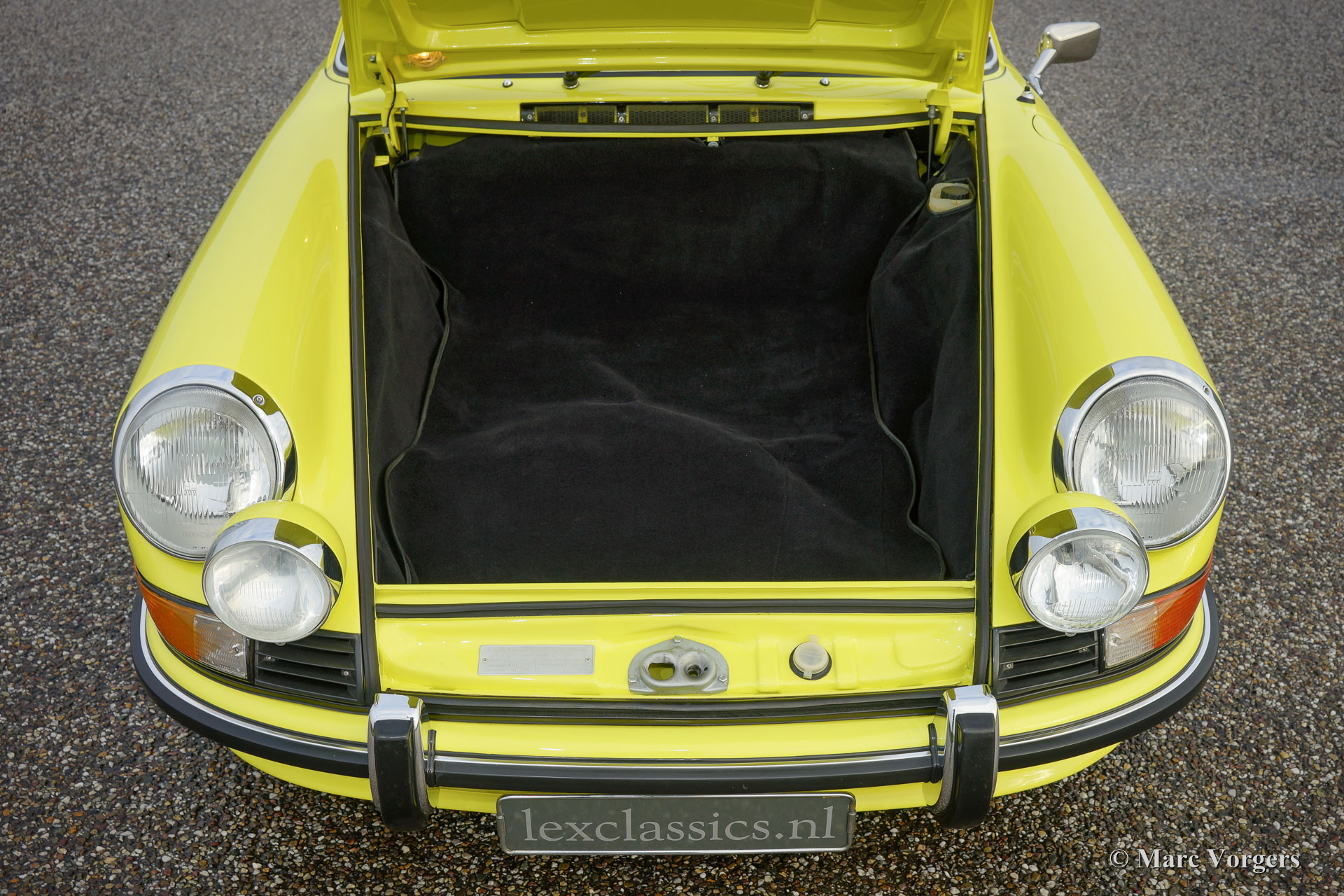 Porsche 911 2.4 T Targa, jaar 1973. Chassis number 9113111XXX. Colour yellow (Hell Gelb) with a black half-leather interior. This magnificent Porsche 2.4 T Targa was extensively restored and overhauled in the Netherlands to very high standards. The car is in superb TOP condition, concours! Since the restoration the car has driven 9872 kilometres. This very fine 911 T Targa was sold new in the USA, the car was imported to the Netherlands in the year 2001. In the year 2008 the car was extensively and beautifully restored to top condition. This 911 Targa features perfect panel fit, superb paint work and a pristine interior. An extensive photo reportage of the restoration is present. The engine and the gearbox have matching numbers, a Porsche ‘birth certificate is applied for. The car is fitted with the following options: Fuchs wheels, fog lamps at the front, radio and alcantara roof lining. A top specimen!