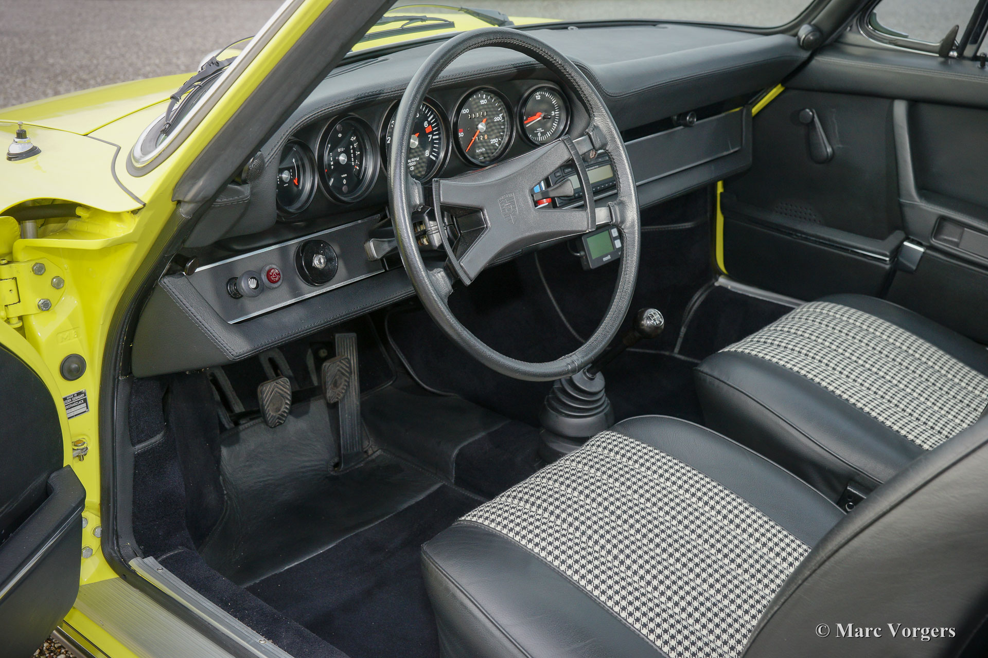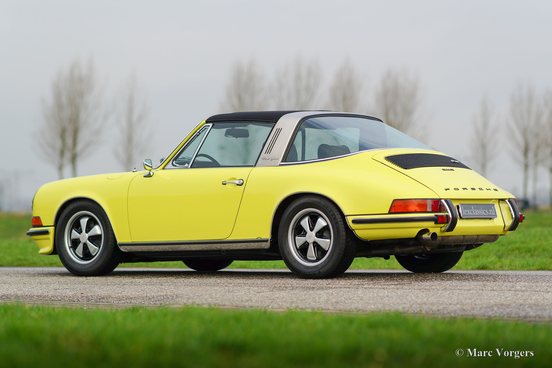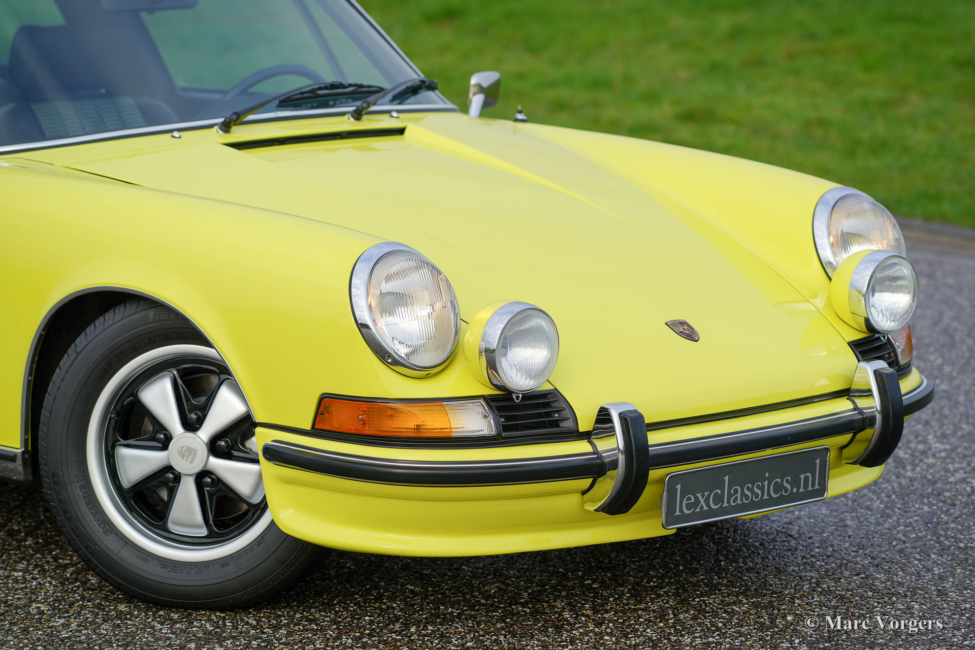 Porsche 911 2.4 T Targa, jaar 1973. Chassis number 9113111XXX. Colour yellow (Hell Gelb) with a black half-leather interior. This magnificent Porsche 2.4 T Targa was extensively restored and overhauled in the Netherlands to very high standards. The car is in superb TOP condition, concours! Since the restoration the car has driven 9872 kilometres. This very fine 911 T Targa was sold new in the USA, the car was imported to the Netherlands in the year 2001. In the year 2008 the car was extensively and beautifully restored to top condition. This 911 Targa features perfect panel fit, superb paint work and a pristine interior. An extensive photo reportage of the restoration is present. The engine and the gearbox have matching numbers, a Porsche ‘birth certificate is applied for. The car is fitted with the following options: Fuchs wheels, fog lamps at the front, radio and alcantara roof lining. A top specimen!