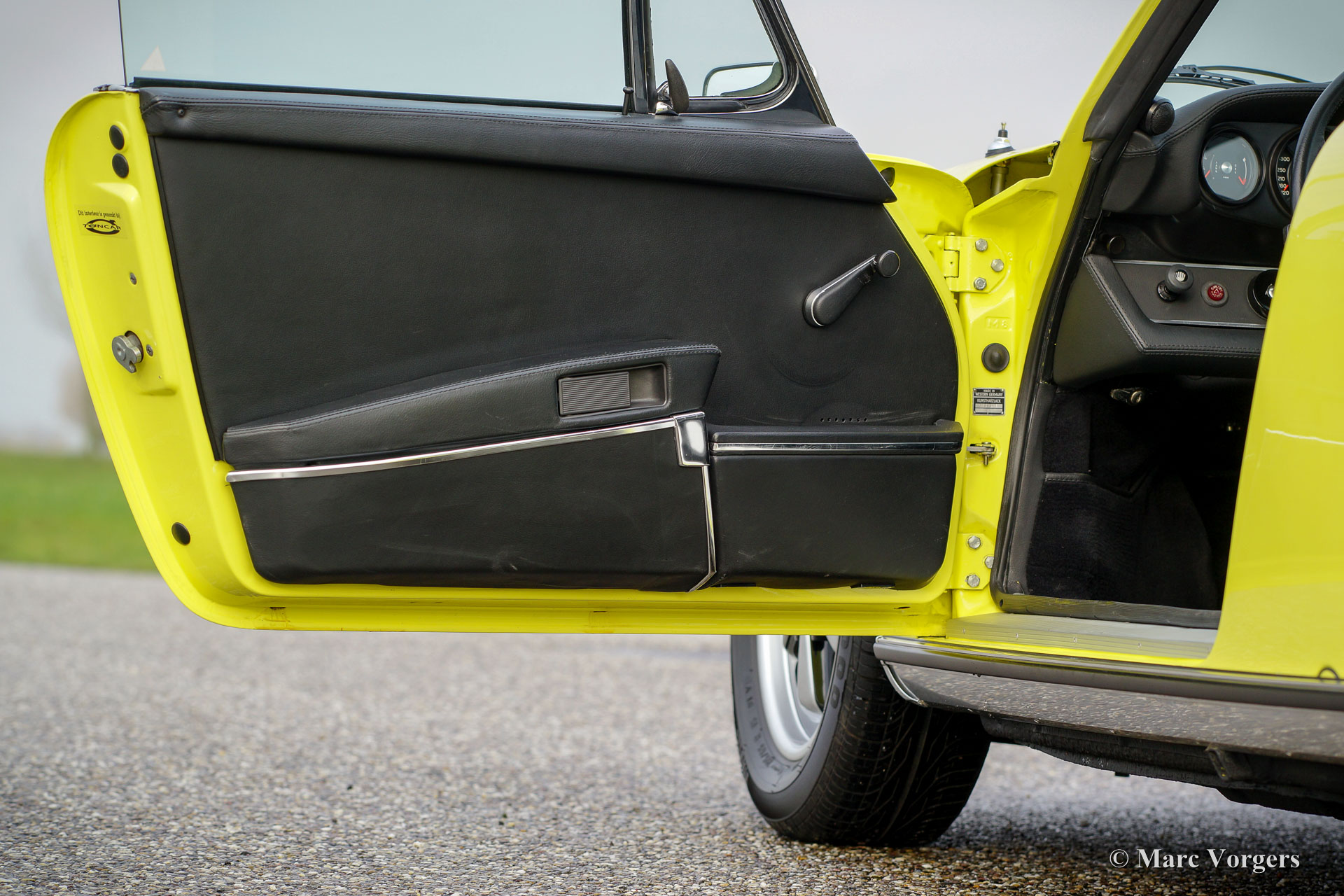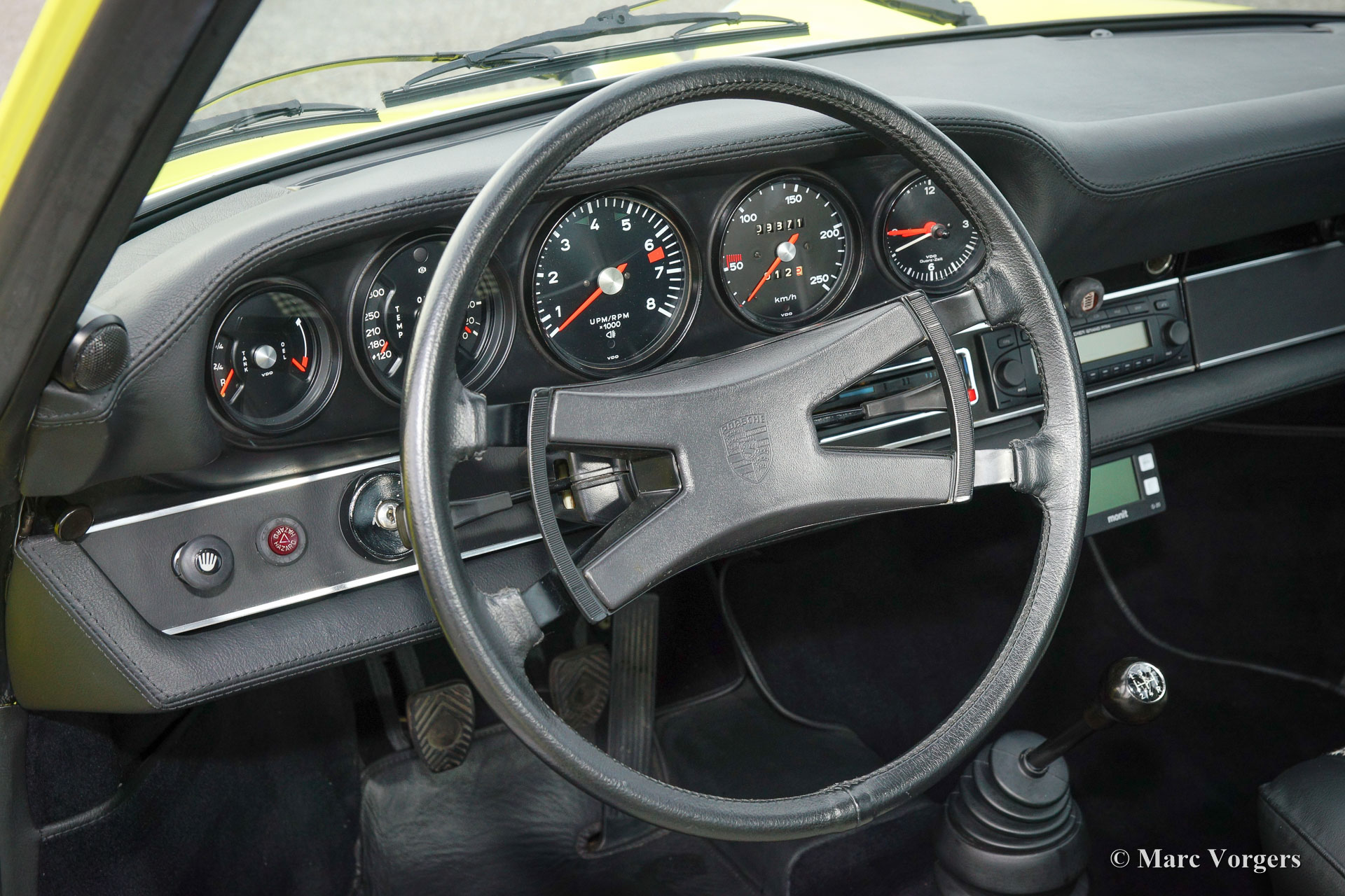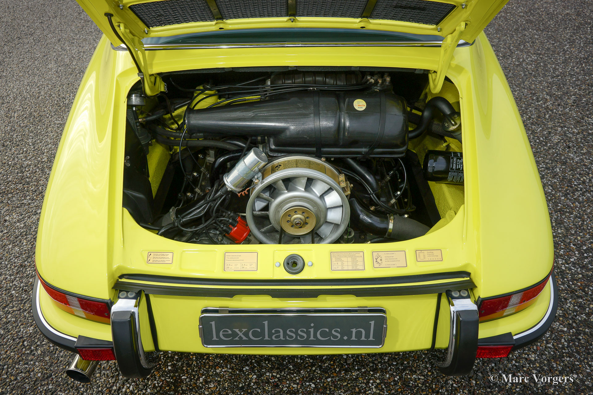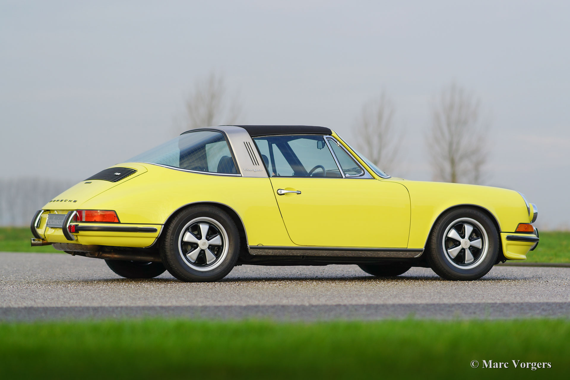 Porsche 911 2.4 T Targa, jaar 1973. Chassis number 9113111XXX. Colour yellow (Hell Gelb) with a black half-leather interior. This magnificent Porsche 2.4 T Targa was extensively restored and overhauled in the Netherlands to very high standards. The car is in superb TOP condition, concours! Since the restoration the car has driven 9872 kilometres. This very fine 911 T Targa was sold new in the USA, the car was imported to the Netherlands in the year 2001. In the year 2008 the car was extensively and beautifully restored to top condition. This 911 Targa features perfect panel fit, superb paint work and a pristine interior. An extensive photo reportage of the restoration is present. The engine and the gearbox have matching numbers, a Porsche ‘birth certificate is applied for. The car is fitted with the following options: Fuchs wheels, fog lamps at the front, radio and alcantara roof lining. A top specimen!