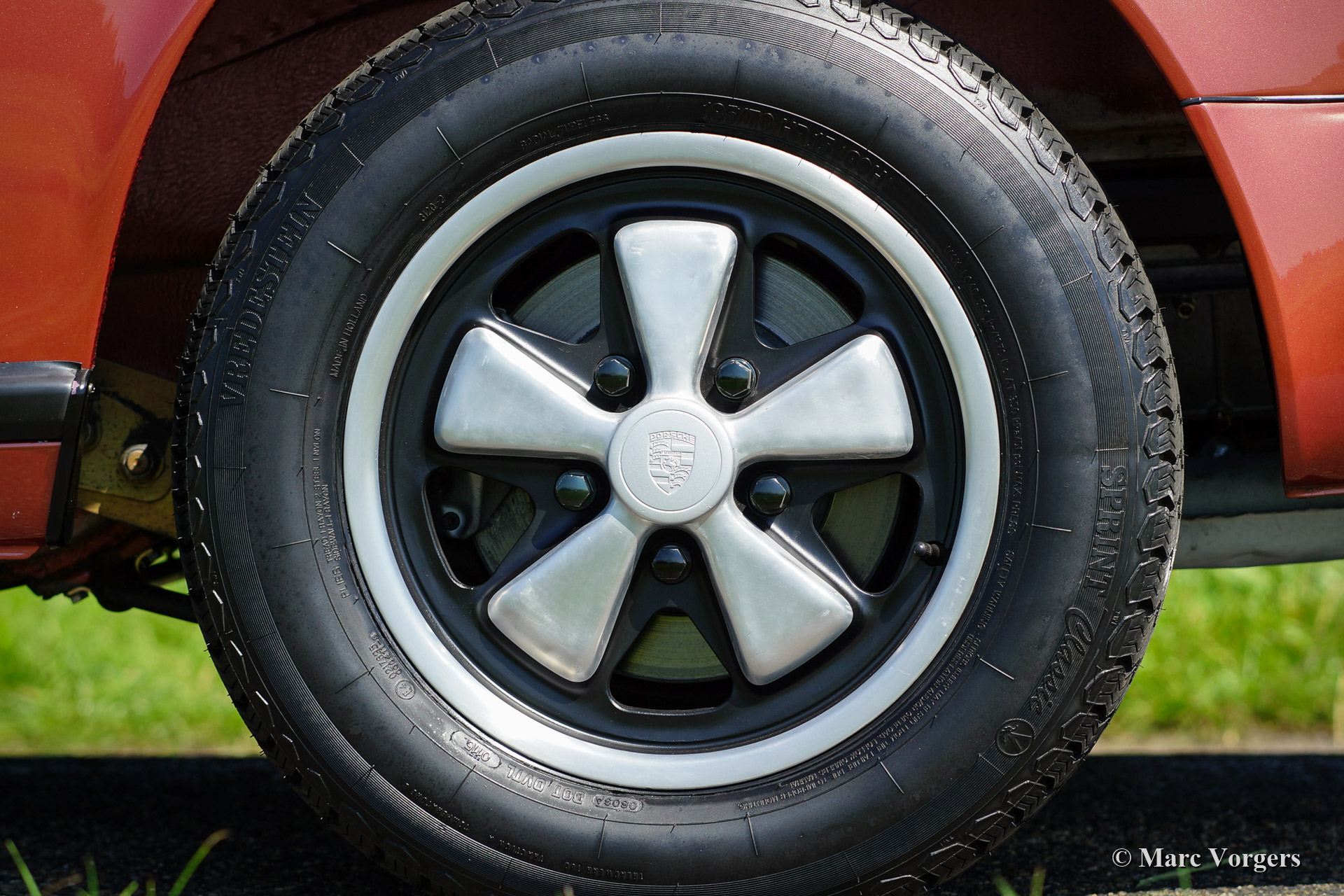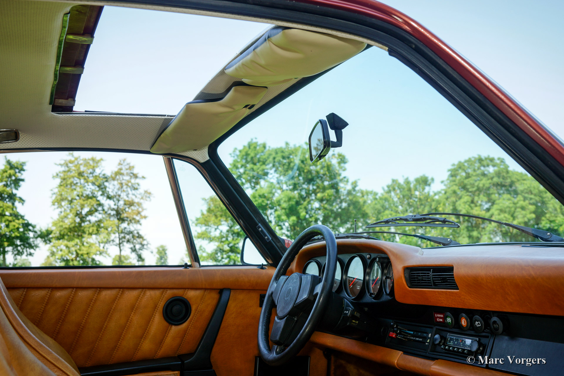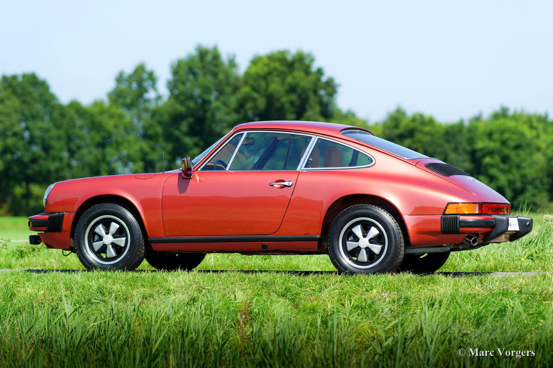 Porsche 911 2.7 S coupe (G-series), year 1977. Colour Sienna metallic (code 436-9-3 Sienna) with a beige / cognac leatherette interior.